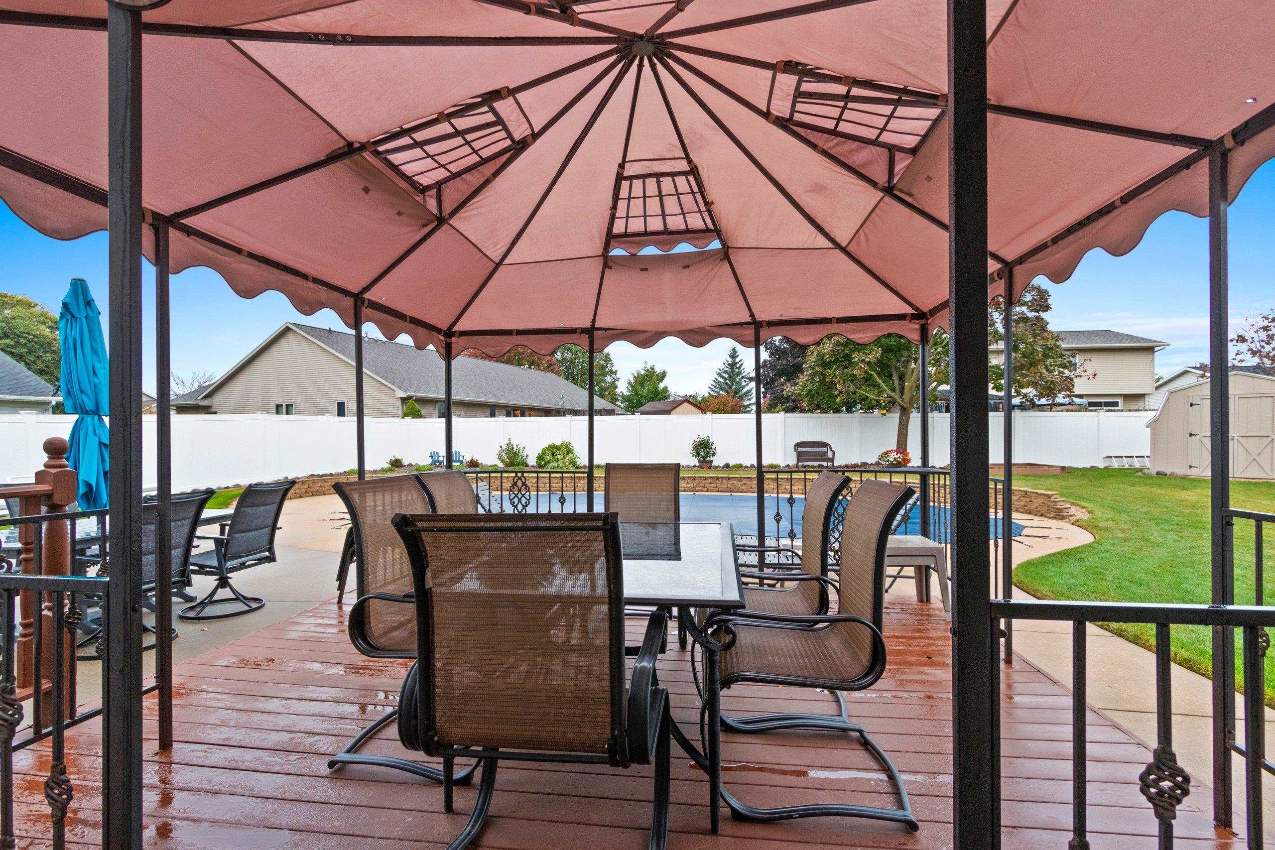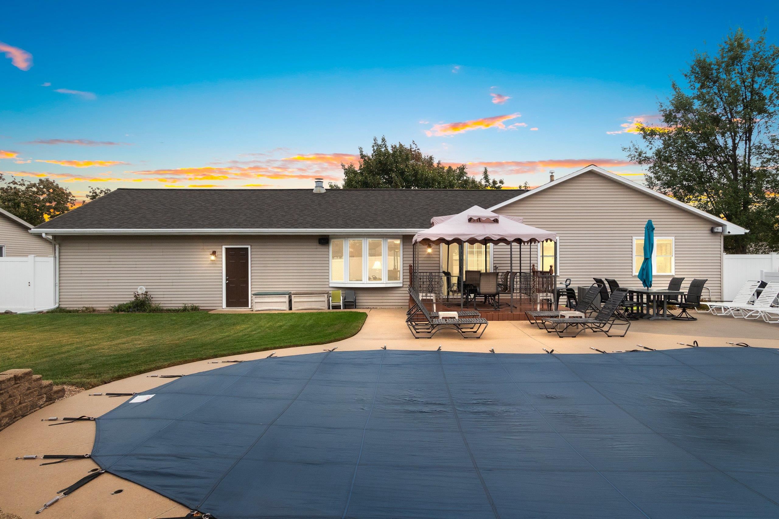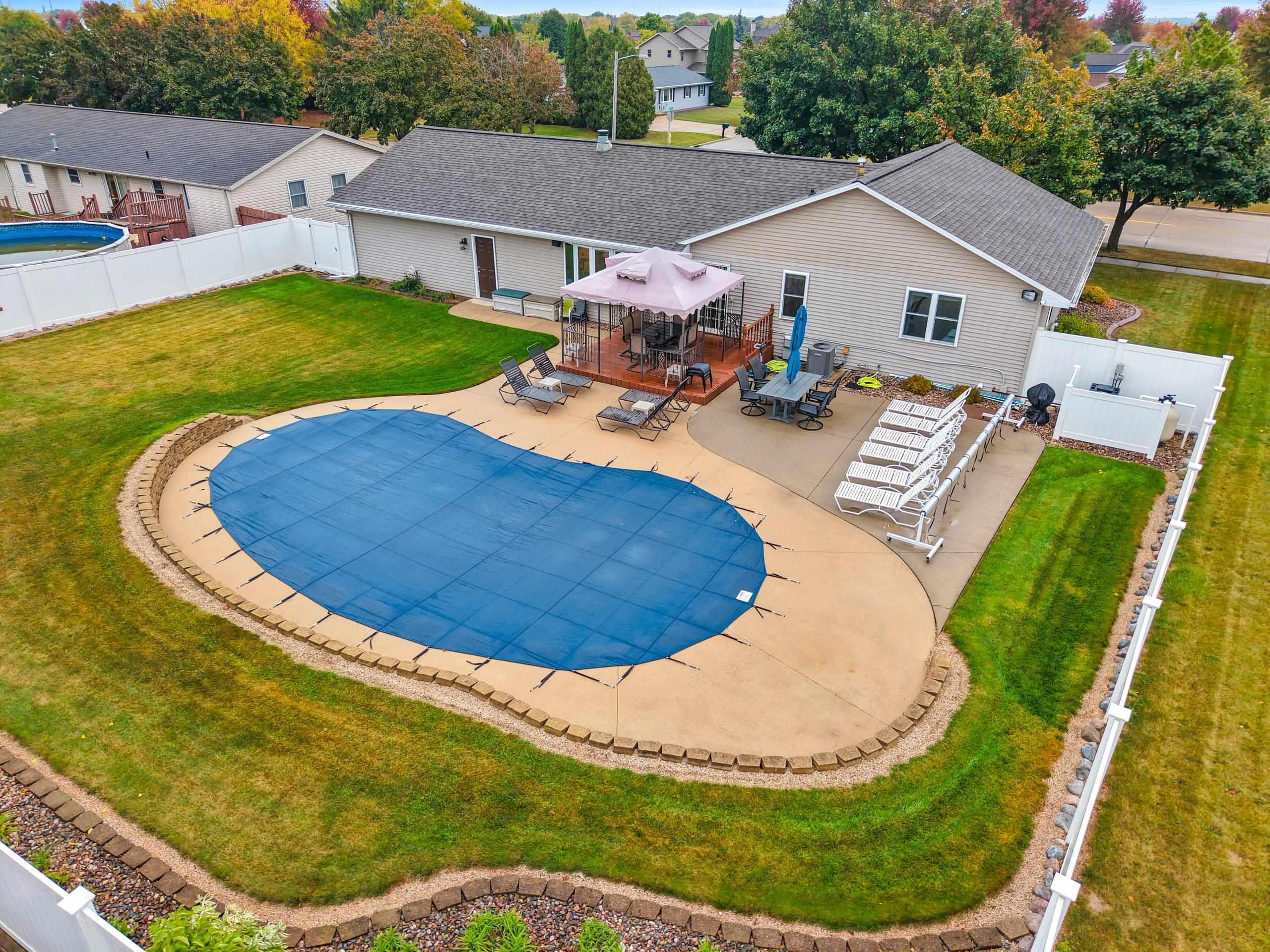 Beautifully maintained one-owner custom-built ranch in the heart of De Pere! This 3-bedroom, 3-bath home features a thoughtful floor plan with the kitchen at the front and the living room at the back overlooking the private yard. Enjoy a cozy dining area, finished lower level with full bath, and garage with epoxy floors plus stairs to attic storage. Step outside to relax on the deck under the pergola or enjoy the in-ground pool surrounded by gorgeous landscaping in a fully fenced yard. Conveniently located minutes from schools, parks, and shopping!