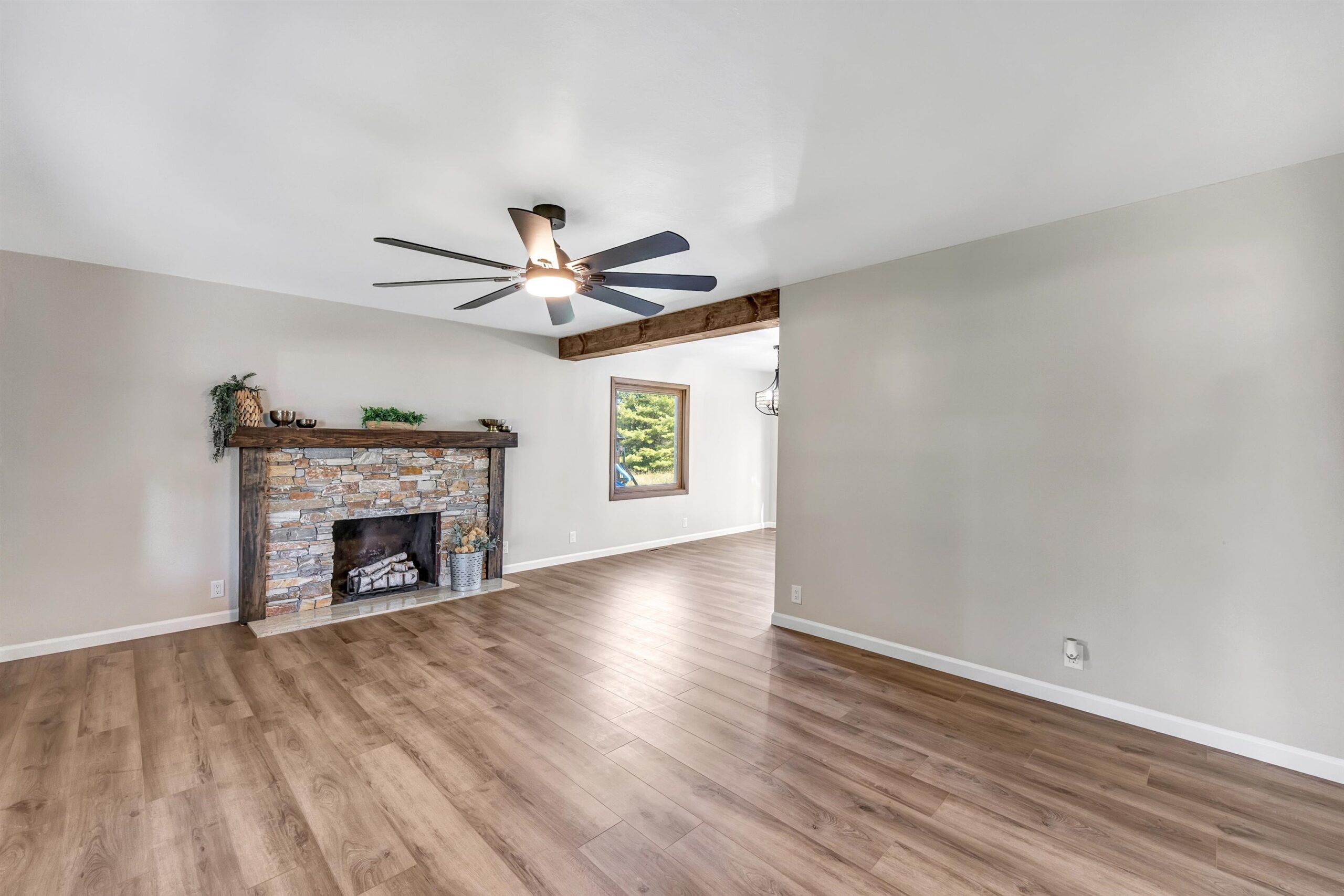 Beautifully updated 2 bed, 2 bath home in desirable Suamico on 0.89 acres. This move-in ready property features new flooring, fresh paint, updated light fixtures, remodeled bathroom, and custom closet doors. The inviting living room offers a cozy fireplace, perfect for relaxing evenings. Enjoy the spacious backyard with a large deck ideal for entertaining or taking in the peaceful surroundings. A 2-stall garage with an attached workshop provides great space for projects and storage. Brand new furnace and A/C, new garage roof. Conveniently located near local amenities, this home combines comfort, style, and practicality in a serene setting. Schedule your showing today!