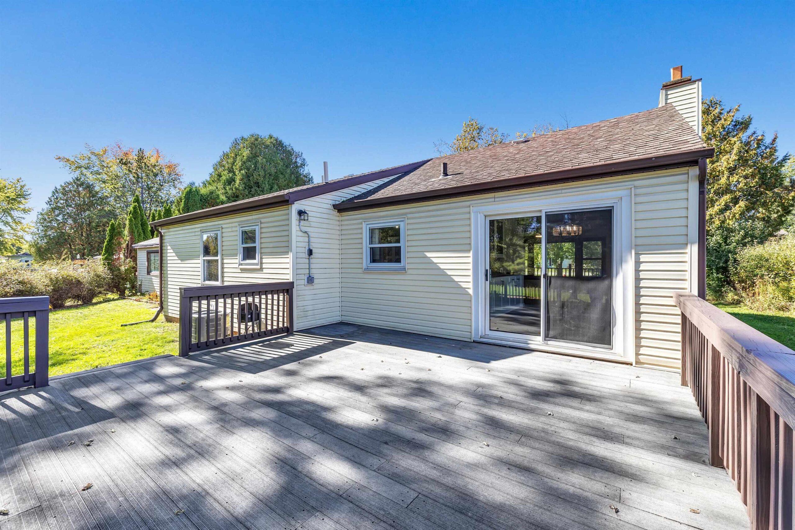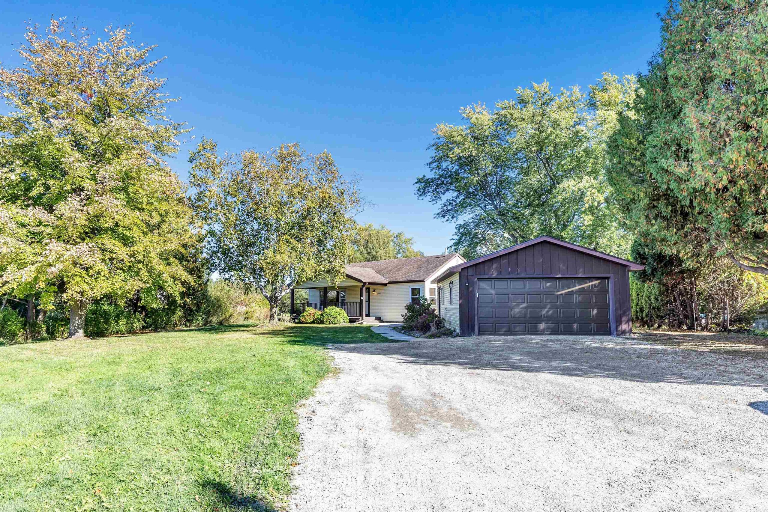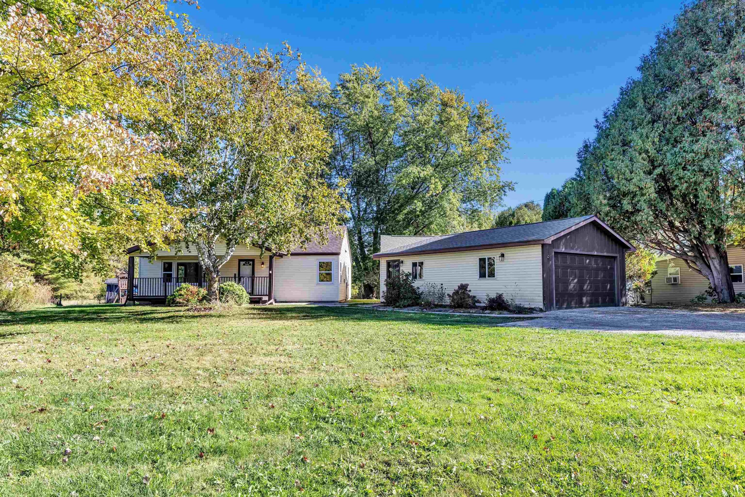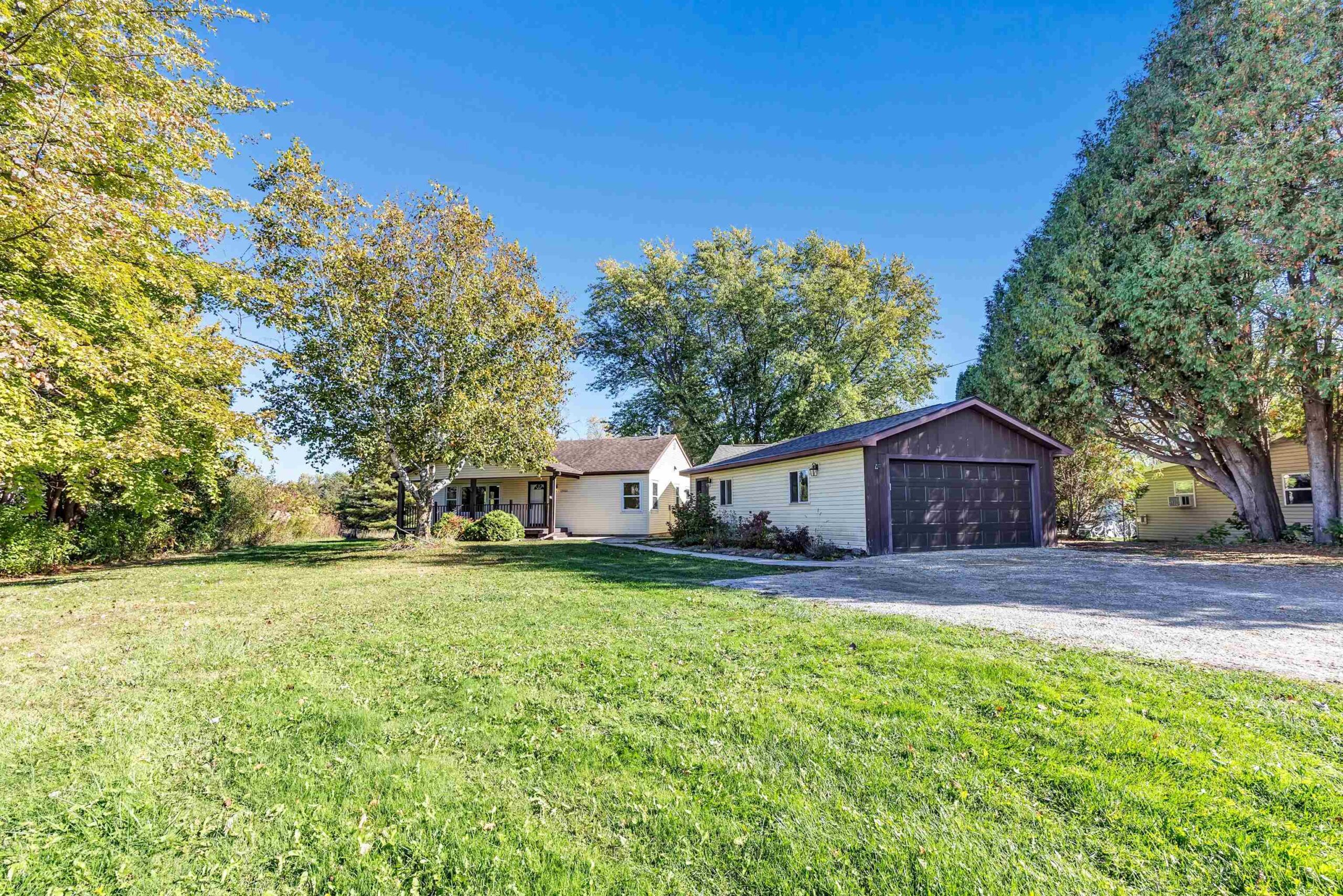Beautifully updated 2 bed, 2 bath home in desirable Suamico on 0.89 acres. This move-in ready property features new flooring, fresh paint, updated light fixtures, remodeled bathroom, and custom closet doors. The inviting living room offers a cozy fireplace, perfect for relaxing evenings. Enjoy the spacious backyard with a large deck ideal for entertaining or taking in the peaceful surroundings. A 2-stall garage with an attached workshop provides great space for projects and storage. Brand new furnace and A/C, new garage roof. Conveniently located near local amenities, this home combines comfort, style, and practicality in a serene setting. Schedule your showing today!