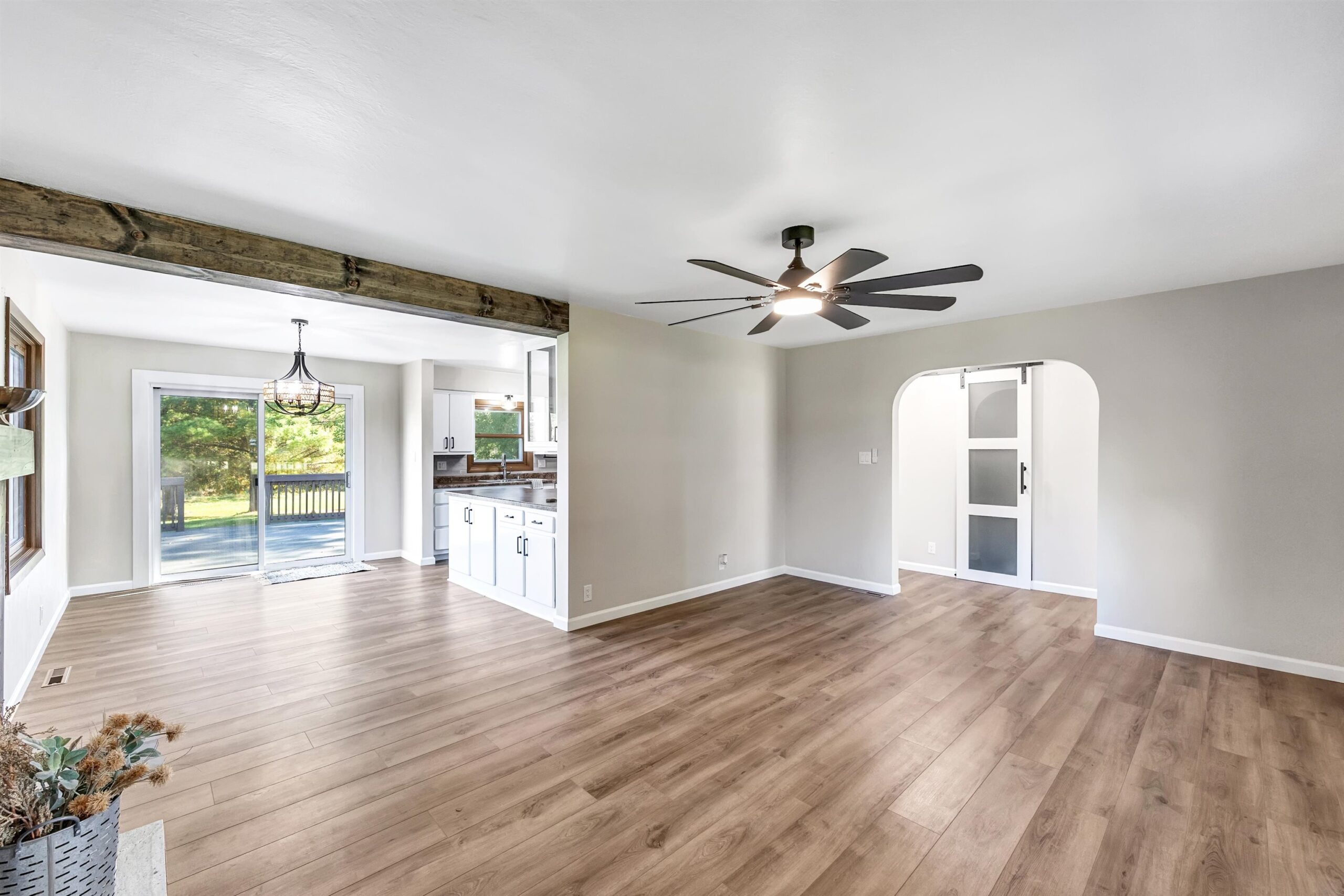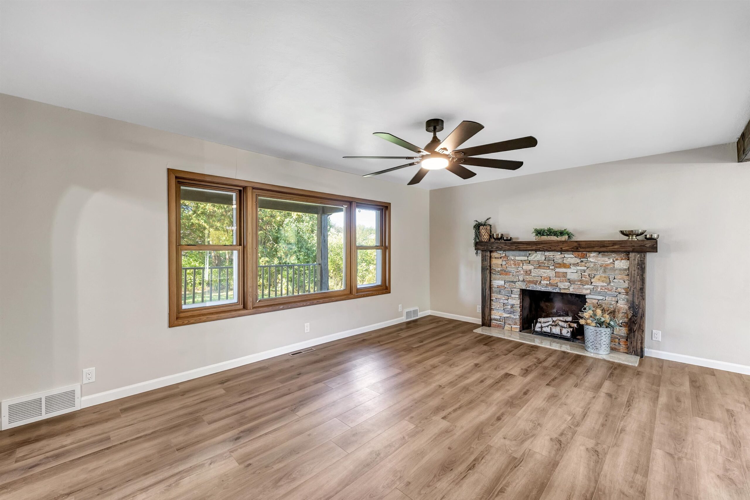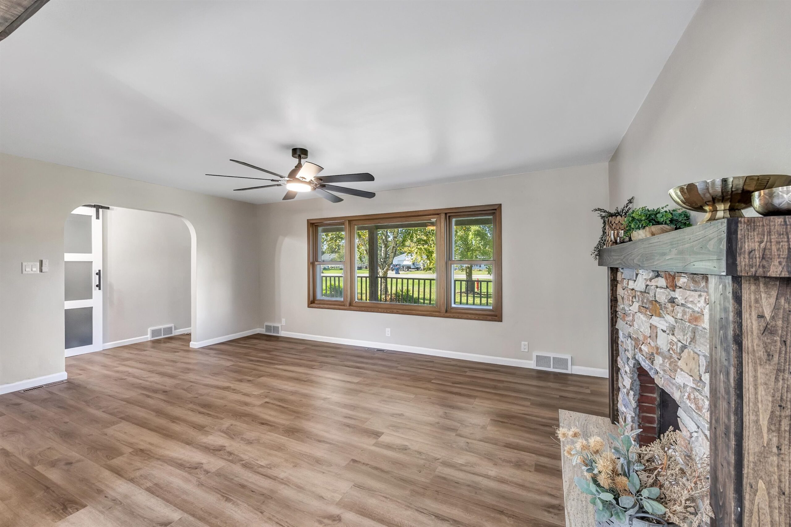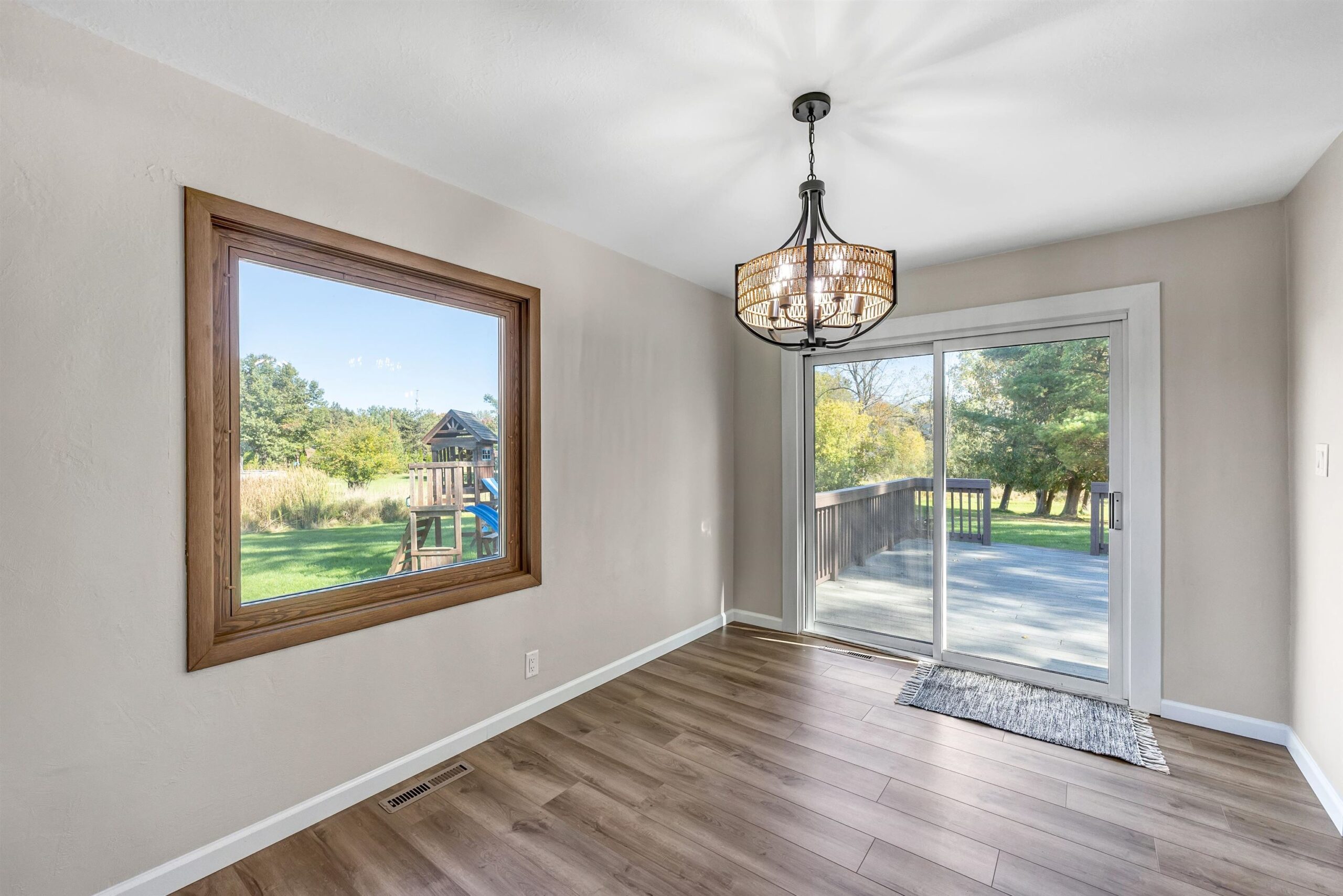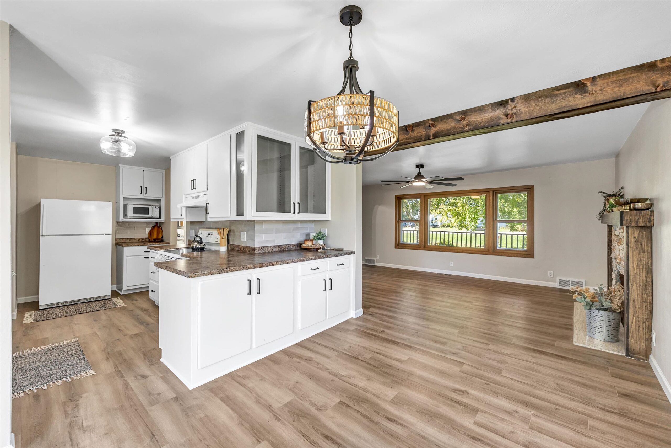 Beautifully updated 2 bed, 2 bath home in desirable Suamico on 0.89 acres. This move-in ready property features new flooring, fresh paint, updated light fixtures, remodeled bathroom, and custom closet doors. The inviting living room offers a cozy fireplace, perfect for relaxing evenings. Enjoy the spacious backyard with a large deck ideal for entertaining or taking in the peaceful surroundings. A 2-stall garage with an attached workshop provides great space for projects and storage. Brand new furnace and A/C, new garage roof. Conveniently located near local amenities, this home combines comfort, style, and practicality in a serene setting. Schedule your showing today!