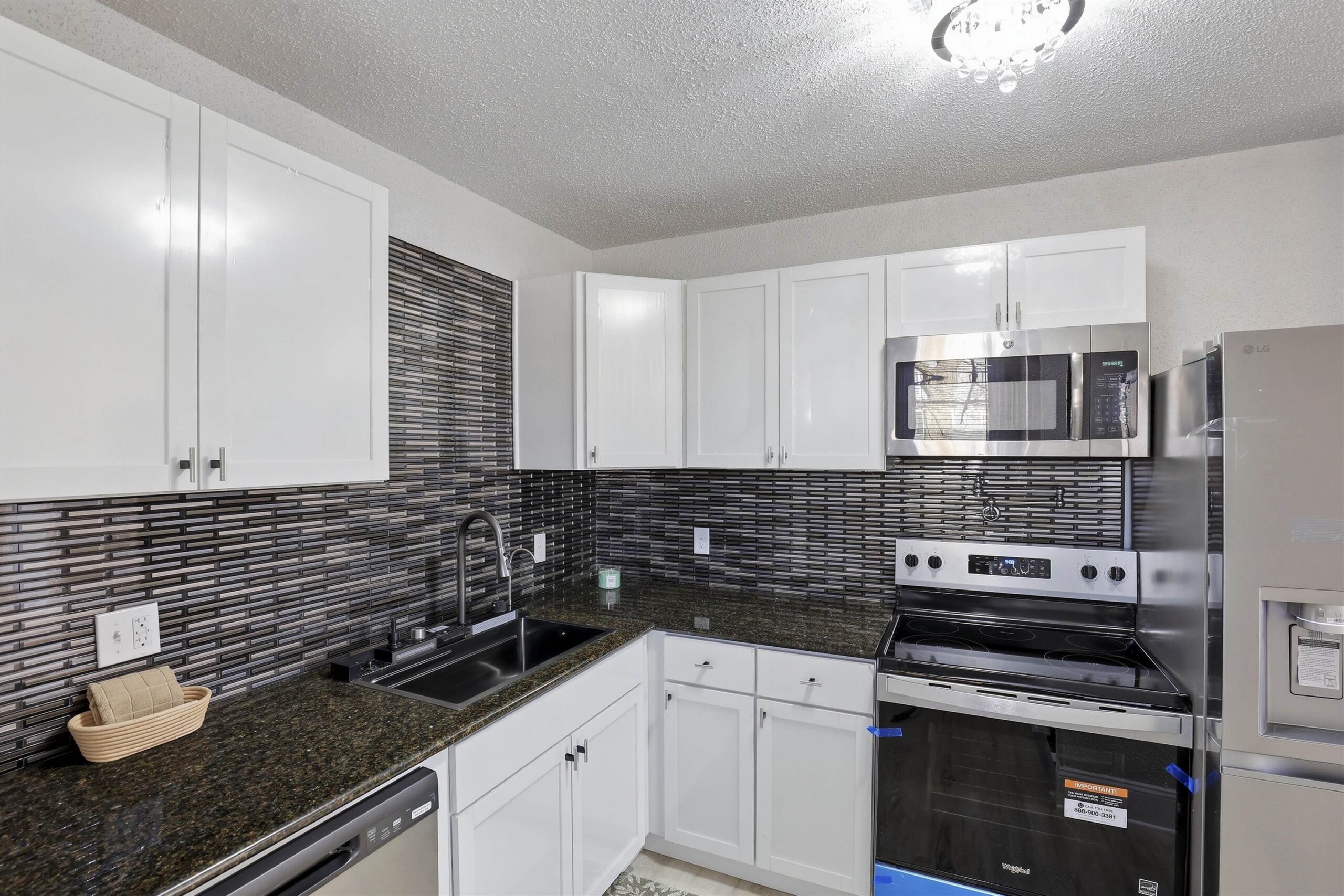 Stove, Microwave, Refrigerator, Dishwasher.