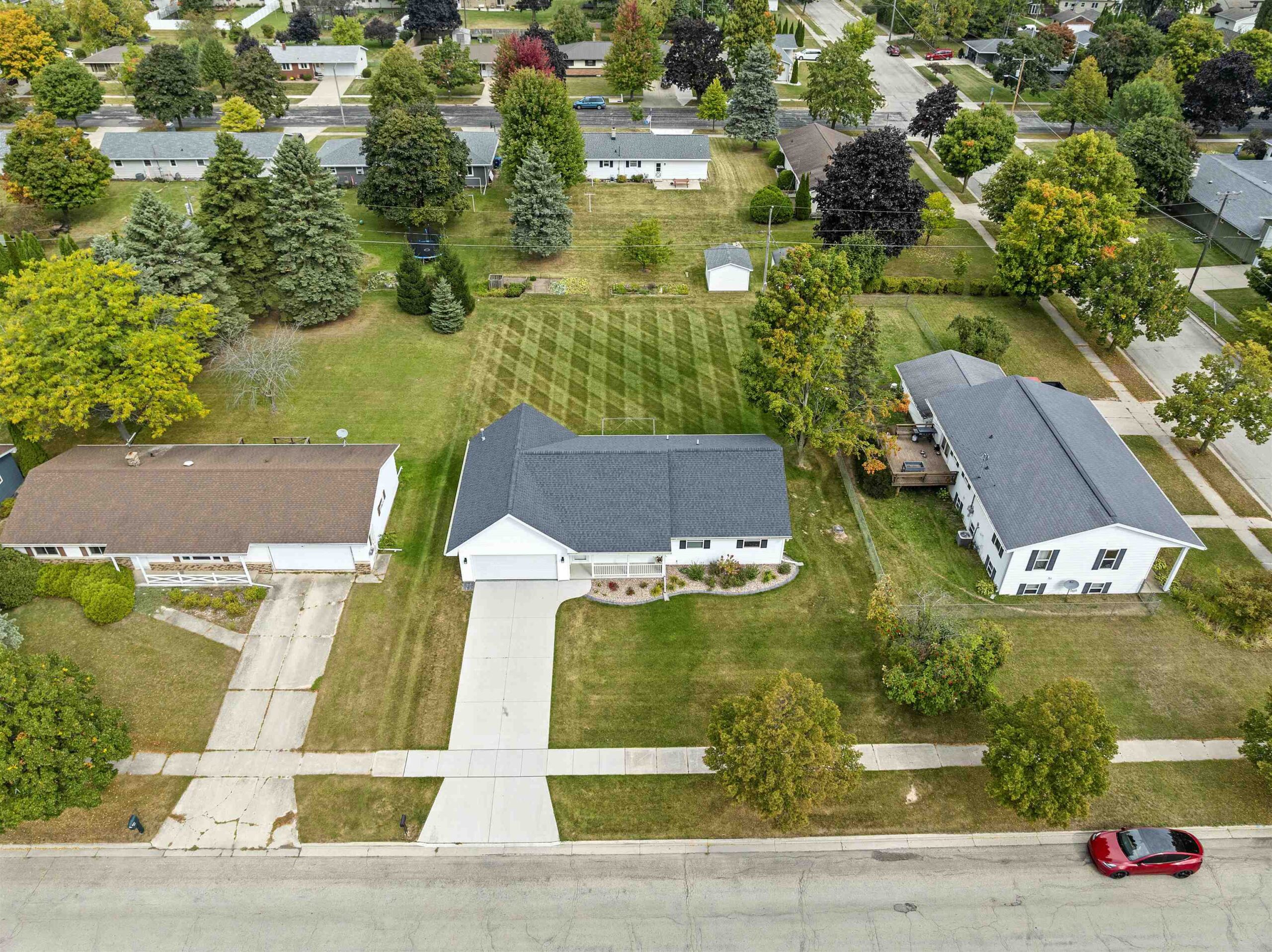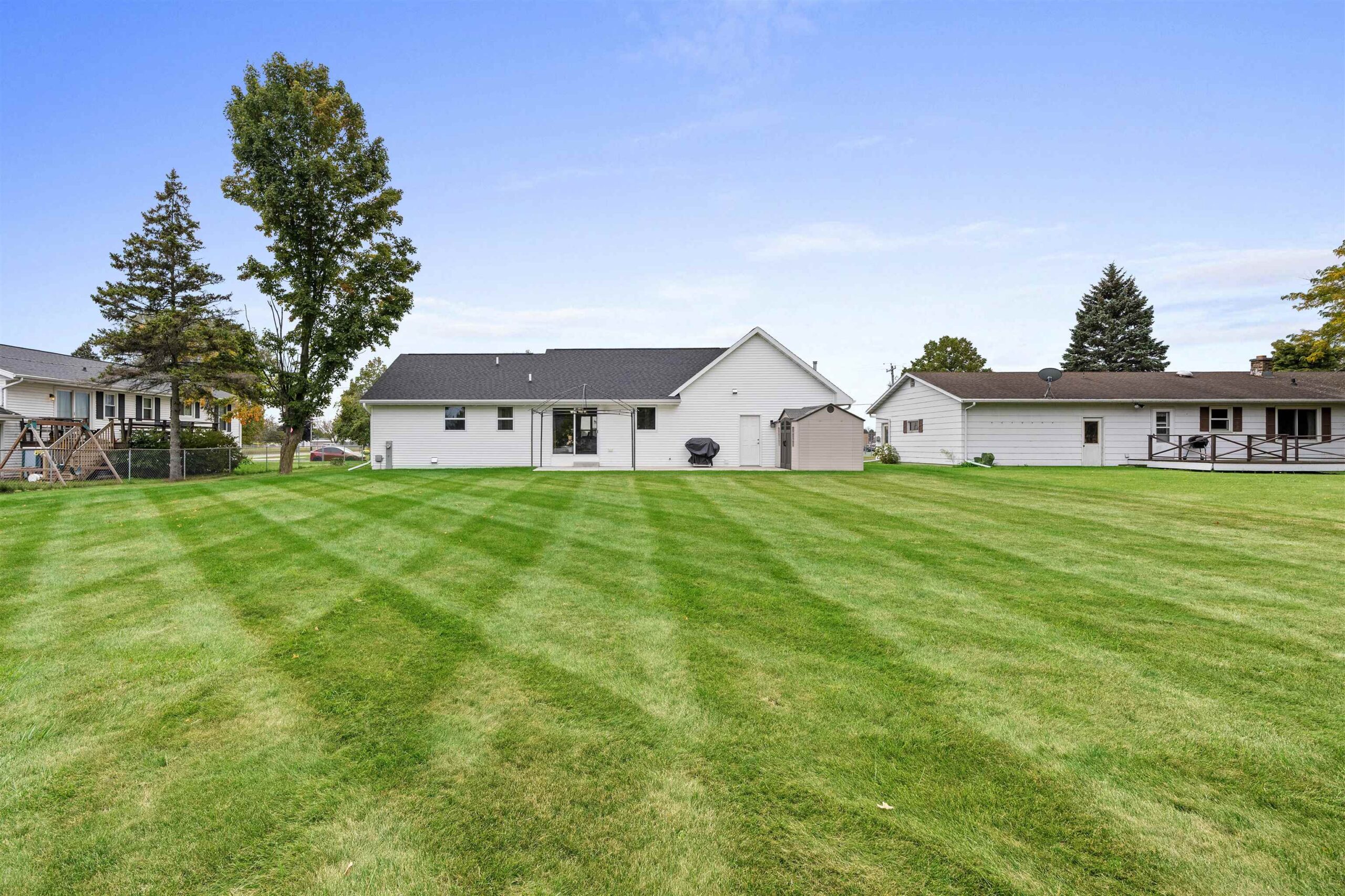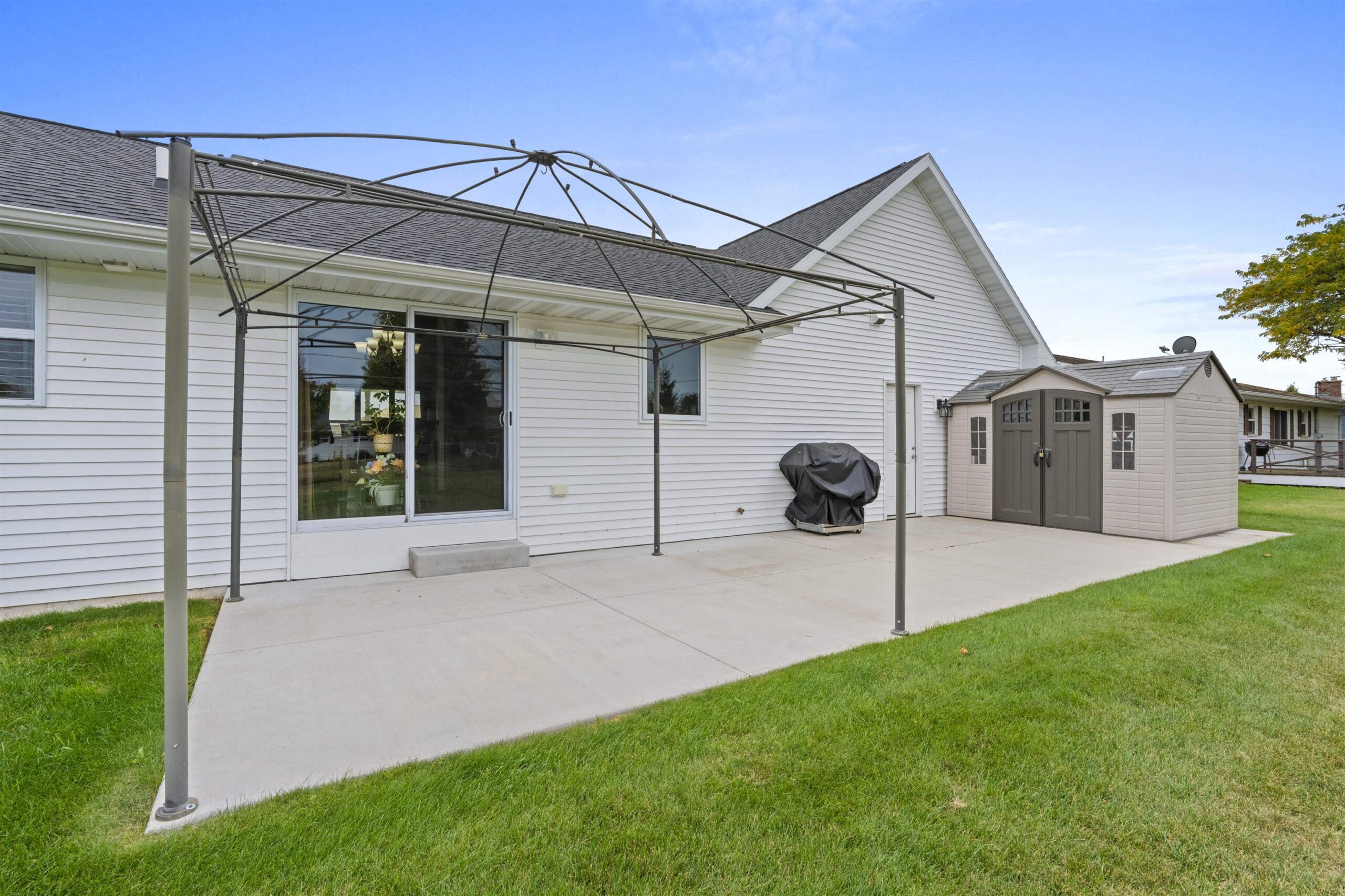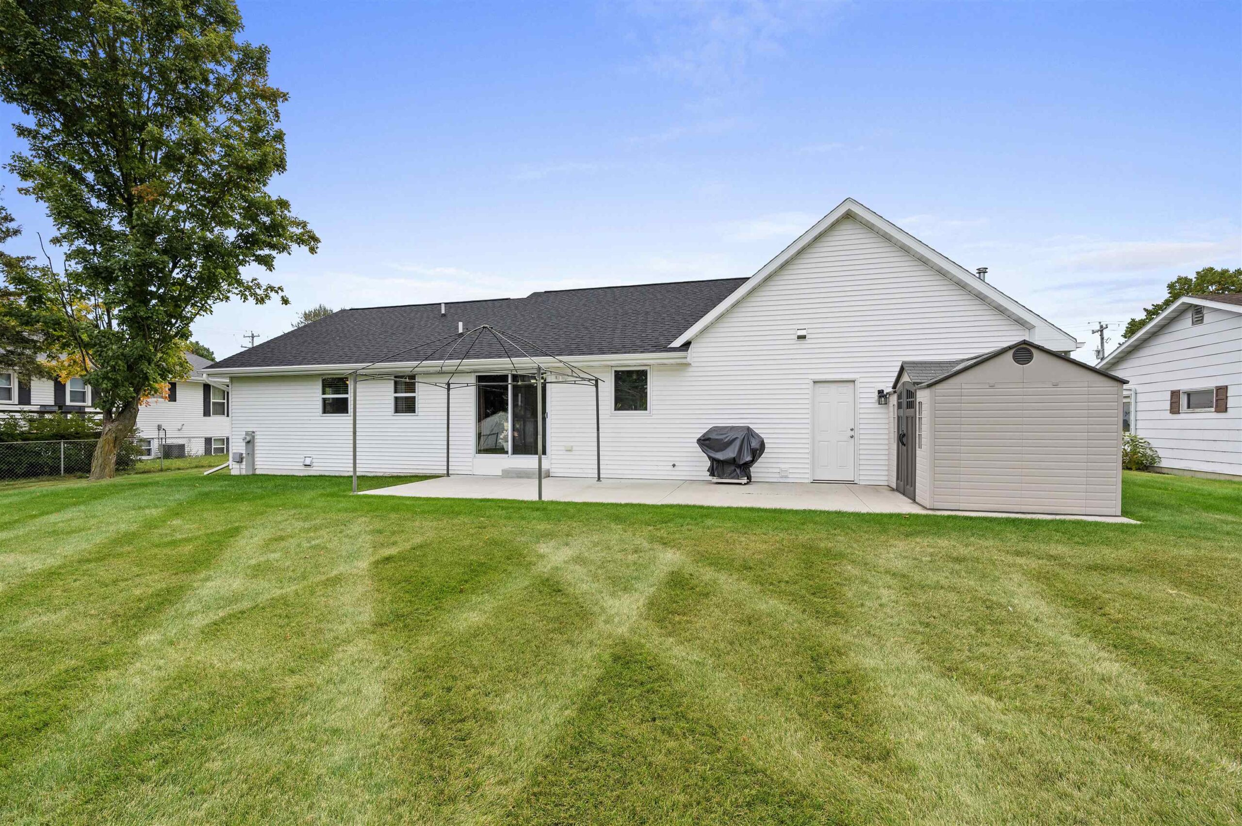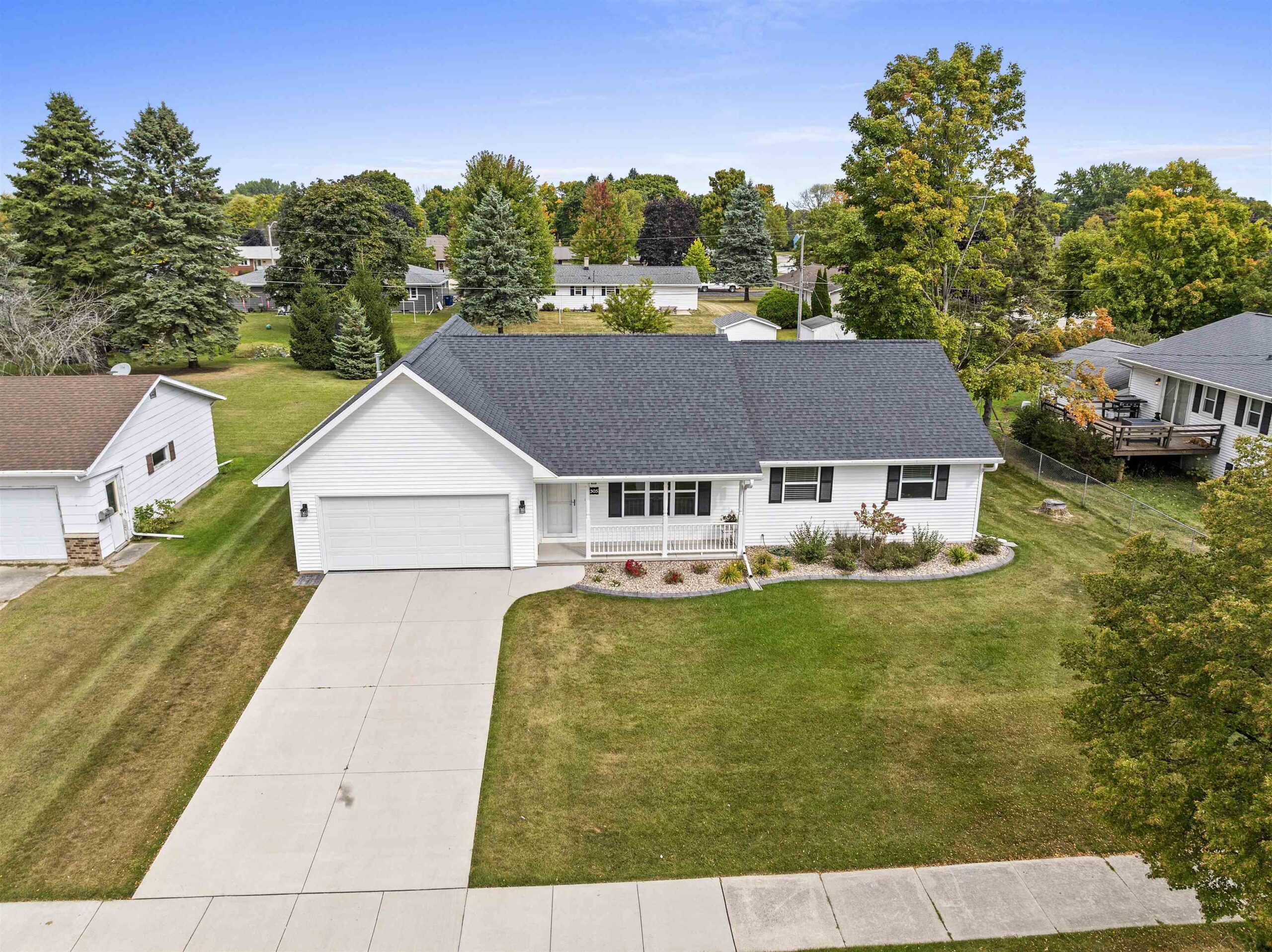 Only a few blocks away from the Lake Michigan shoreline, this better than new 3 br, 2 bath, 3 car tandem garage ranch home is sure to please! The open concept floor-plan offers ease of living with an ensuite primary bedroom that includes a walk-in closet and there is also a 1st floor laundry. Enjoy sun soaked days from the inside of this home that offers tons of storage, fully applianced kitchen with center island and granite countertops. The patio doors lead to the large backyard with huge patio complete with a gazebo and storage shed! You will also love the insulated/heated 3 car garage with a double deep stall and includes a bar and stools. The basement is ready for your finishing touches and includes a rough-in for a full bath.