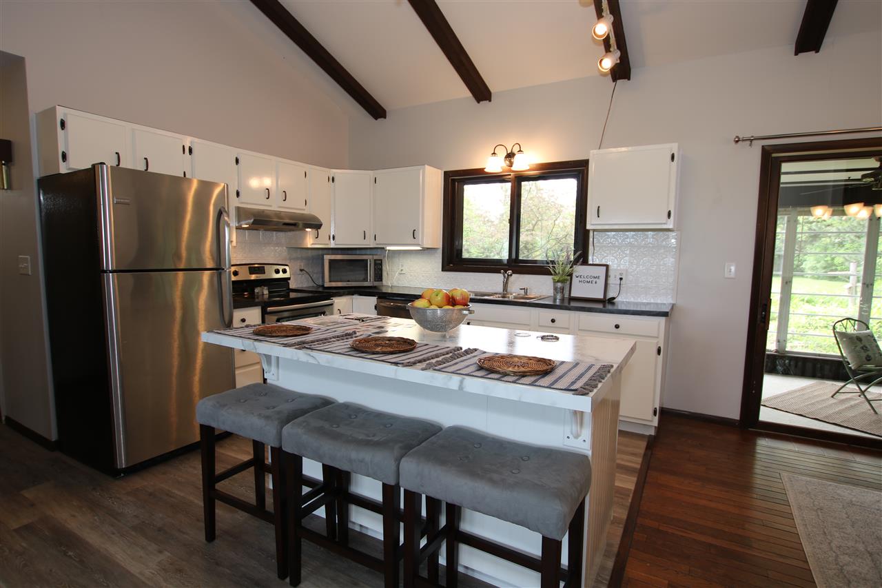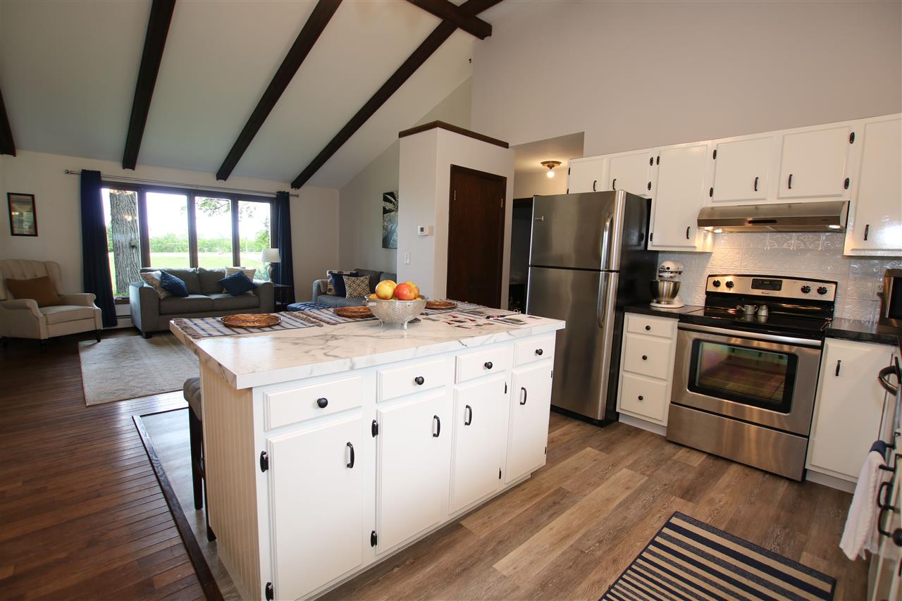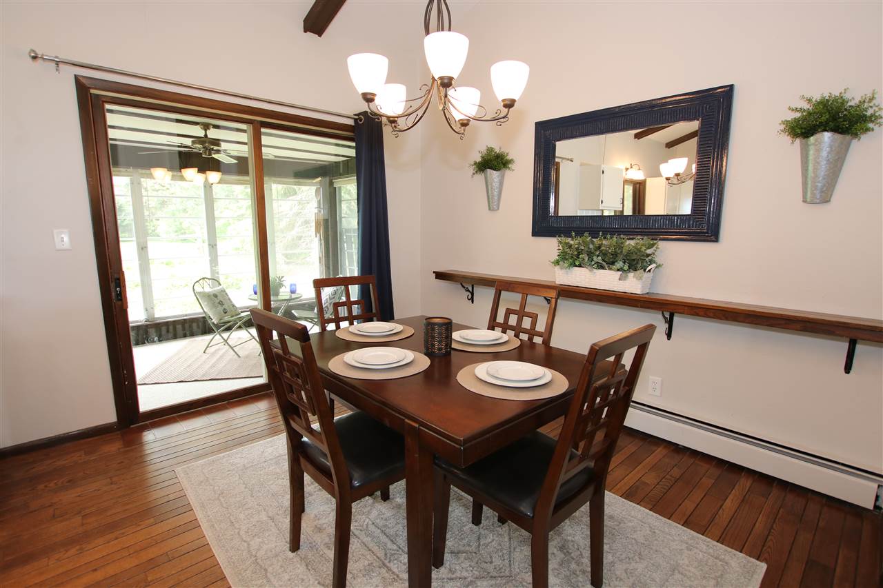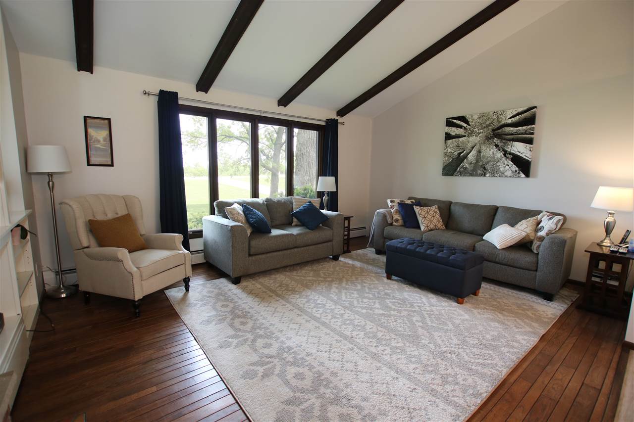 Adorable Ranch! 2/3 bedrooms, 2 full bath single story home with 1st floor laundry. Cathedral ceilings, open concept living areas. Kitchen appliances included. 2+ attached car garage and 1.5 detached garage. Featuring over 3/4 acre scenic yard w/so many different kinds of trees, enjoy the backyard from the sun room & patio areas. Clean, Cute & Move In Condition! Heat is gas hot water.