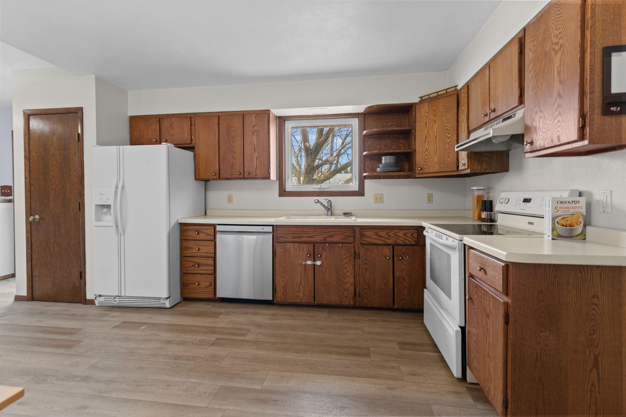 Welcome to this beautiful 3-bedroom, 2 bath home offering comfort, style, and functionality. The open-concept main level seamlessly connects the kitchen, dining area, and living room—great for everyday living and entertaining. Cozy up by the fireplace, or spread out in the large family room for movie nights. Enjoy outdoor living with a fenced-in yard, spacious deck, and charming pergola, creating a perfect space for relaxing or hosting guests. Additional highlights include a 2-car attached garage and many updates throughout. Located near schools, shopping and everyday conveniences, this home combines convenience with comfort—don’t miss this opportunity!