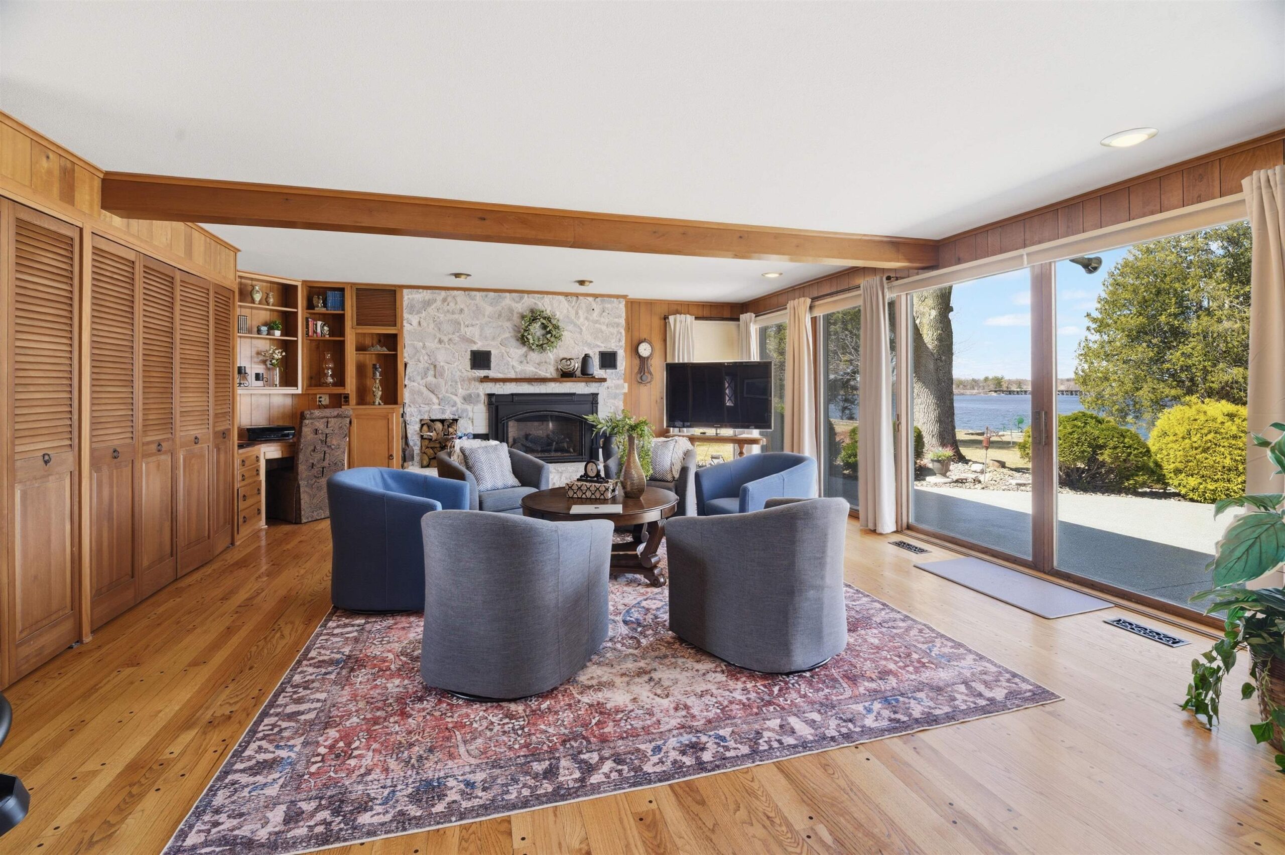 Enjoy scenic water views and breathtaking sunsets from this well-maintained waterfront home, ideally positioned at the mouth of the Wolf River with channel access to Shawano Lake. This mid-century modern retreat is designed to embrace waterfront living, offering a seamless blend of comfort, character, and natural beauty. Step outside to enjoy the outdoor shed and a two-bay boathouse, perfect for storing all your lake essentials. Inside, the inviting family room features a cozy gas fireplace and patio doors that open to the outdoors, creating the perfect space to relax while taking in the views. The kitchen includes appliances and flows easily for everyday living, complemented by convenient main floor laundry. A wonderful opportunity to enjoy waterfront living with space to add your own.