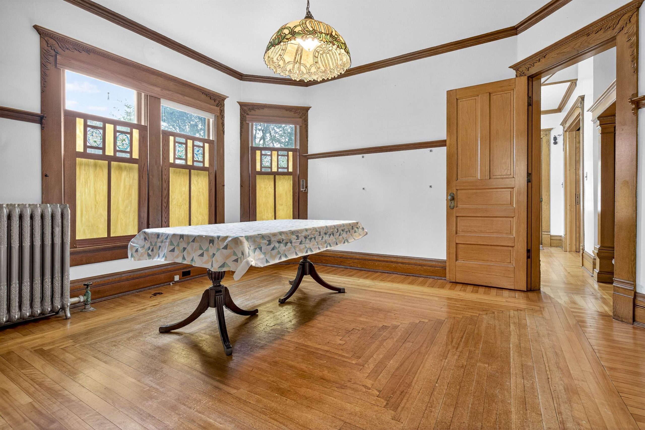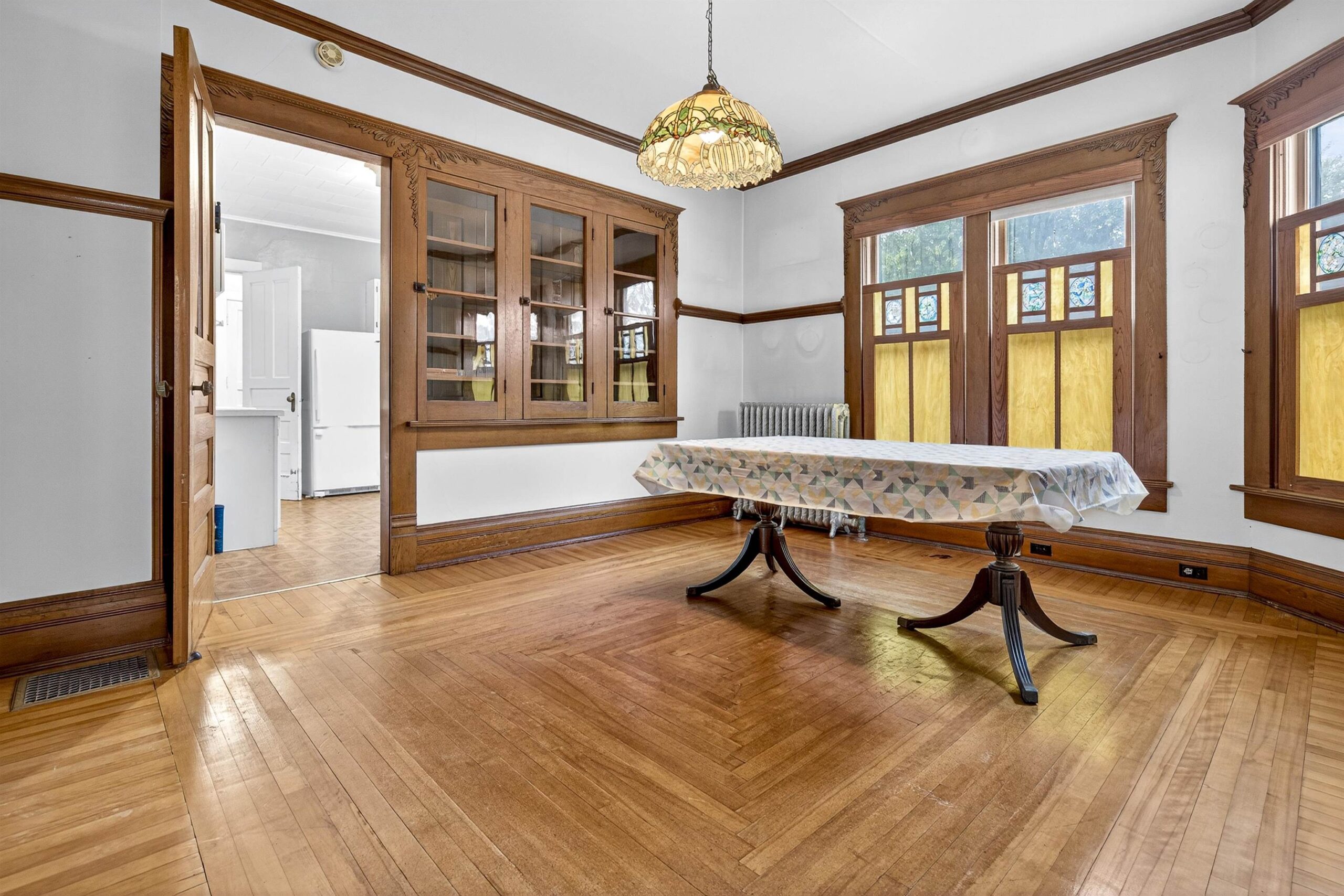 Whether you're a lover of architecture, history or simply appreciate fine craftsmanship, this rare gem speaks to a bygone era! When you first step inside you are greeted with artesian hardwood flooring & soaring ceilings, bringing both warmth and brightness to the grand foyer. If coziness is what you desire, the beautifully ornate fireplace and cozy den area with multiple bookcases is where you want to be. This home boasts ample square footage with 3 spacious bedrooms and the potential of easily converting the now 'kitchenette' upstairs to another bedroom, office space, or playroom. This is more than a home, it's a piece of history waiting to be cherished by it's next owner - you!! Please allow 48 hours for binding acceptance.
