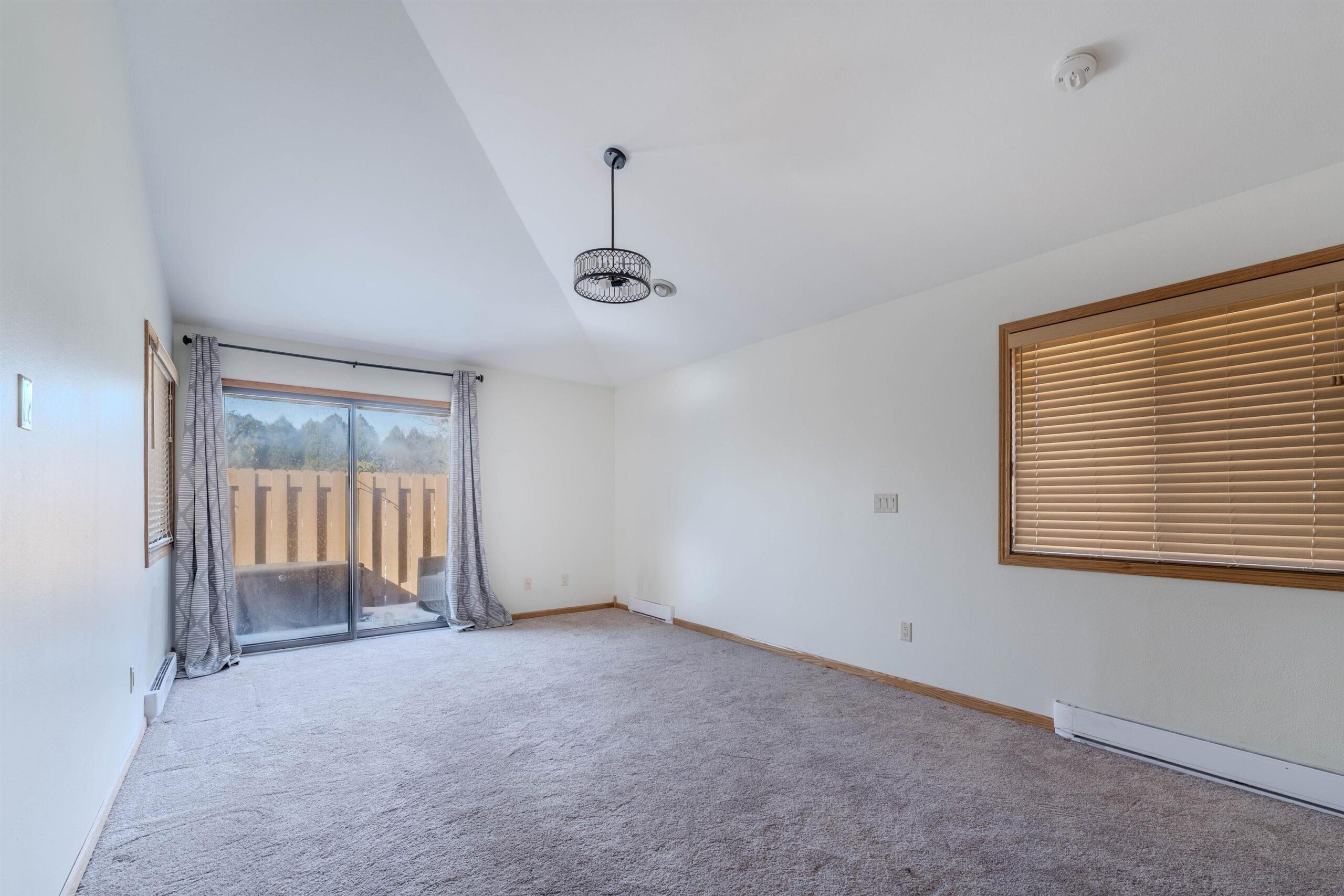 Enjoy easy, low maintenance living in this beautifully maintained first floor Fox Meadow Condo. This charming two-bedroom, one full bath condo features an inviting eat-in kitchen with a full-size pantry that flows seamlessly into a bright living room highlighted by soaring vaulted ceilings. The spacious primary suite offers a generous walk-in closet and private access to the updated bath. Step outside to your own private fully fenced patio. Recent updates include new light fixtures, washer, dryer and fresh paint. The kitchen and bath have been tastefully updated to make this unit move-in ready. New hot water heater November, 2025. Condo fees are paid semi-annually at $870.00. One car garage number 53. Some of the photos have been virtually staged.