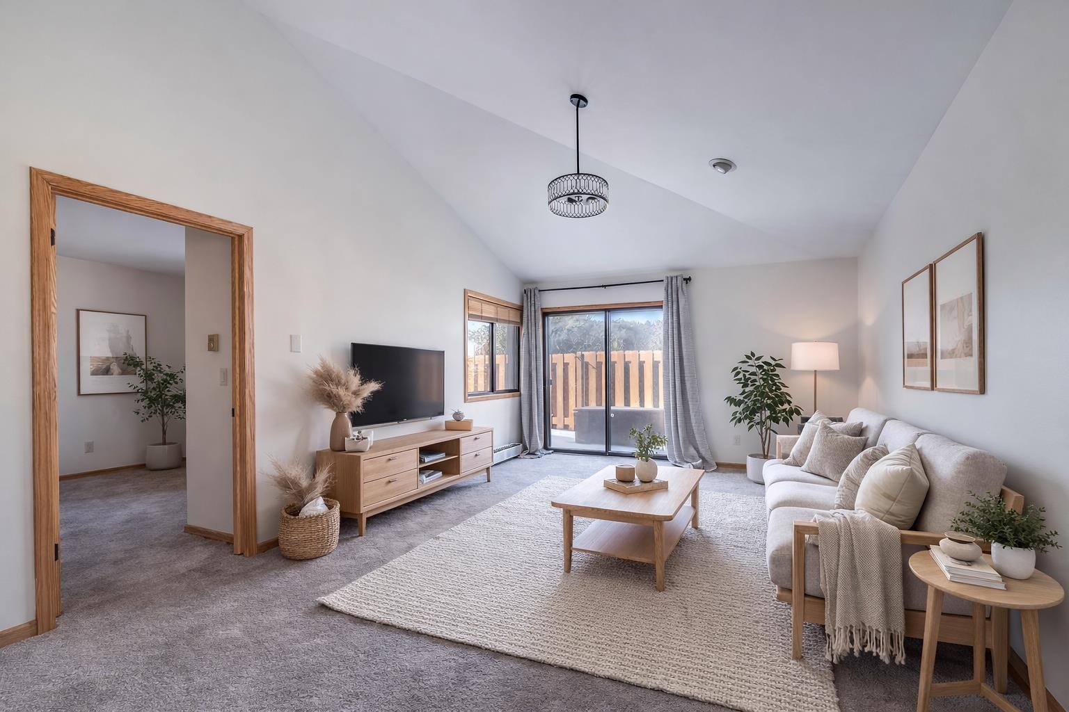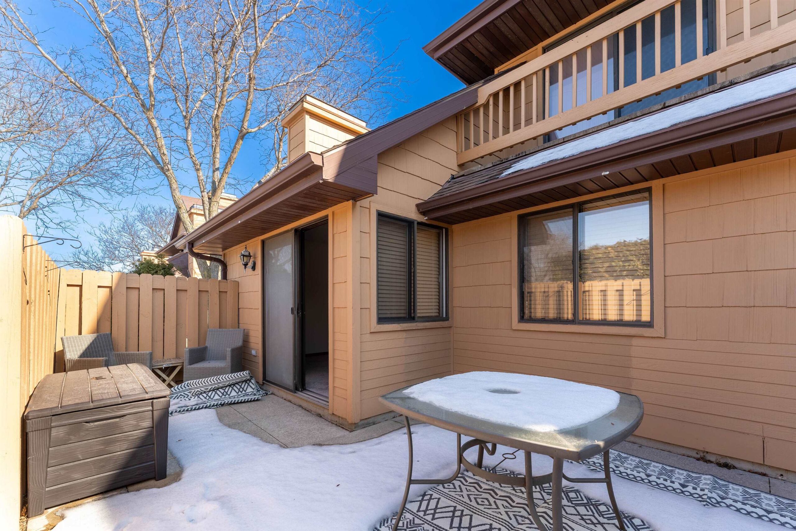 Enjoy easy, low maintenance living in this beautifully maintained first floor Fox Meadow Condo. This charming two-bedroom, one full bath condo features an inviting eat-in kitchen with a full-size pantry that flows seamlessly into a bright living room highlighted by soaring vaulted ceilings. The spacious primary suite offers a generous walk-in closet and private access to the updated bath. Step outside to your own private fully fenced patio. Recent updates include new light fixtures, washer, dryer and fresh paint. The kitchen and bath have been tastefully updated to make this unit move-in ready. New hot water heater November, 2025. Condo fees are paid semi-annually at $870.00. One car garage number 53. Some of the photos have been virtually staged.