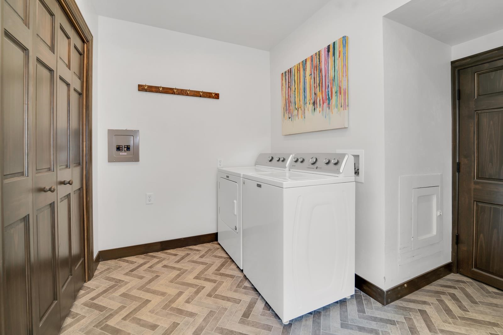 stove, refrigerator, 2 washers, 2 dryers, roll top desk, all window coverings