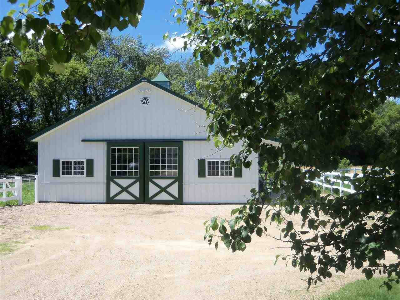 Vacation at home when you own this 13+ acre farmette on beautiful 27-hole golf course. Charming Cape Cod w/wrap around porches, multi-level deck, 36x36 Morton horse barn w/3 box stalls, tack room & white vinyl fences. Inside find wide plank floors, white woodwork, 2 fireplaces, 1st floor master suite w/fireplace opening to sunroom, music room, office loft & bonus room above garage w/separate staircase. Lots of windows w/gorgeous views & a creek runs through it! LL exposed for future finish.