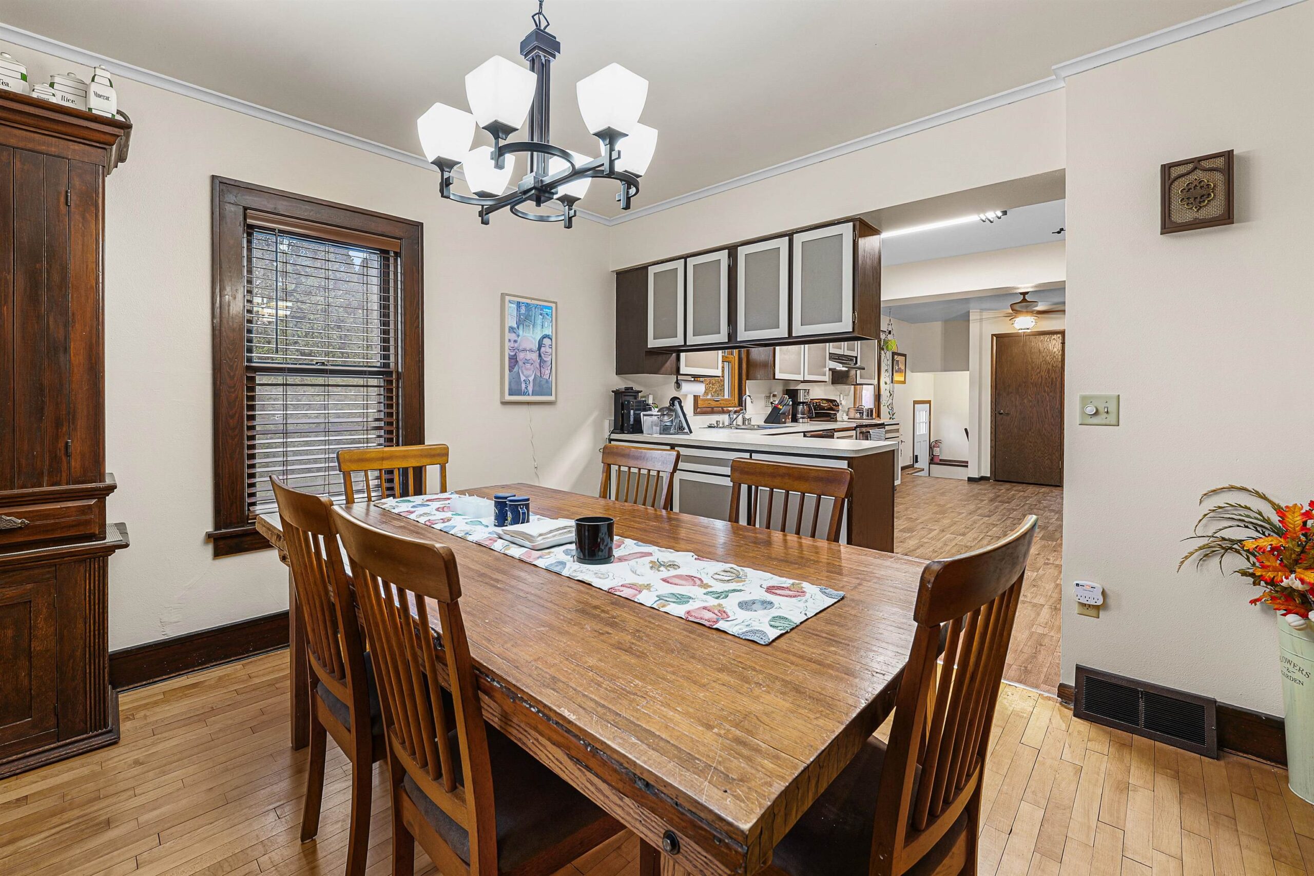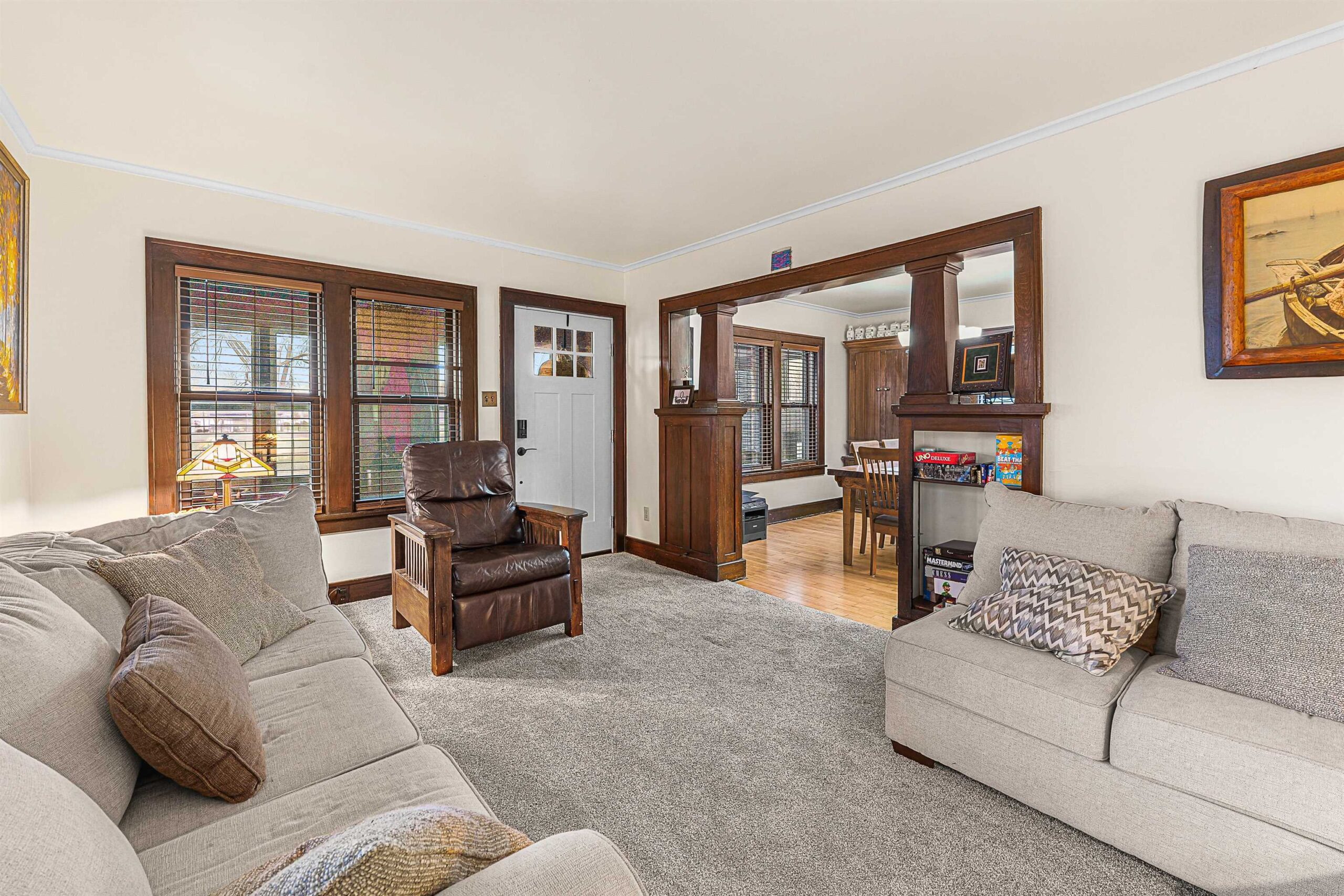 Beautiful Move-In Ready 2 Story Delight. This home shows large family room, fireplace & views of the pretty backyard. Offers front enclosed porch for lots of light for reading & relaxing. Living Rm, Formal Dining & Kitchen have that open feel to entertain easily. 2.5 baths, full basement w/some finished area, 3 spacious bedrooms upstairs and remodeled full bath. Exterior fun offers large garage, keep those vehicles out of the snow & extra concrete space for outdoor parking. Concrete circle to enjoy the seasons, and across the street is amazing Plamore Park. Excellent opportunity with a modest price tag.