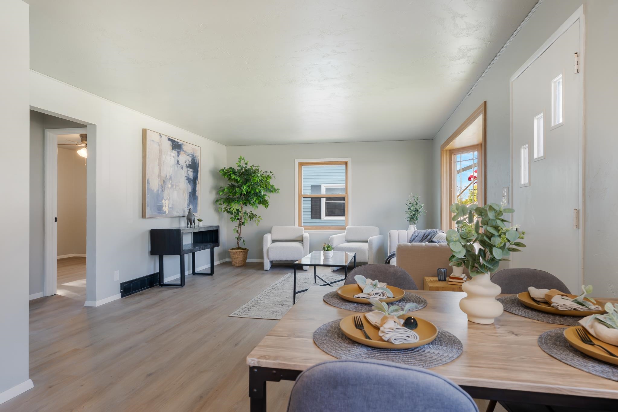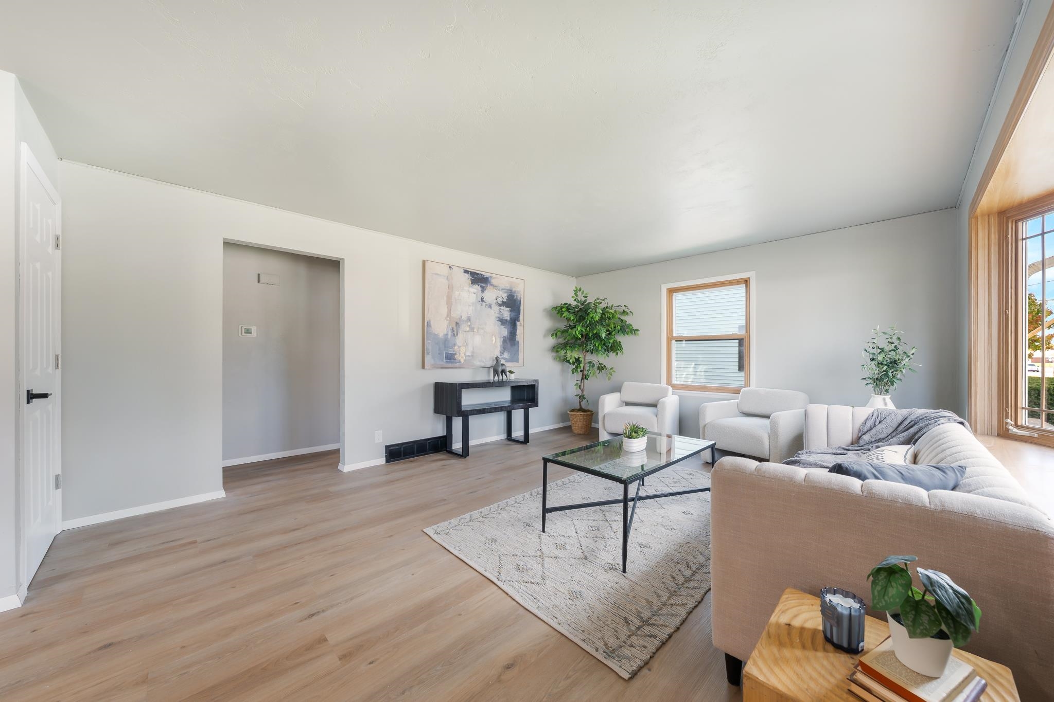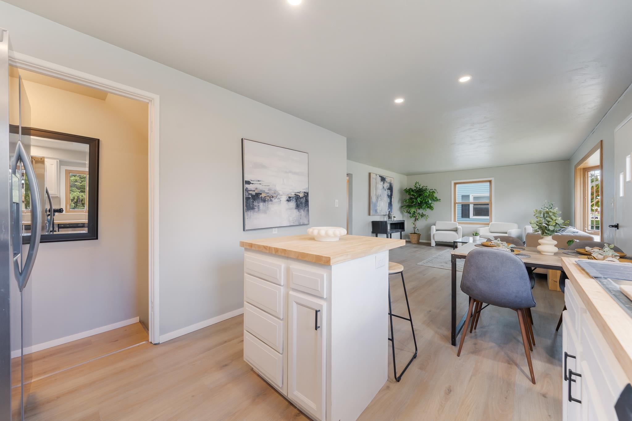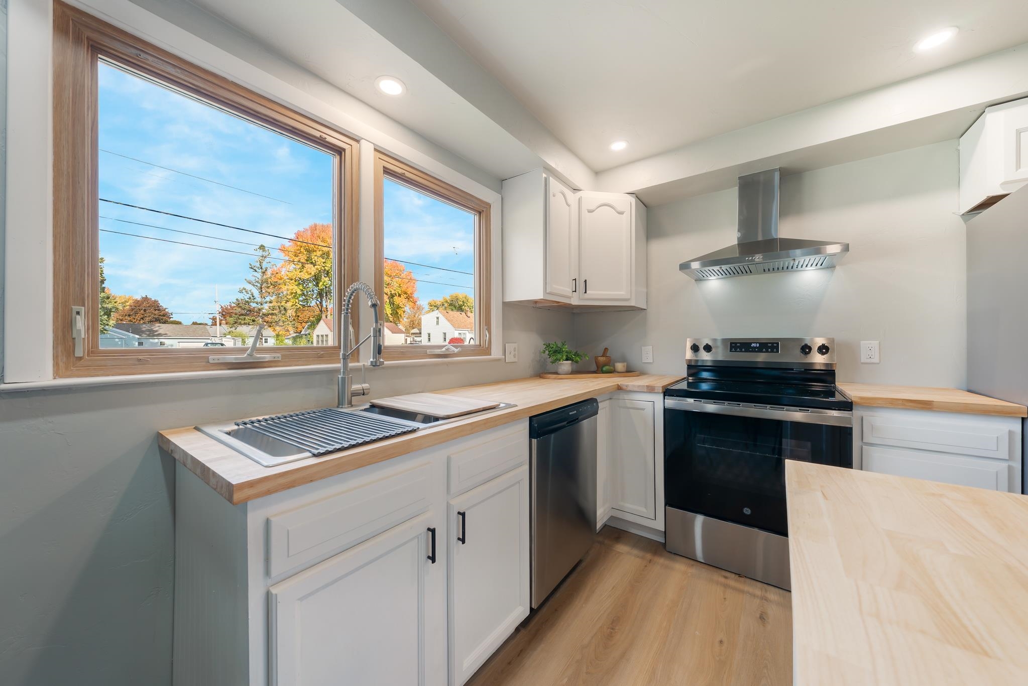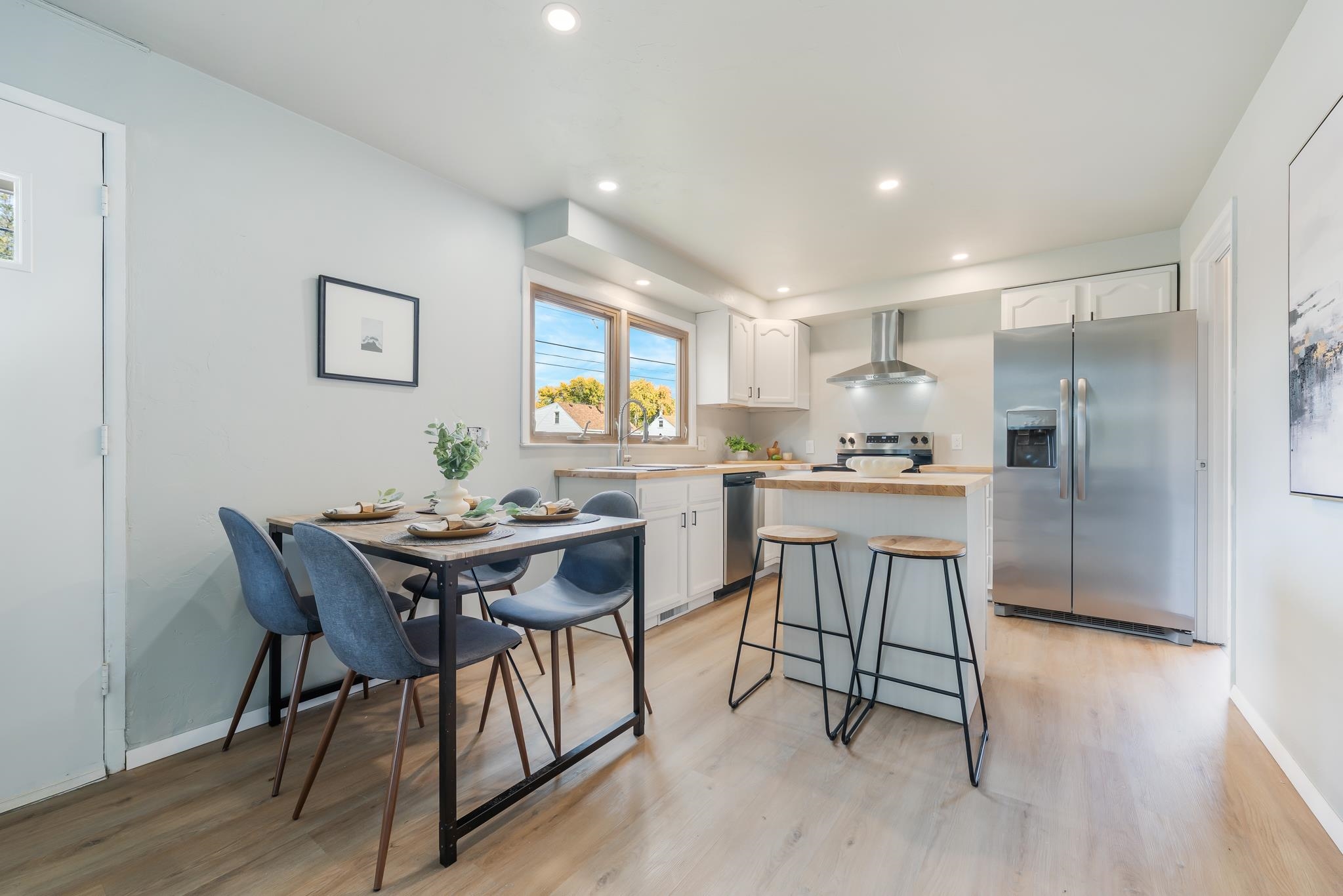 This thoughtfully updated 3 bedroom home offers a welcoming open layout with modern finishes throughout. The kitchen features new stainless steel appliances, butcher block countertops, and a clean, functional design perfect for everyday living. Enjoy new luxury vinyl plank flooring, a stylish tiled shower, and numerous additional updates that make this home truly move-in ready. Outside, the spacious 2.5-car garage provides plenty of room for parking and storage. Conveniently located near schools, shopping, and parks, this rare find combines comfort, style, and practicality in one great package.