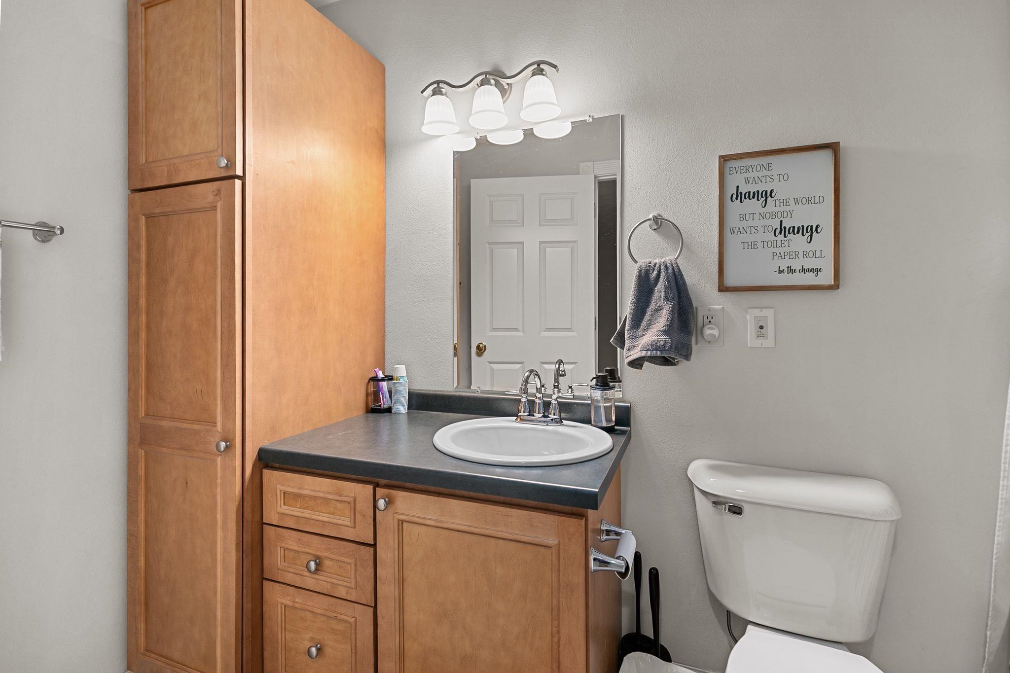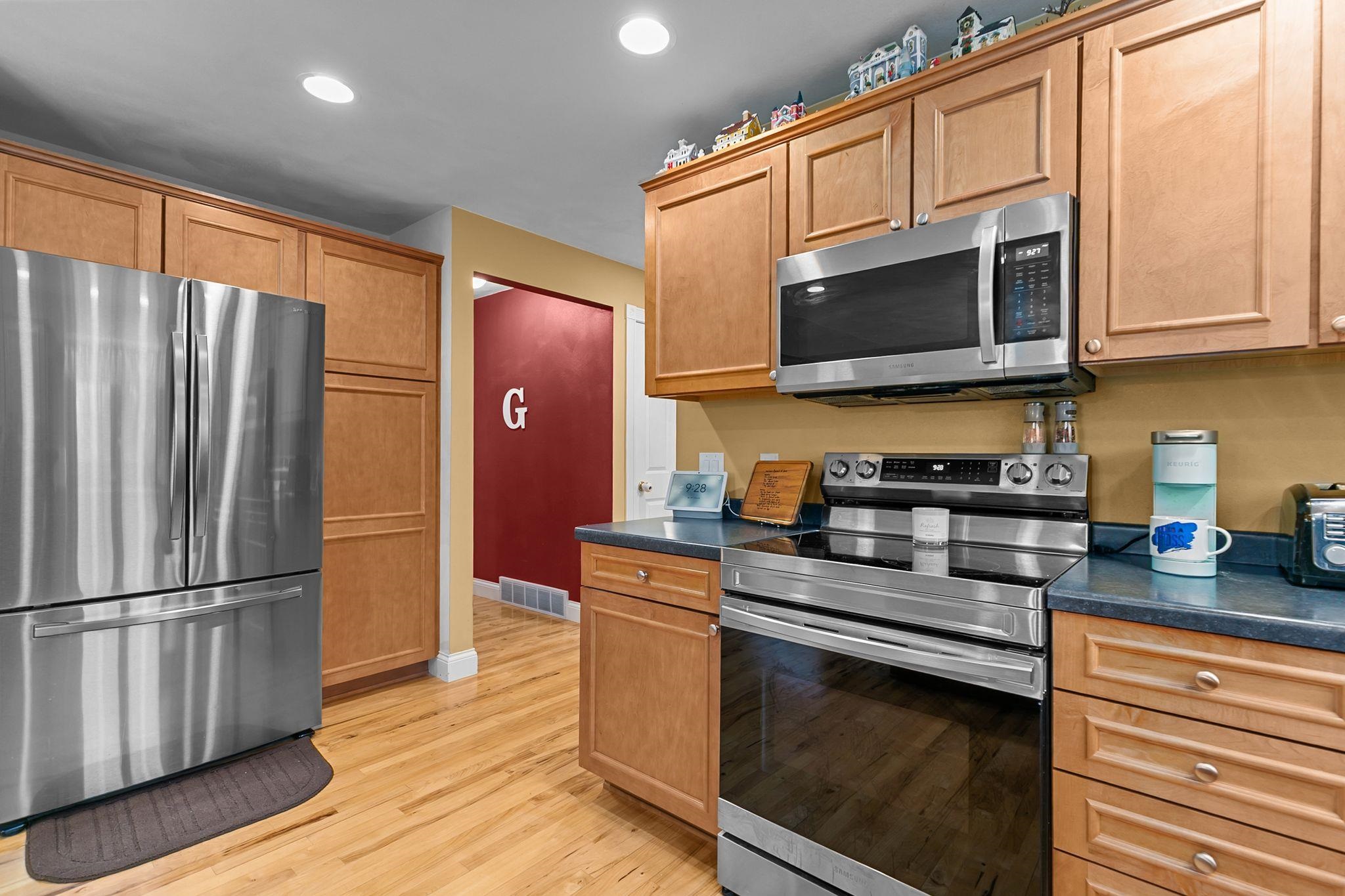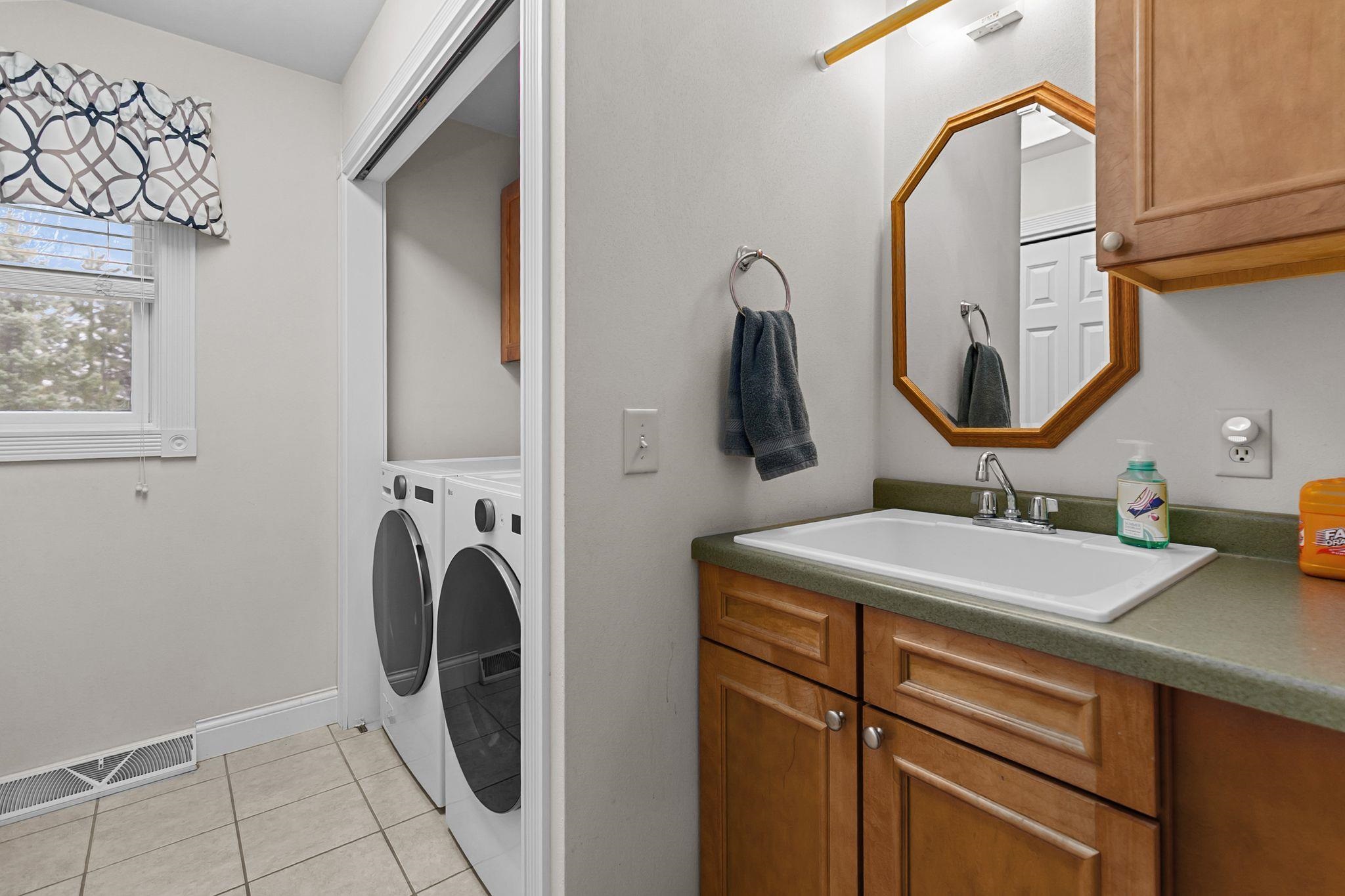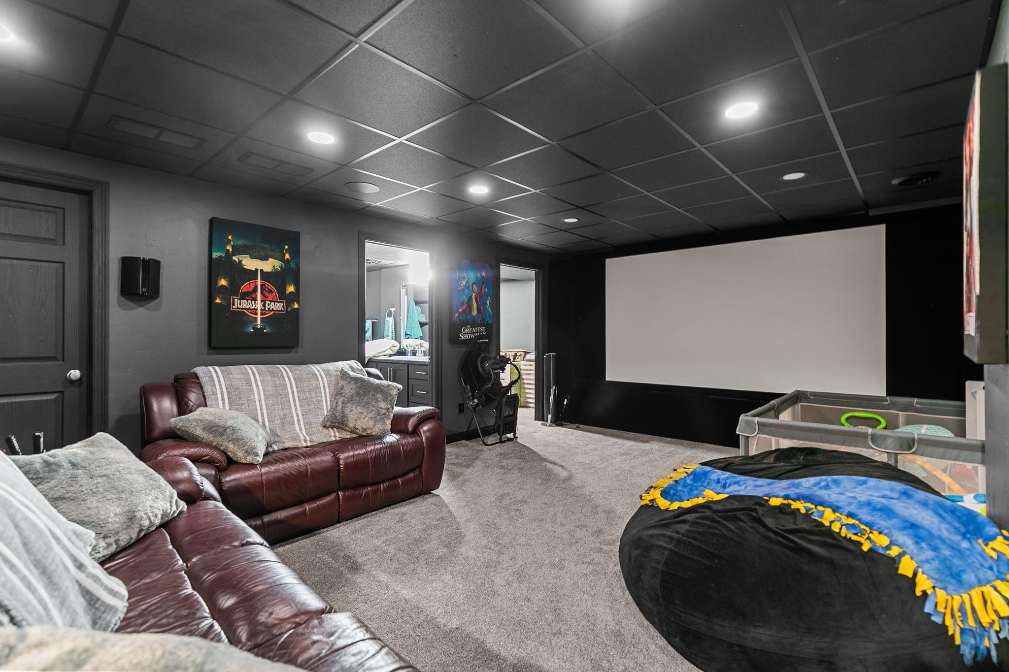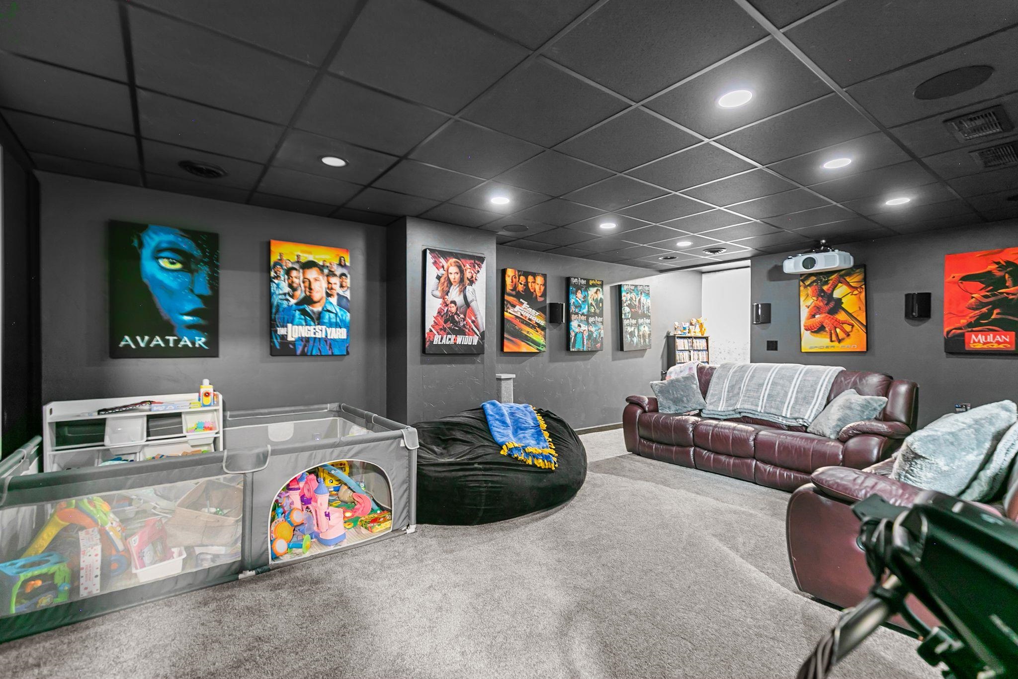 Imagine lounging in your backyard: on a beautiful patio, next to a fire, looking out over your expansive backyard. Invite friends over to enjoy the sunsets. Or have a movie night in the well appointed theater room. Make snacks and treats in the lovely kitchen with maple cabinets, hickory hardwood floors and plenty of counter space to spread out. Cozy up to the fireplace and read a book, work on a craft or enjoy your favorite TV show. This house is made for comfort, both inside and out. From the first floor laundry with half bath right inside the garage door to the heated floor in the lower level bath, easy living can be found here. Upstairs are 3 bright bedrooms with a lot of daylight and 2 full bathrooms. The sprinkler system will make your yard the envy of the neighbors!