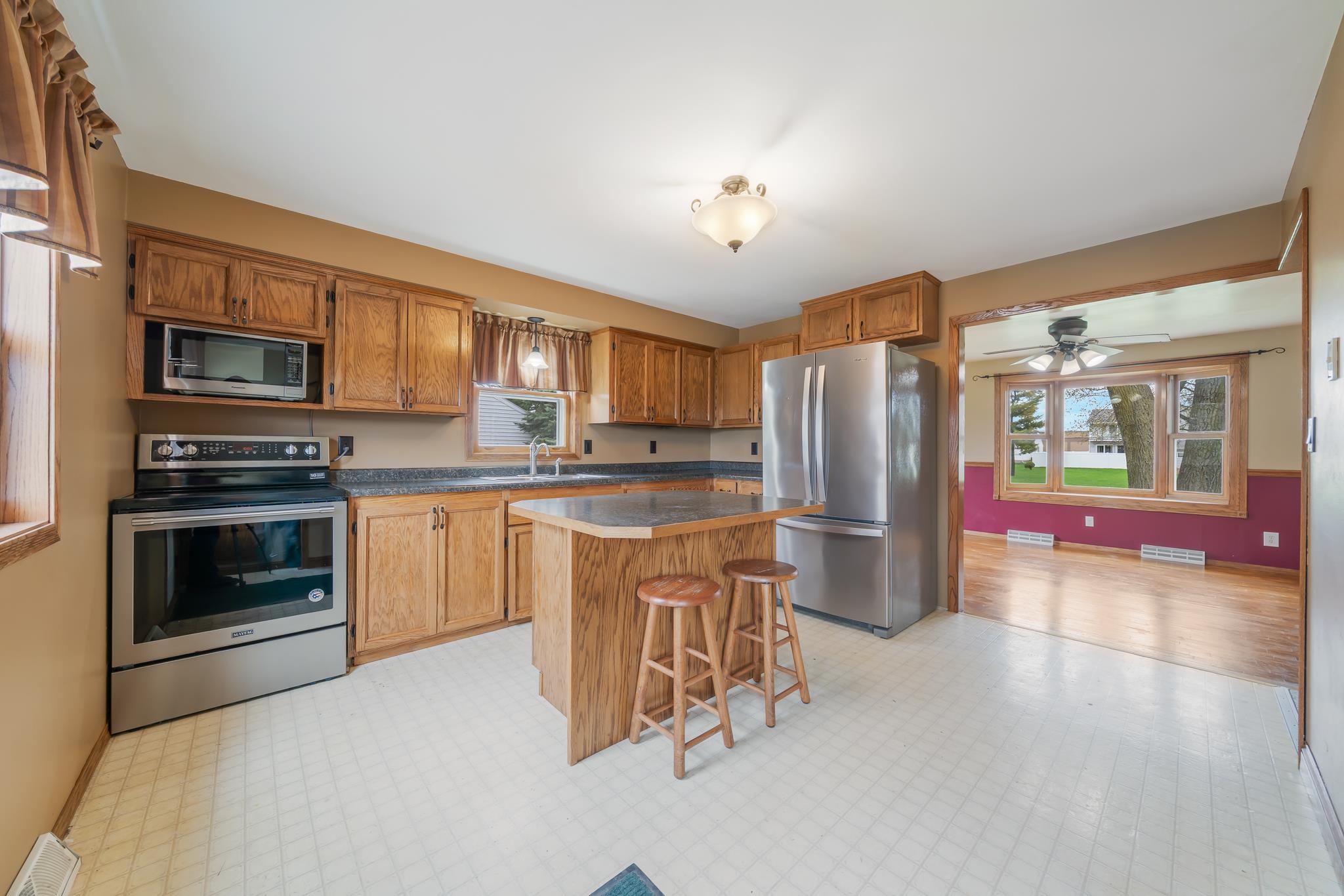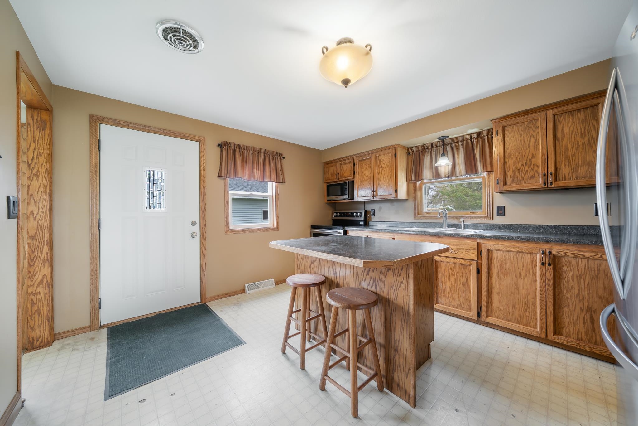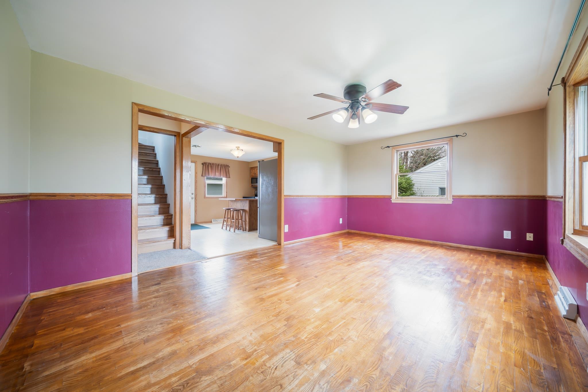 Nestled in the heart of Appleton, this charming 1.5-story home offers accessibility, comfort, and convenience. With three spacious bedrooms and two full bathrooms, this property is great for those needing accessibility features or simply seeking a centrally located home at a great price. The main floor boasts a bright living room with a beautiful bay window, a well-equipped kitchen with stainless steel appliances, and a first-floor bedroom and bath for added ease. Upstairs, you'll find two generously sized bedrooms and extra storage. The full-sized block foundation basement provides ample space, while the propane-fueled furnace ensures efficiency. Outside, a 26’x30’ oversized two-car garage is perfect for additional storage, parking, or recreational vehicles. Offers to be reviewed 5/3 11am