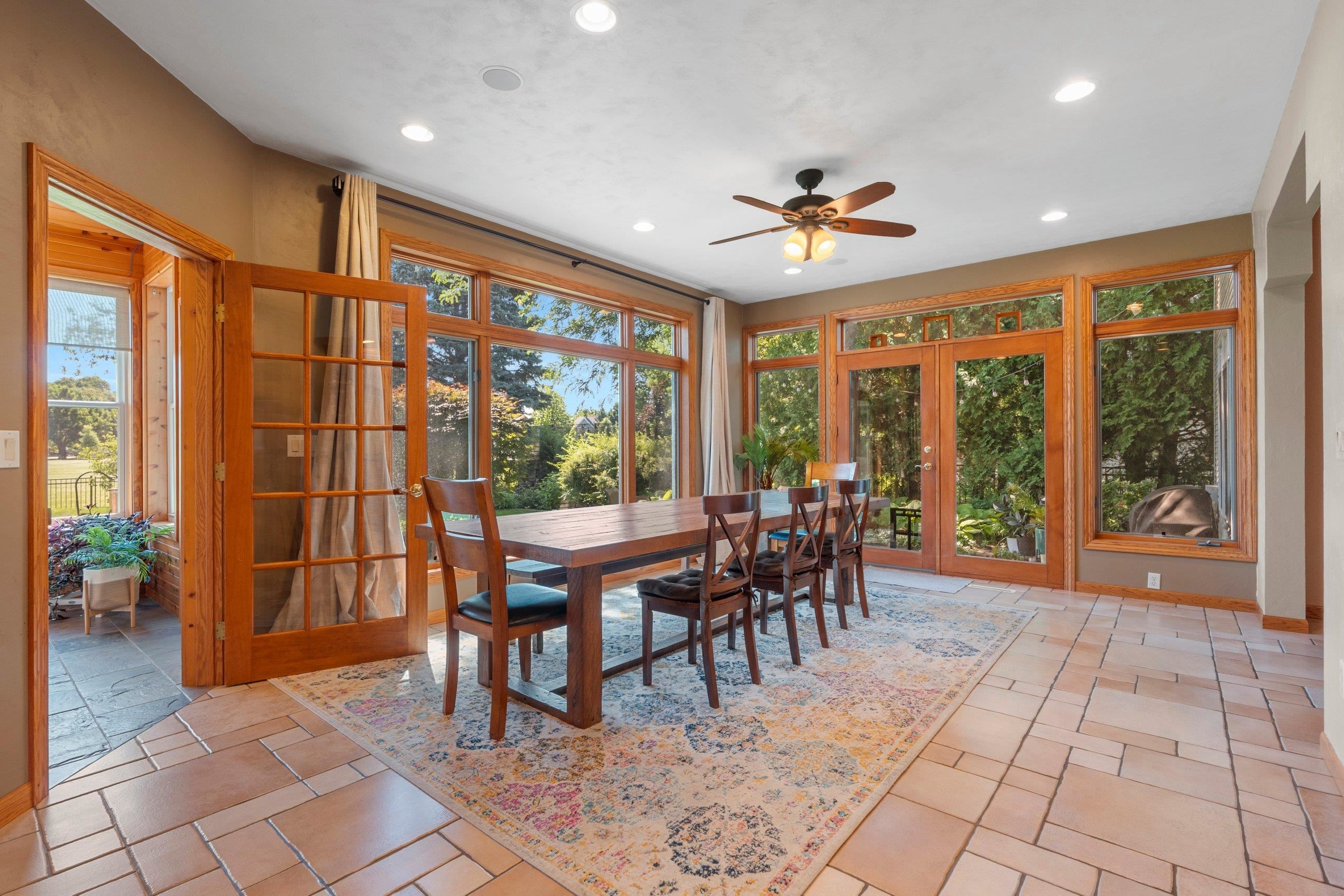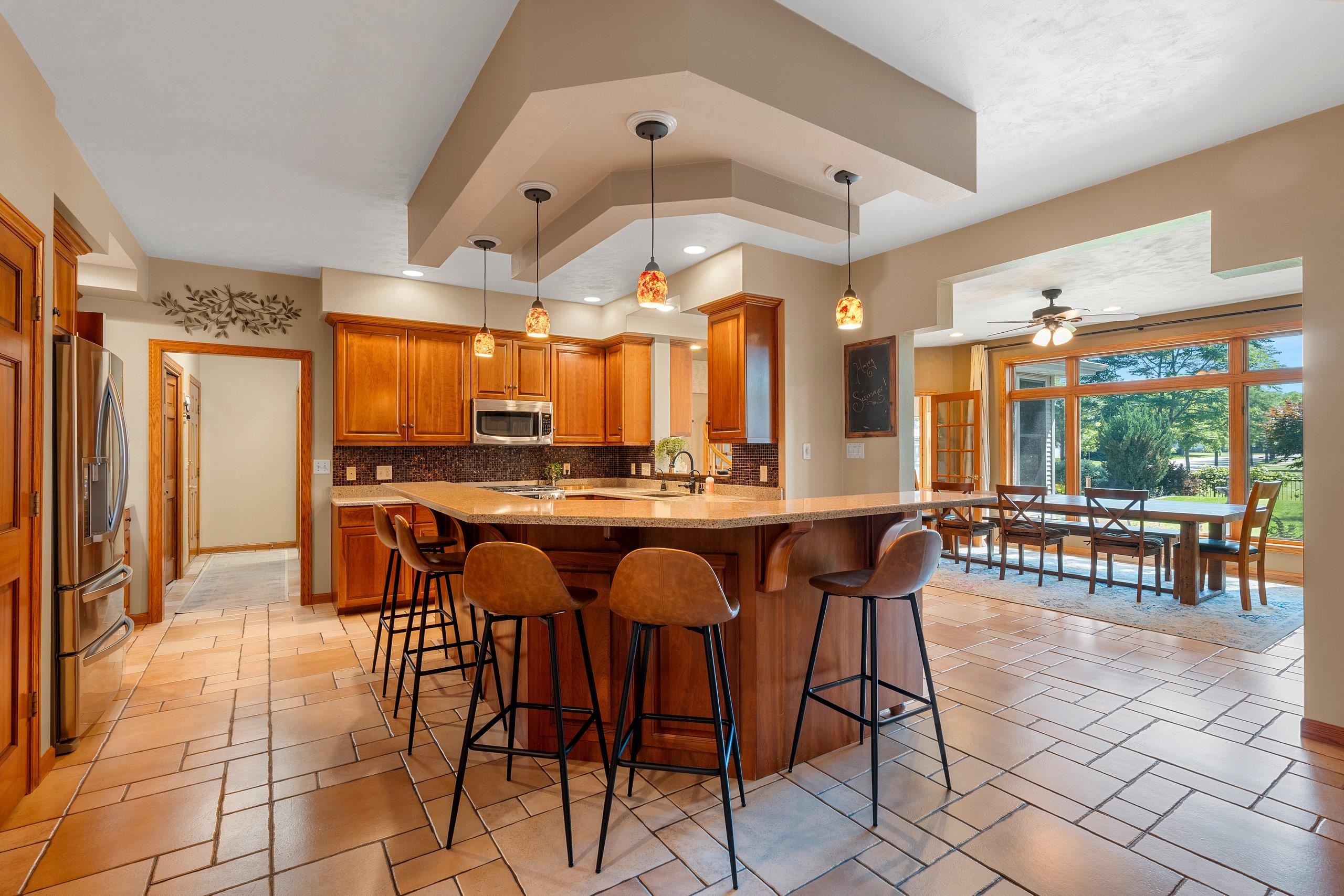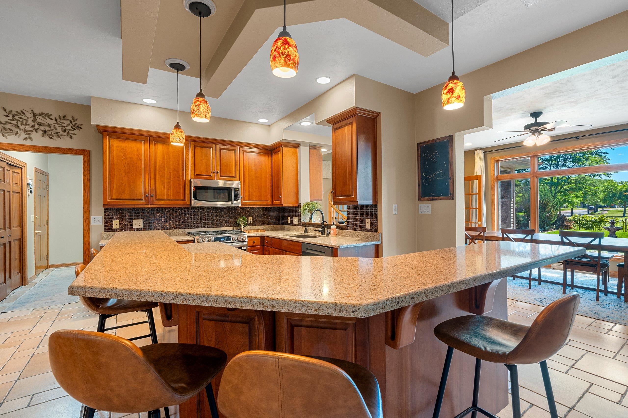 Located in desirable Mahler Farms neighborhood, this beautiful home backs up to Mahler Park and offers scenic views from the many large windows! The main level features 9ft ceilings and spacious rooms. A coffered ceiling and gas fireplace warm up the living area. A well appointed kitchen features Cambria quartz countertops and a large island w/ plenty of seating + a tile backsplash. The kitchen connects to the large dining area and is perfect for entertaining with a wet bar and serving station while the sunroom blends your indoor and outdoor spaces. Upstairs are 5 large bedrooms, including a massive owners suite. The basement is finished w/ egress window, rec spaces and full bath. The fenced yard includes a paver patio and mature landscaping. This special home is a must see!