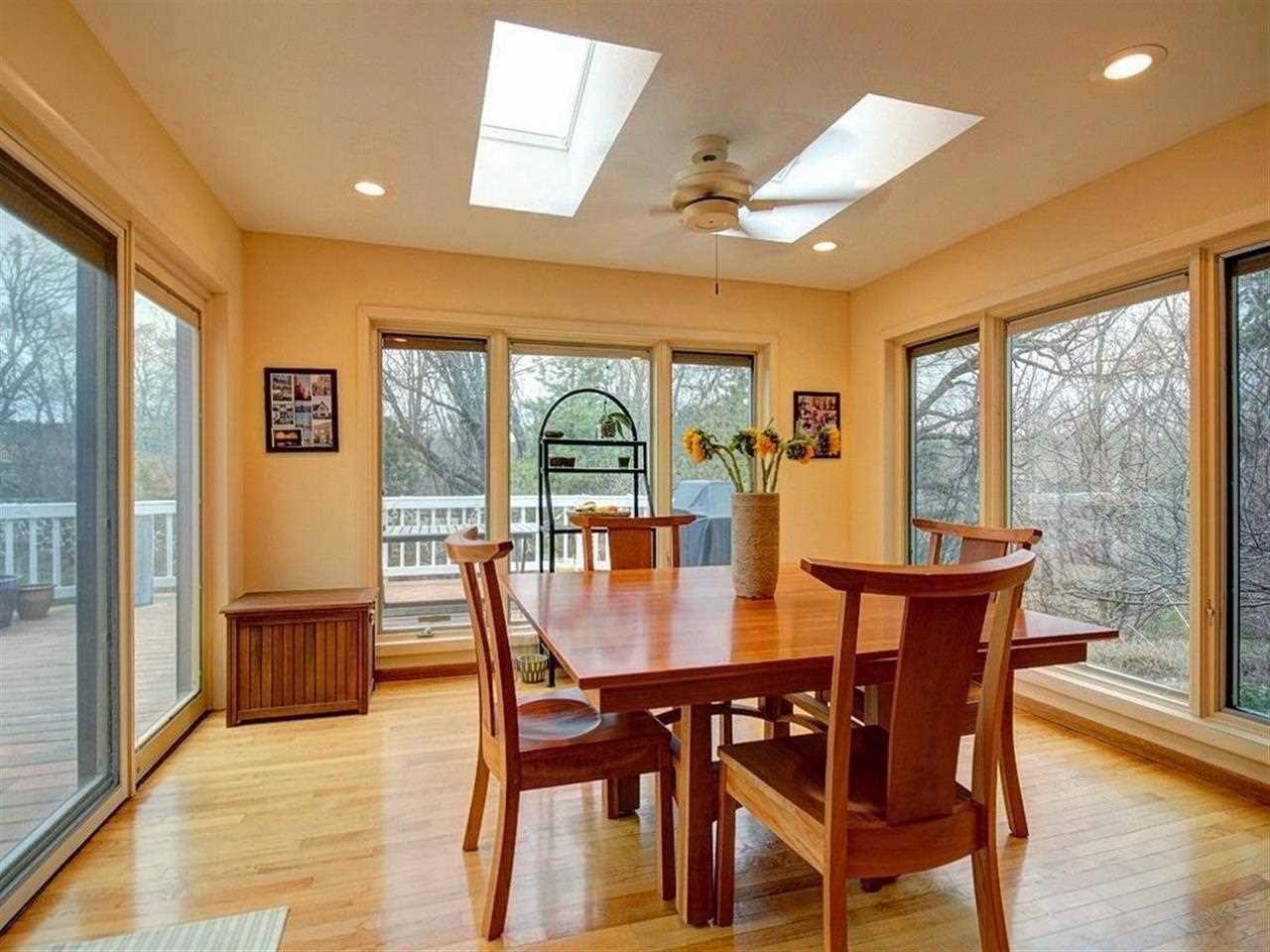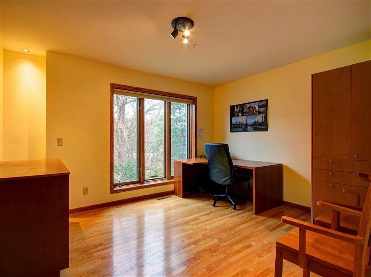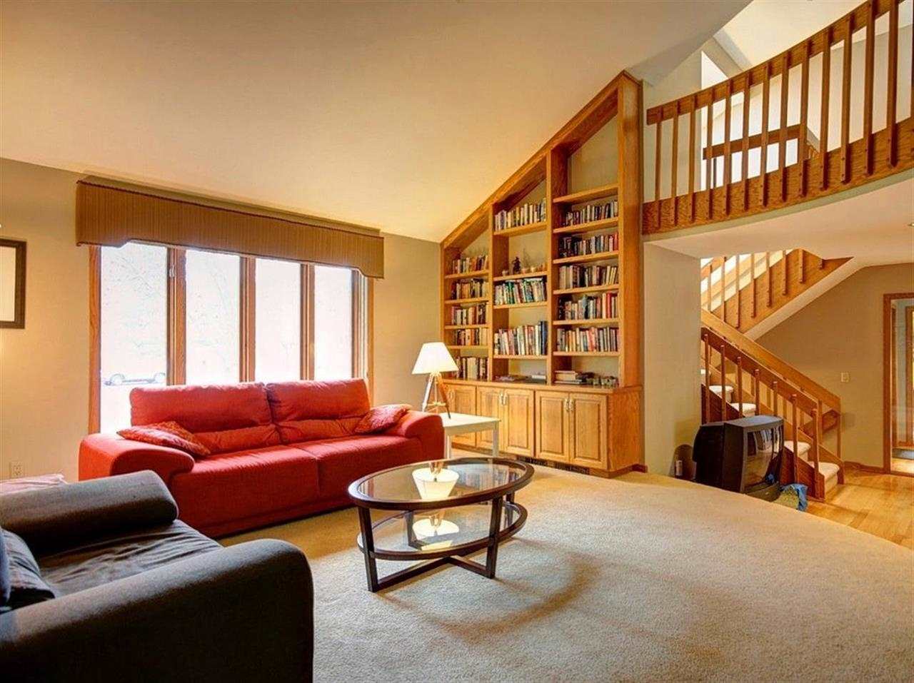 Beautiful contemporary set on large, wooded lot. Breathtaking two-story great room with fireplace and built-ins. Expansive kitchen opens to relaxing sun room with deck access and backyard views. Main level boasts skylights, formal dining, office and laundry. Exposed lower level with family room exercise room and 3/4 bath. Many recent updates - freshly painted interior, new tile flooring. Walking distance to Elm Wood and the best rated High School in Wi.