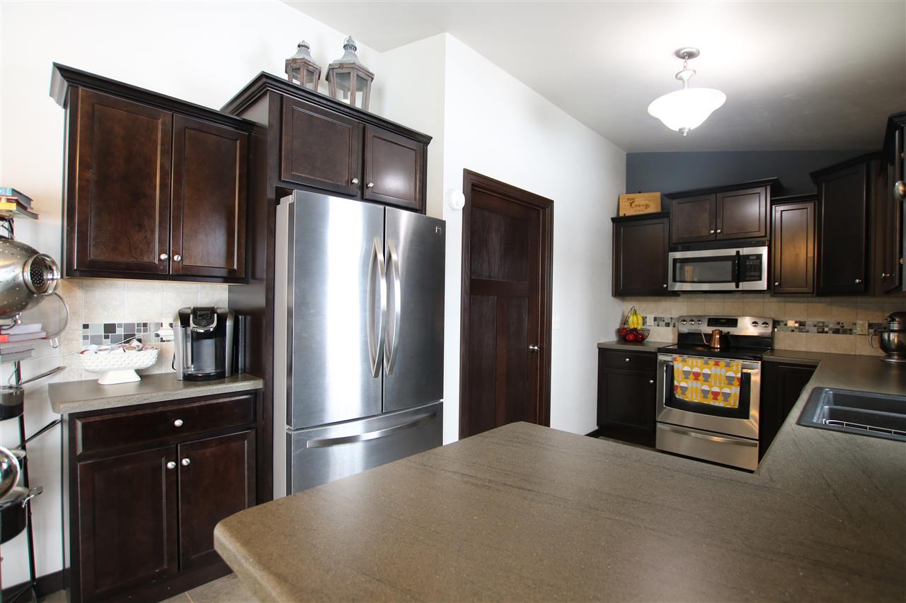 Imagine coming home to this gorgeous ranch with almost a fully finished lower level! Beautiful dark espresso woodwork throughout the main level, including the kitchen cabinets. All appliances included. Main floor laundry room with great storage and built-ins. Living room with a tiled gas fireplace. Professionally finished lower level adding so much extra square footage. Bar area, game area, rec area and another full bathroom. 3.5 car attached garage. The back of the lot is wooded with no neighbors behind. Located just minutes from town and close to all major highways! You will be impressed!