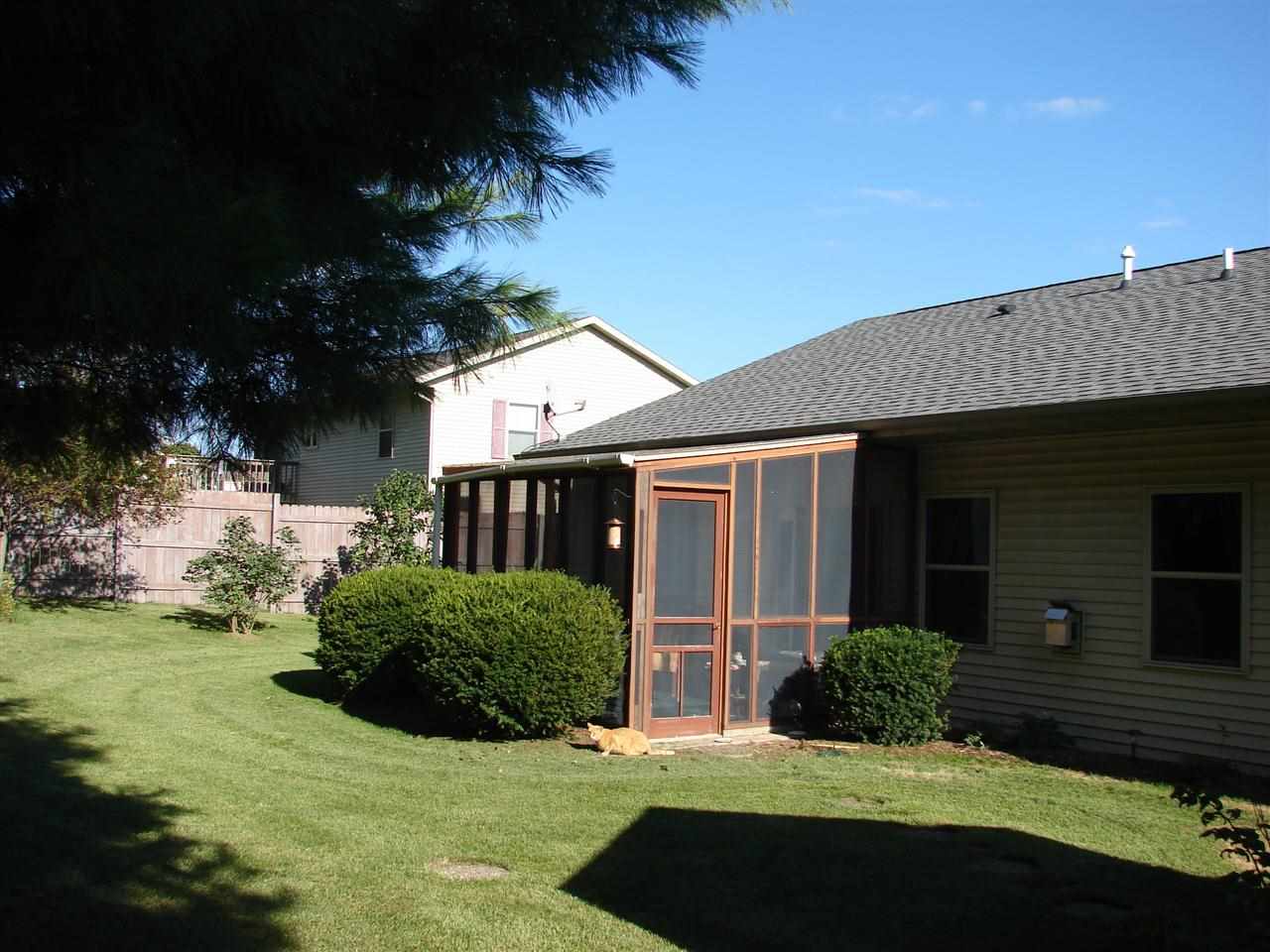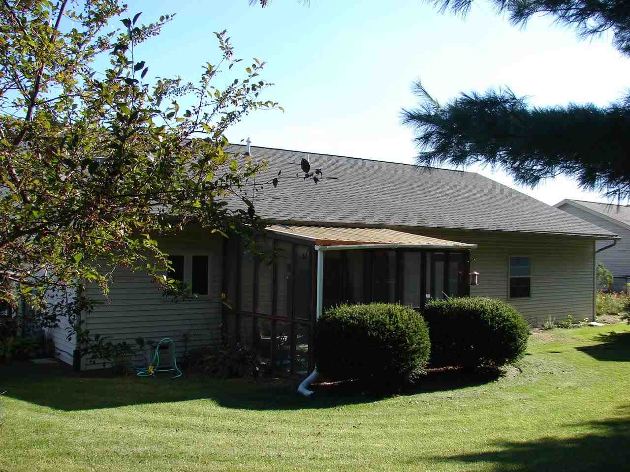 Zero entry level makes this home easy living! No steps to climb. 2 bedroom, 1 1/2 Jack-n-Jill bath w/jetted tub and grab bars. Very nice oak kitchen with built in pantry. Large dining/family area features gas fireplace. 3-season sun porch. Hardwood floors. 2 car attached garage w/opener. Metal storage shed. 9ft ceilings, roof 5yrs old. Laundry on main level with extra storage. All air vents cleaned in 2014. Private level lot with many perennials has a garden like feel. All measurements are approx.