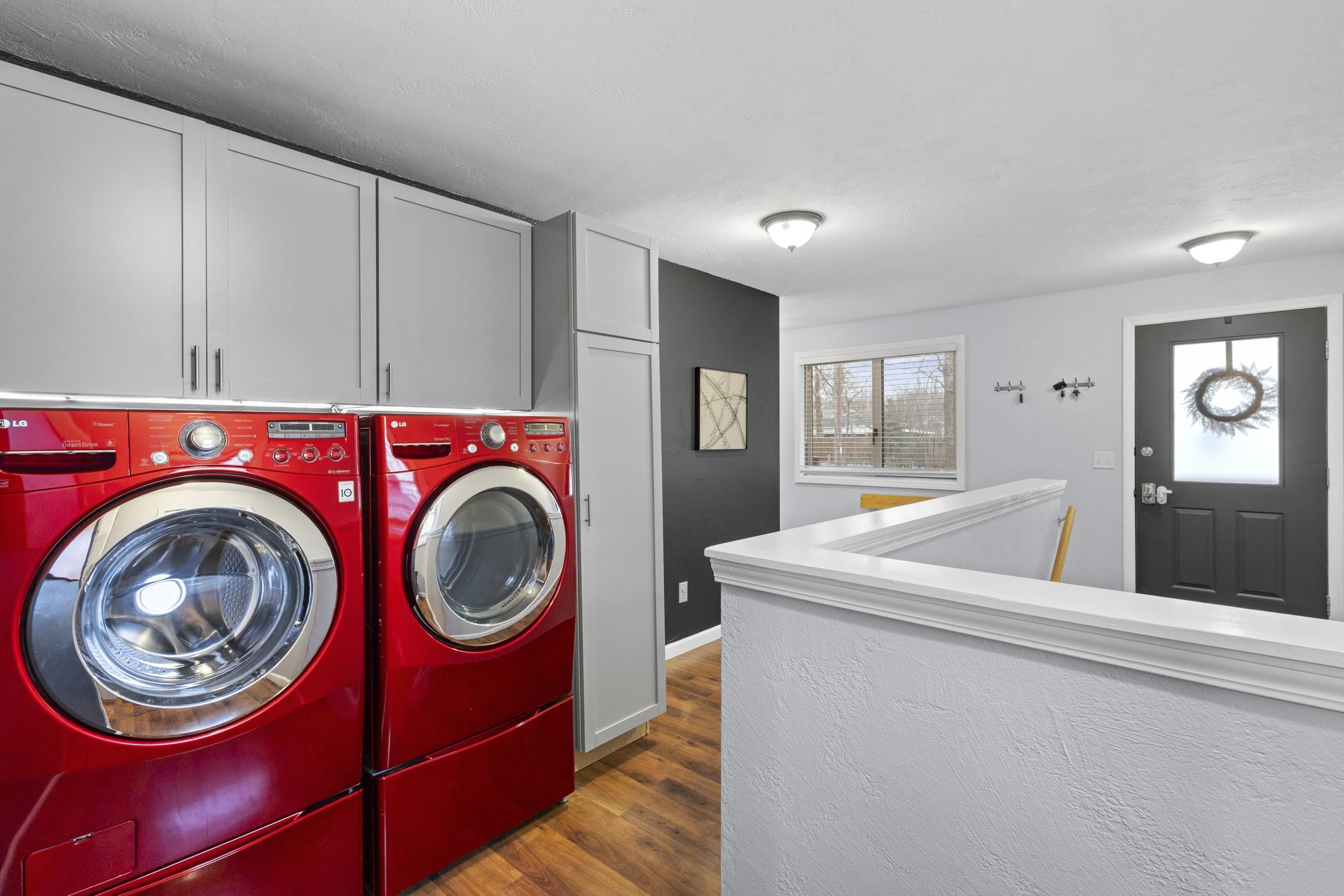Dishwasher, Refrigerator, Stove, Microwave, washer, dryer, cabinet in mudroom, all blinds, heater in garage, canopy on deck