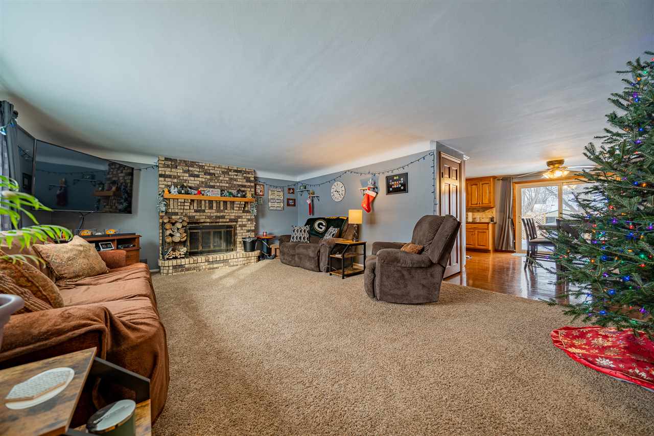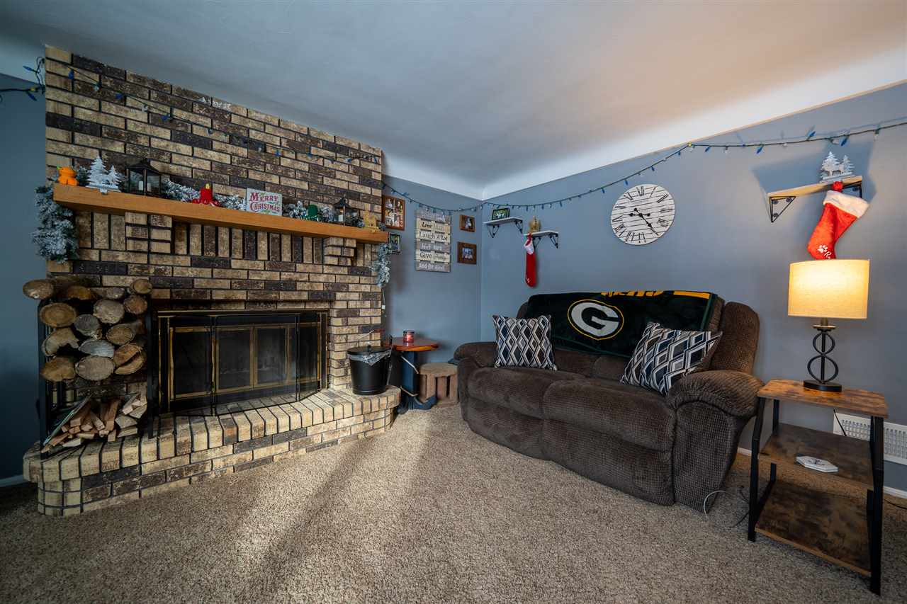 Come check out this cozy 1.5 story Pre Inspected Home! The layout is excellent for entertaining; large kitchen w/ island & room for a large table. Easy access to the deck for cookouts. Welcoming coved ceilings in the living room & a large wood burning fireplace to keep you warm. 3 spacious BRMS and 2 full baths. Some updates incl; new windows, roof, gutters, landscaping, remodeled LL Full Bath and much more. Bonus barn located in the backyard, insulated and framed for the perfect little hangout-bring your finishing ideas & make it your own! Walking distance to Lambeau Field!