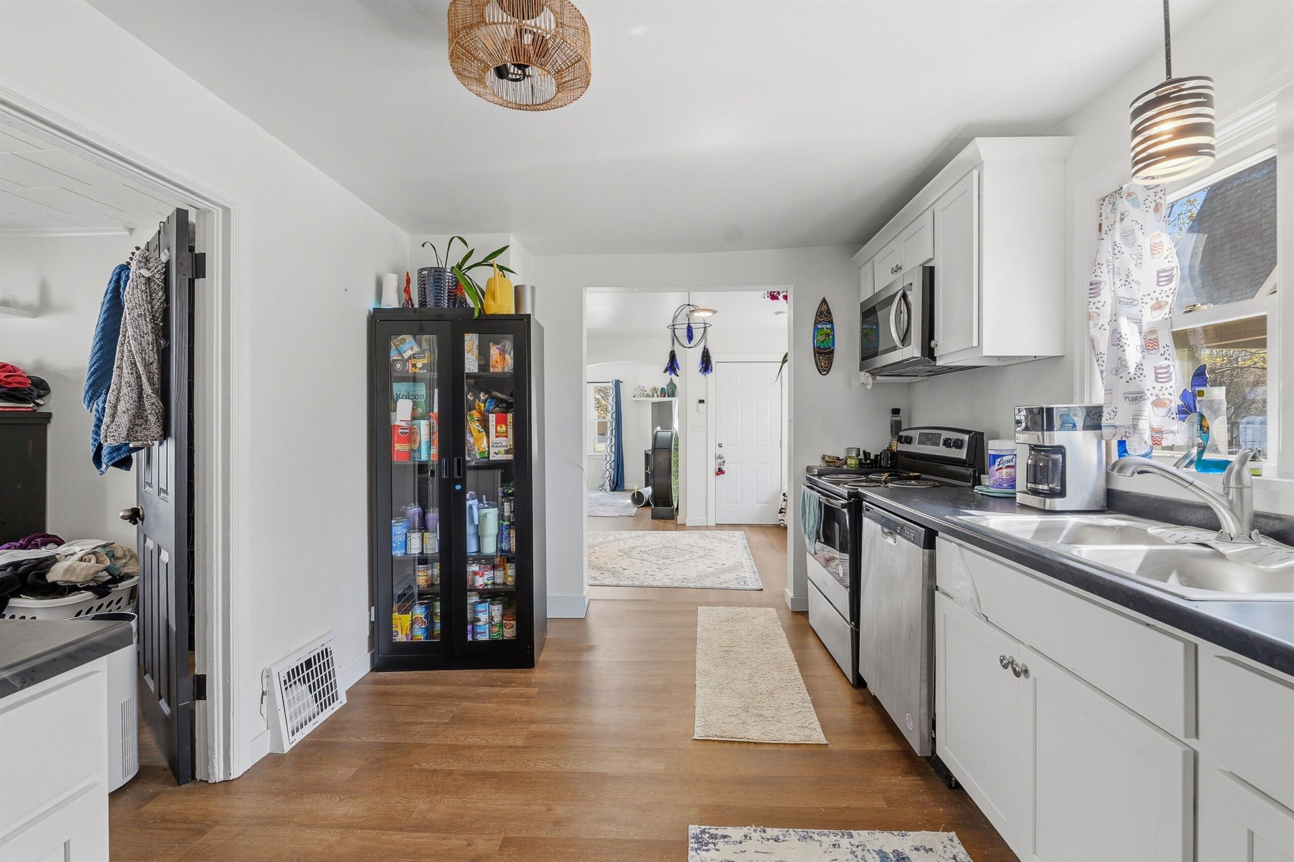 Stove/Oven, Dishwasher, Refrigerator, Microwave, Washer, Dryer, Kitchen pantry cabinet, simplisafe home security system