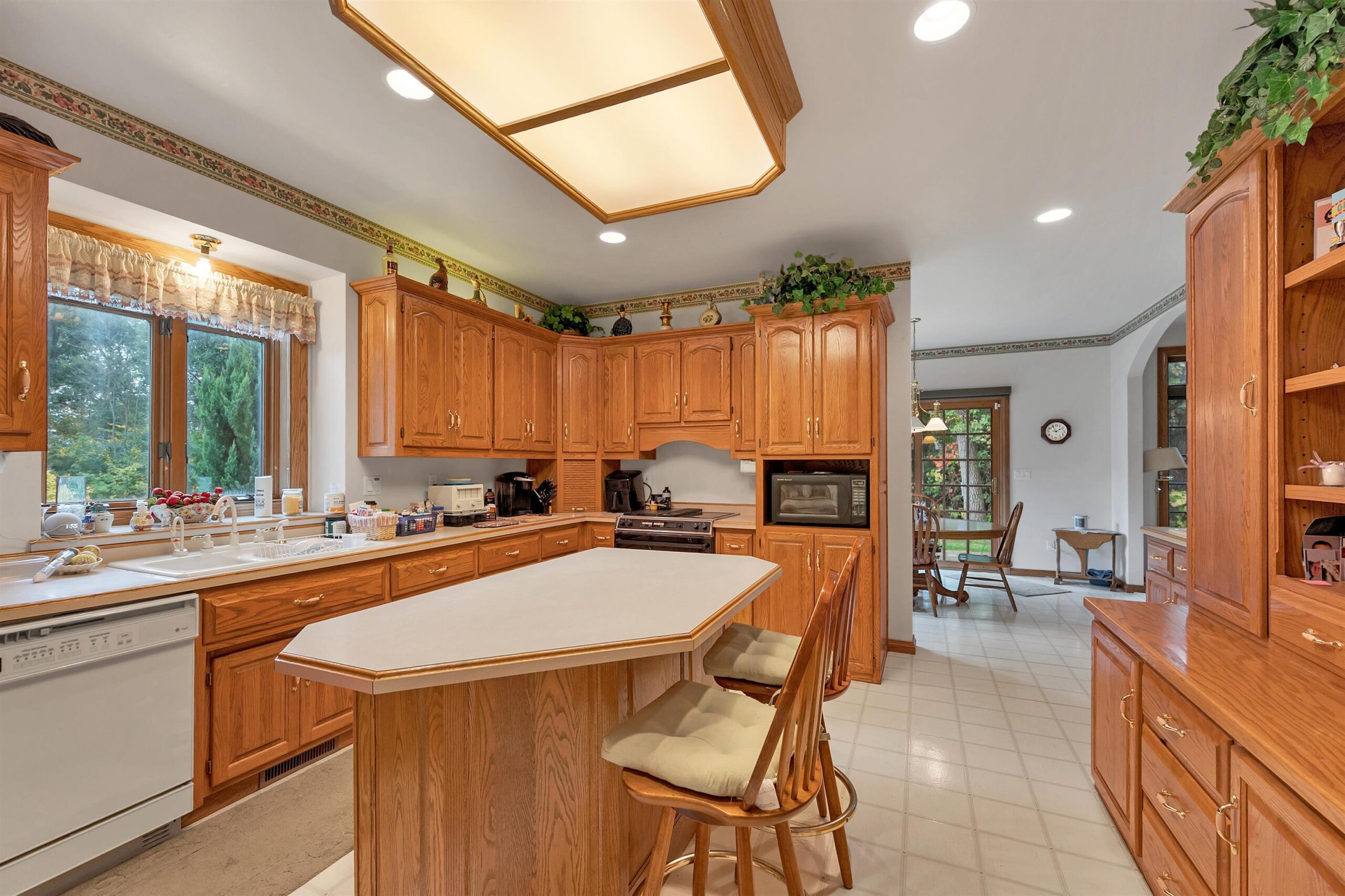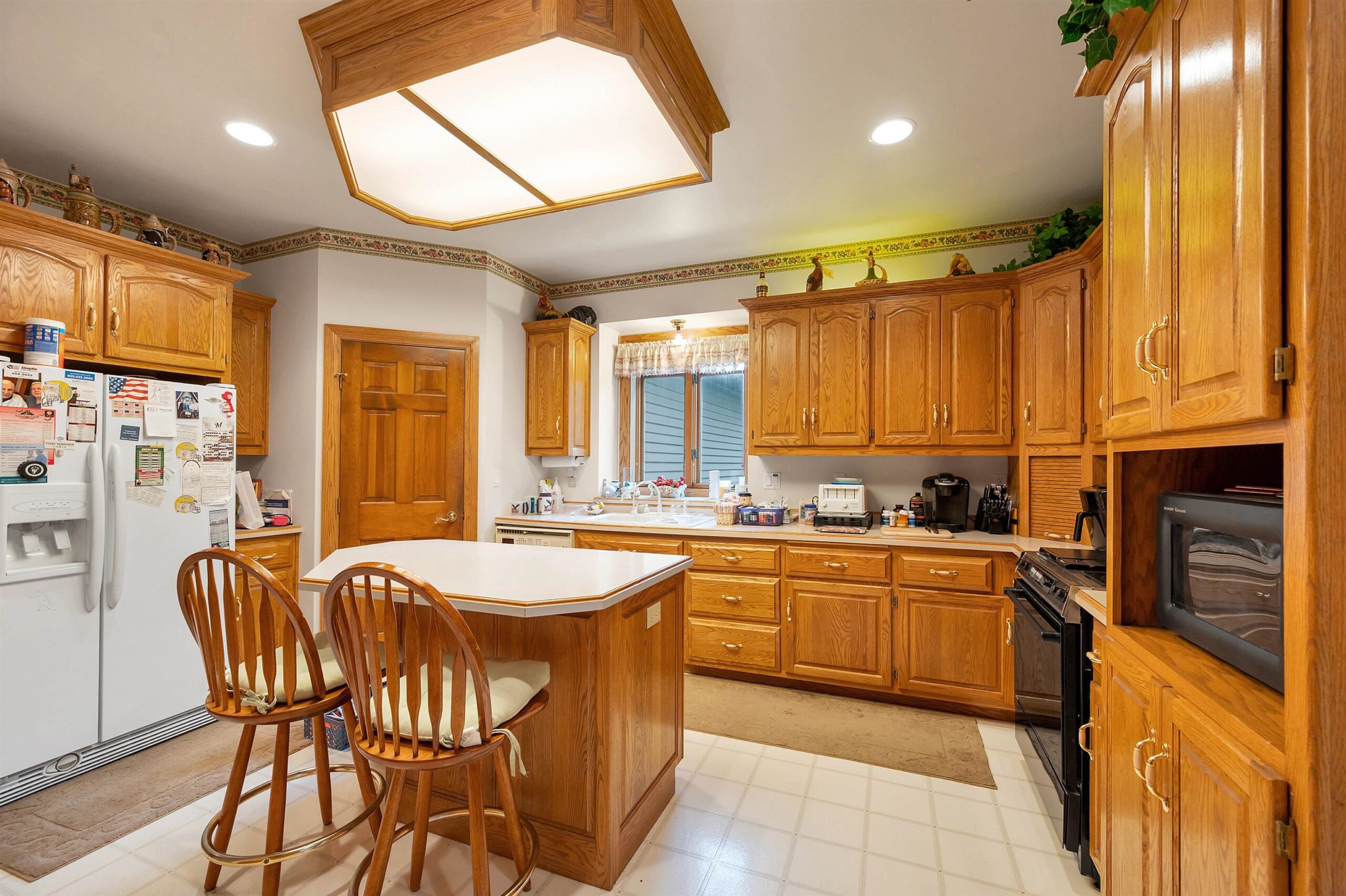 Kitchen refrigerator, range, dishwasher, mini cooler, washer/dryer, garage opener, window treatments