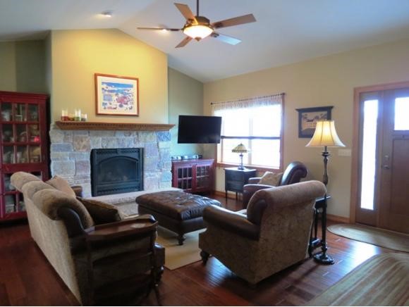 LOWER LEVEL = Stubbed For Bathroom. Here is the split bedroom ranch that you would love to build! It is all here: 3 bedrooms, 2 full baths, designer kitchen with stainless appliances and custom cabinets, loads of hardwood and tile flooring, walk-in closets, first floor laundry with appliances, central vac and amazing landscaping that includes a Trex deck and a stamped concrete patio! It is completed and move-in ready. Call today.