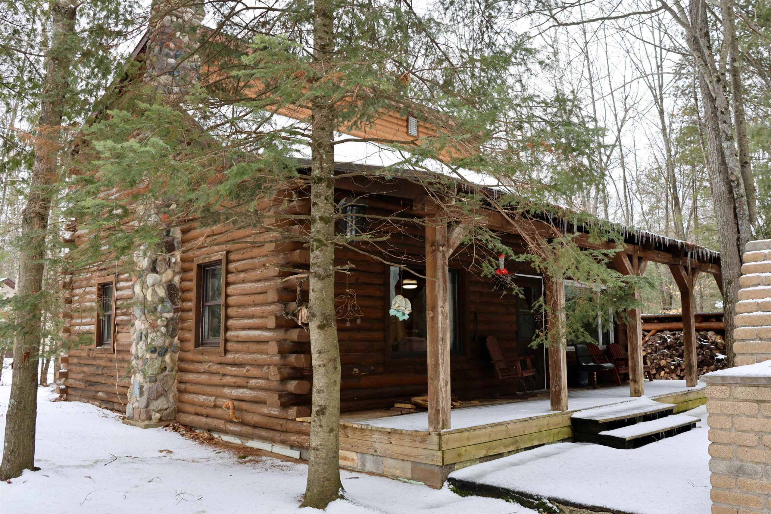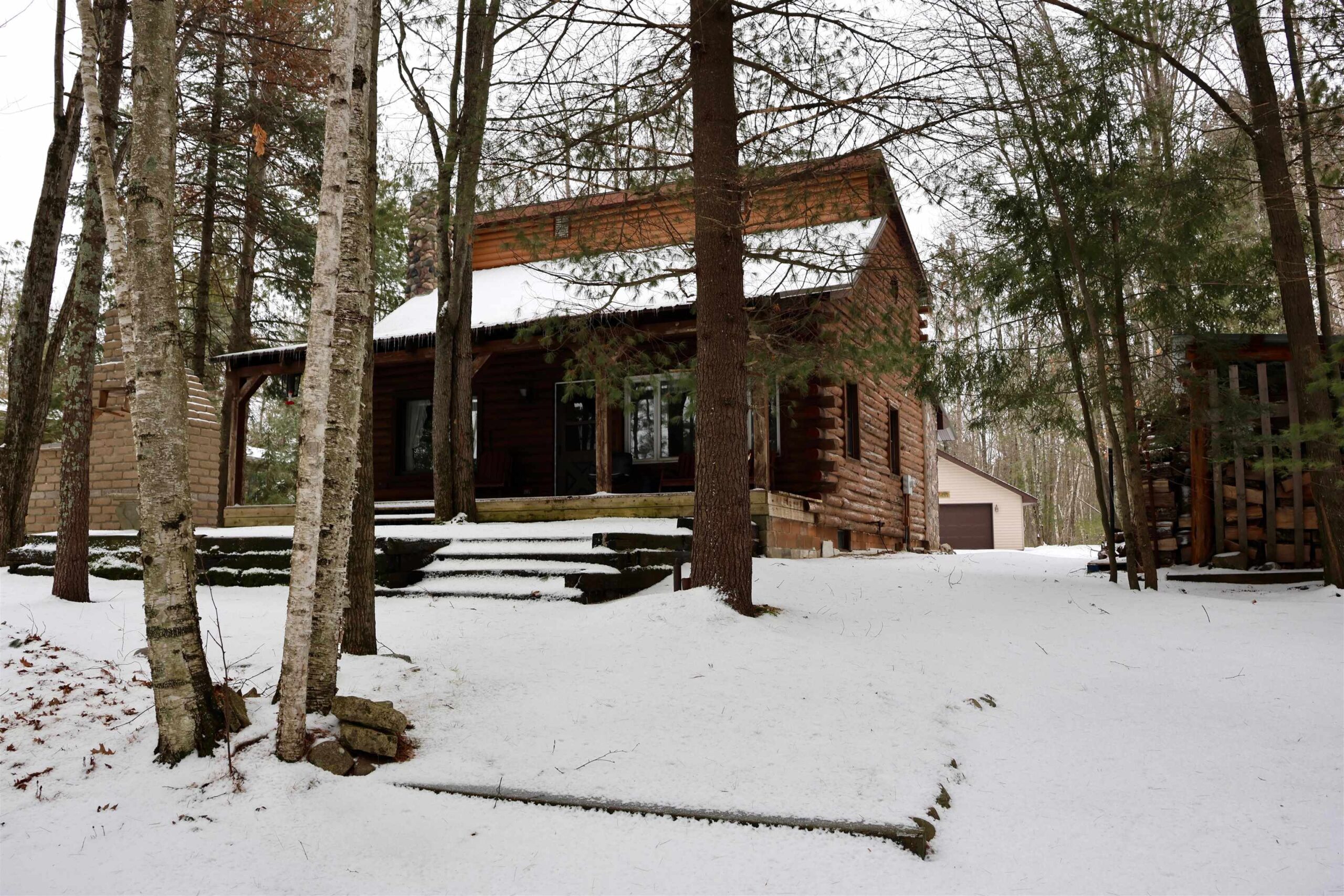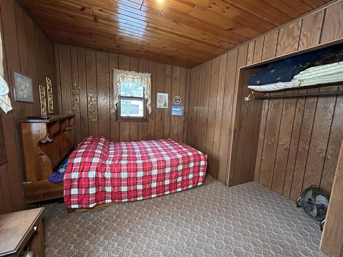 This charming 3 bedroom log home situated on a .75 acre lot on Sunrise Lake features an open-concept living space, full basement, free-standing fireplace and much more. Enjoy peaceful mornings on the covered porch overlooking the quiet, motorless lake and cozy evenings on the patio with the beautiful custom-built outdoor grill/fireplace/smoker. The property is located on a wooded cul-de-sac with over 110' of water frontage, a spacious 2+ stall detached garage, additional tool shed, and a full, unfinished basement just waiting for your finishing touches.