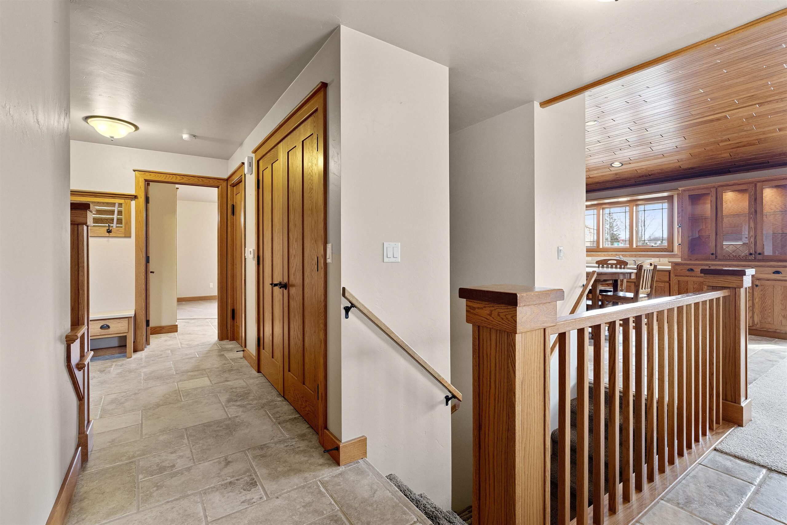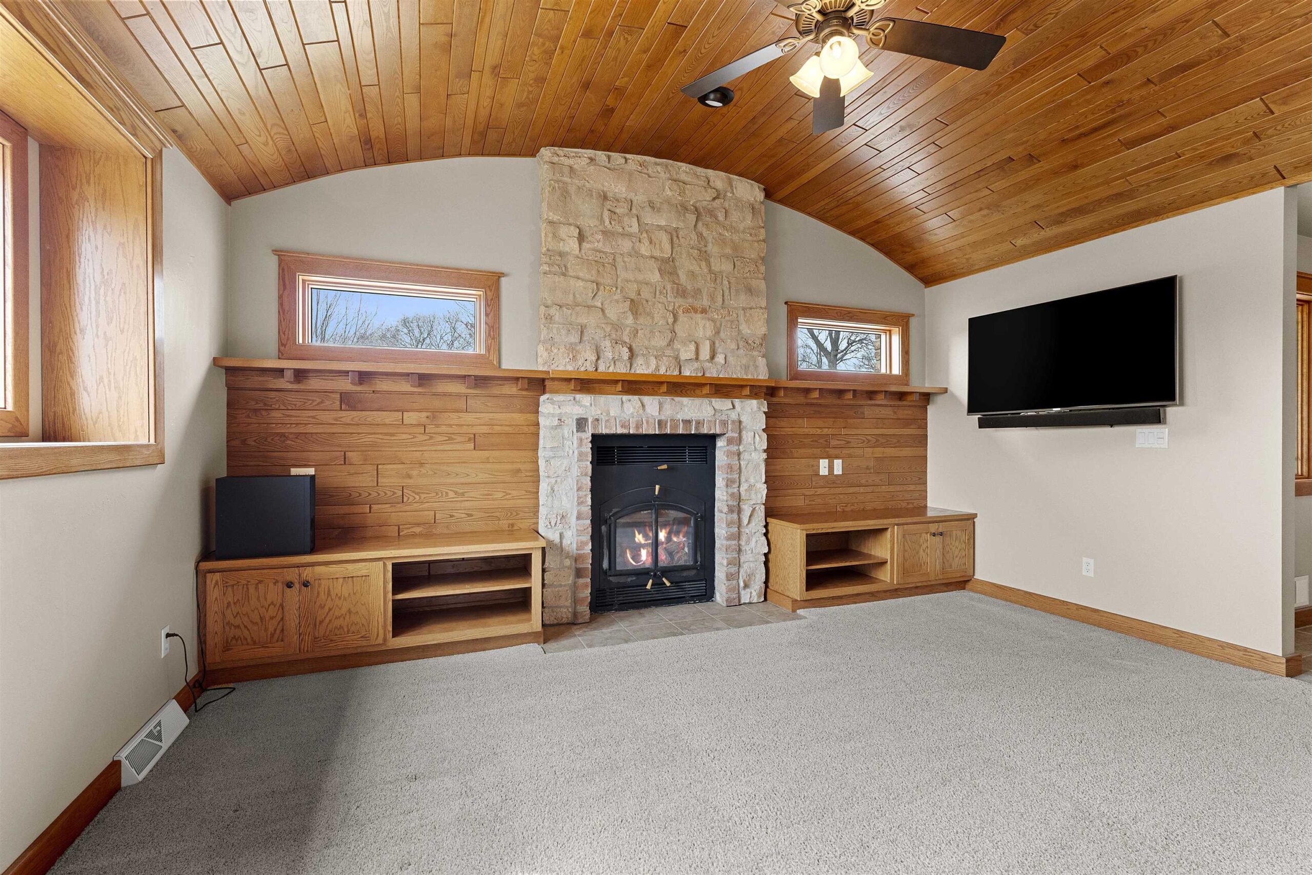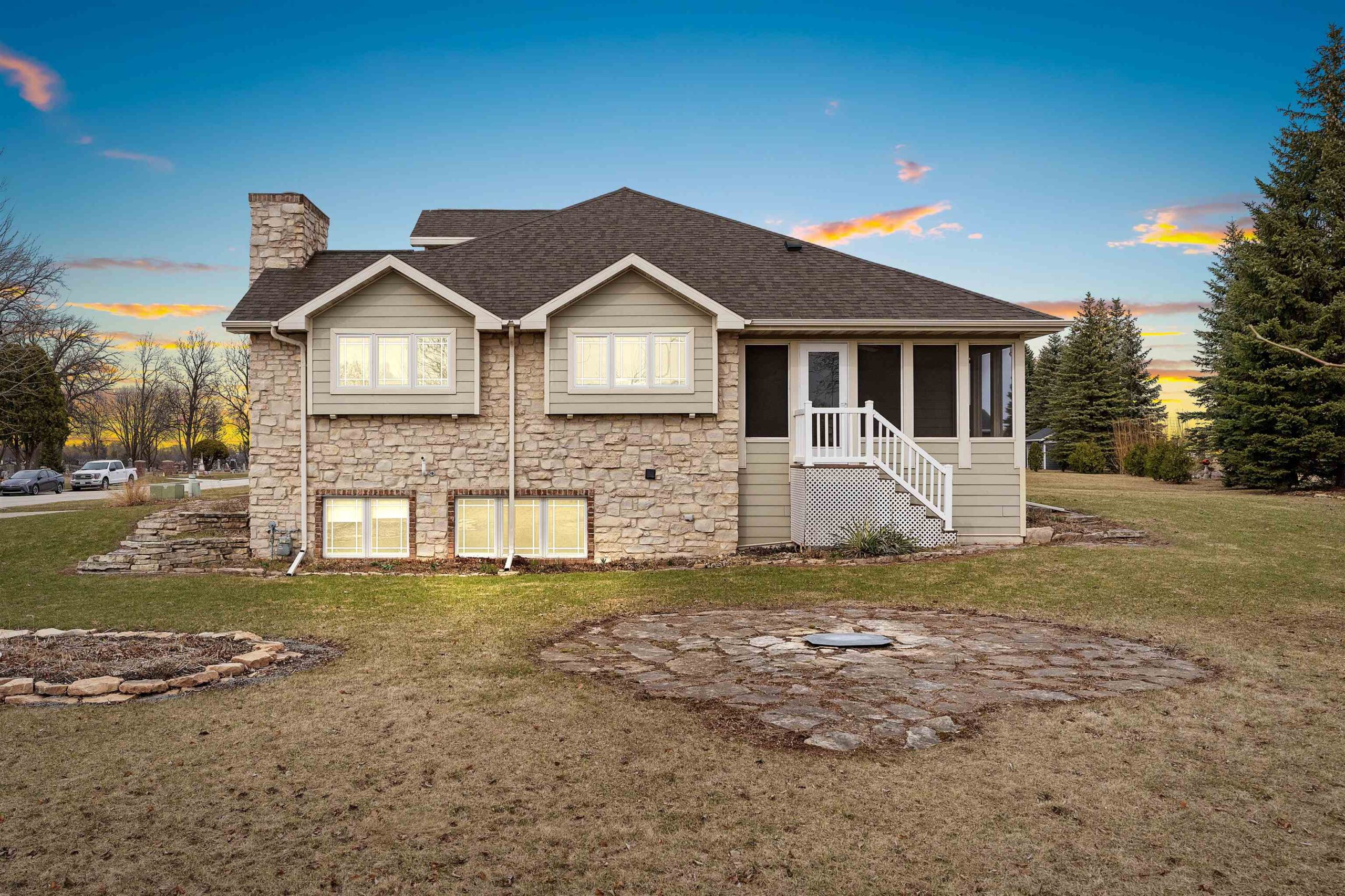 A blend of elegance and modern comfort. Stunning Craftsman style home, characterized by impeccable craftsmanship. Step into a welcoming space adorned with solid two-panel doors with mantle trim. The heart of the home is its open concept living room and kitchen area, boasting a magnificent barrel-vaulted white ash wood ceiling. This architectural masterpiece creates a warm and inviting atmosphere, perfect for both entertaining and everyday living. The first-floor primary suite, a private haven complete with a full bath and a spacious walk-in closet. Lower level is versatile space for guests .Relish the beauty of nature on the large screened in porch offering seemless transition between indoor and outdoor living. Located near Fox River trail, De Pere boat launch & parks.