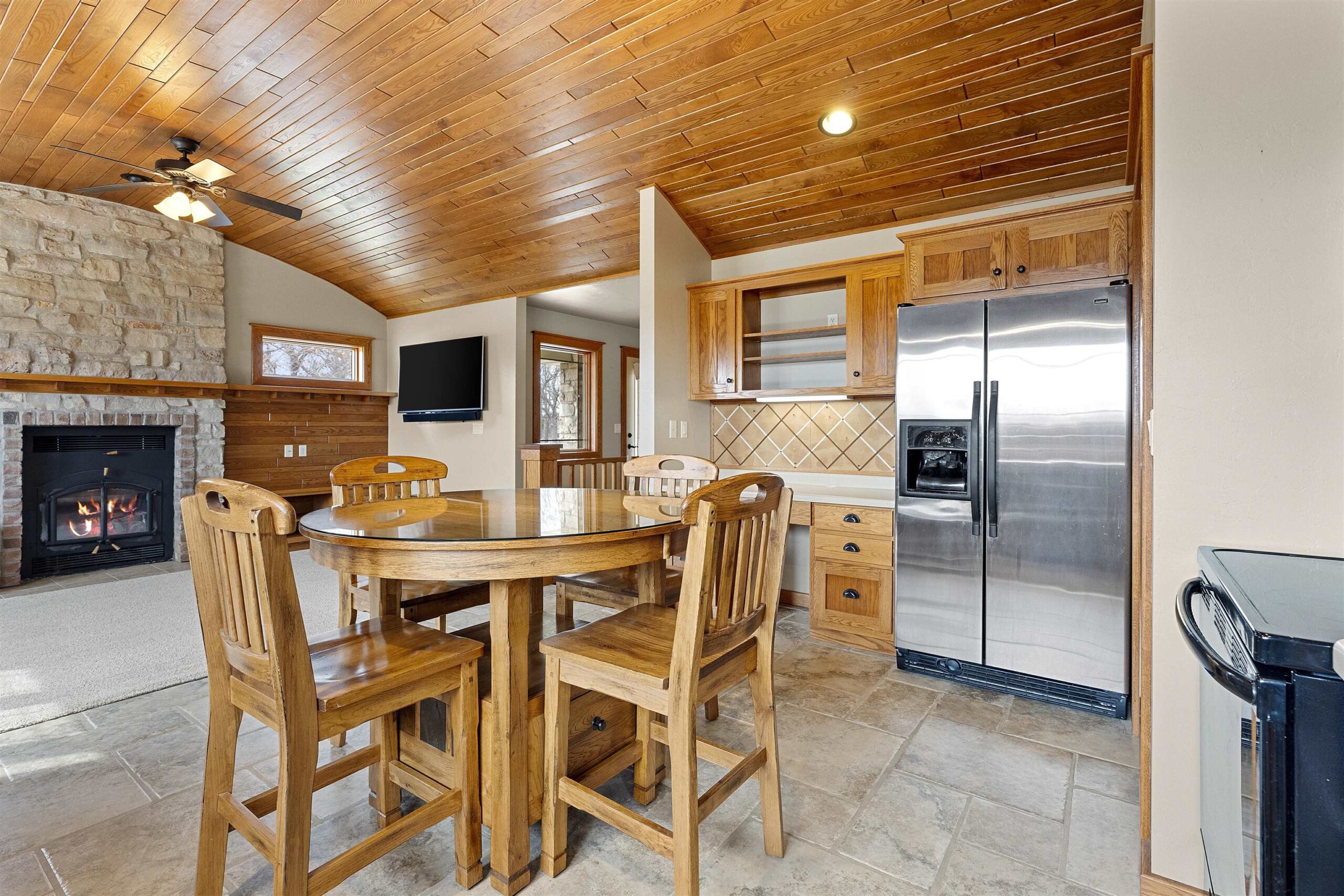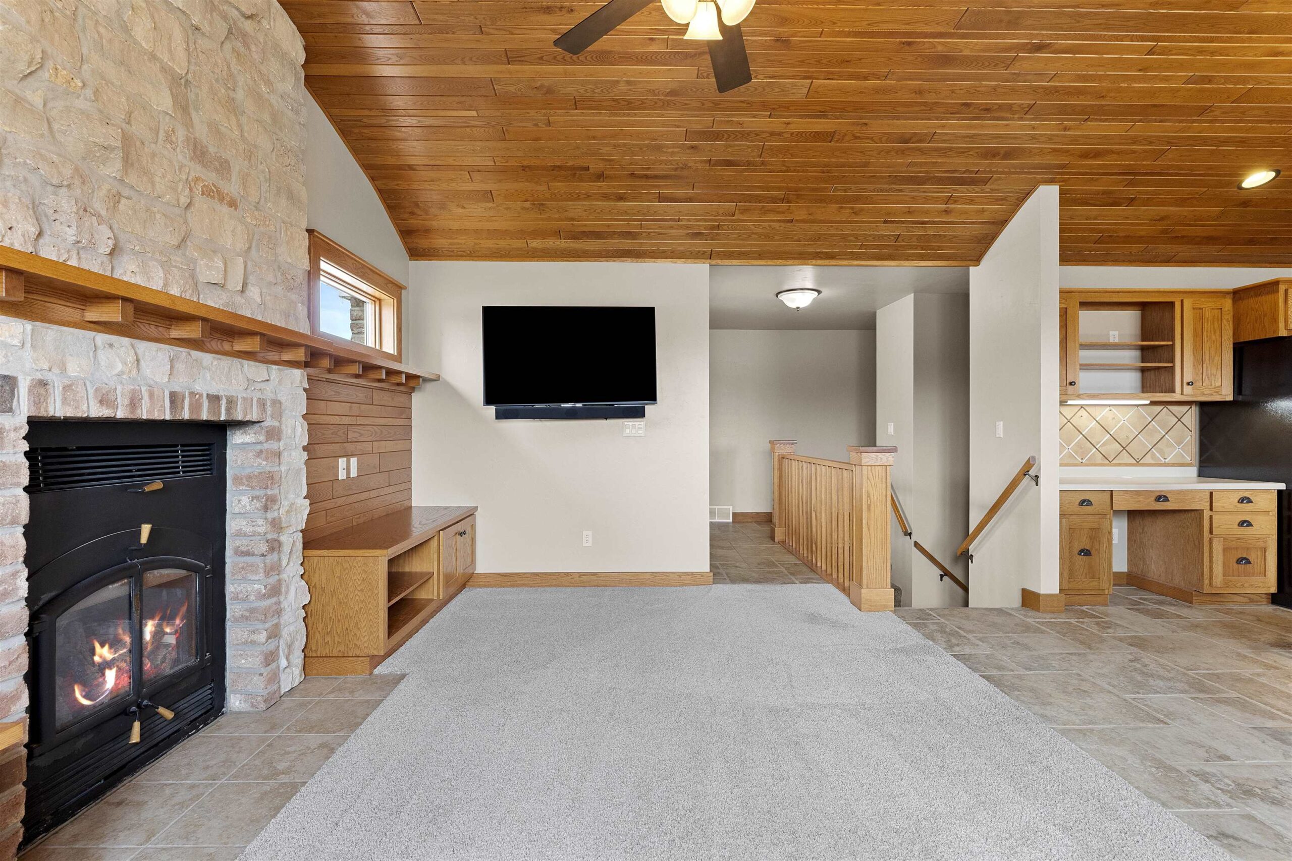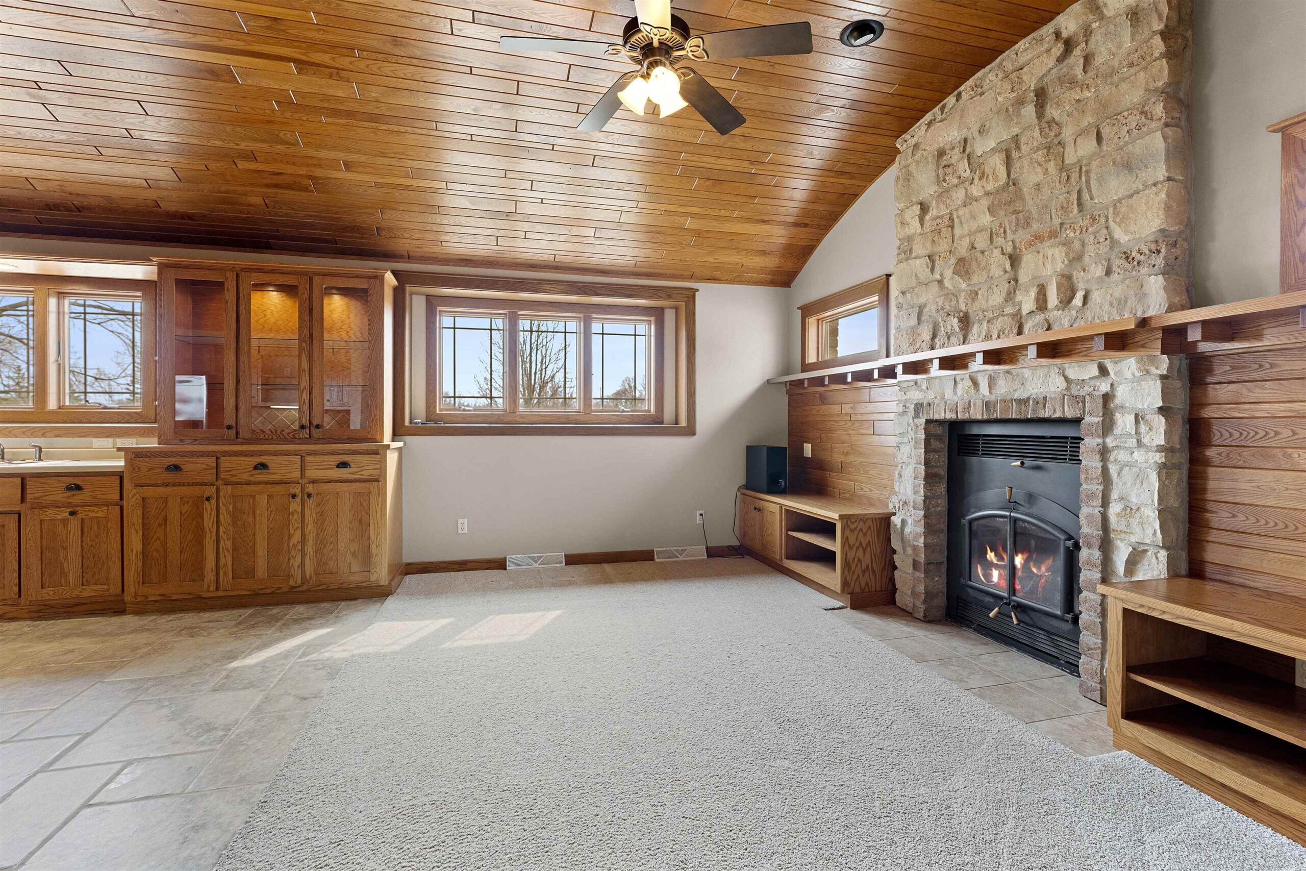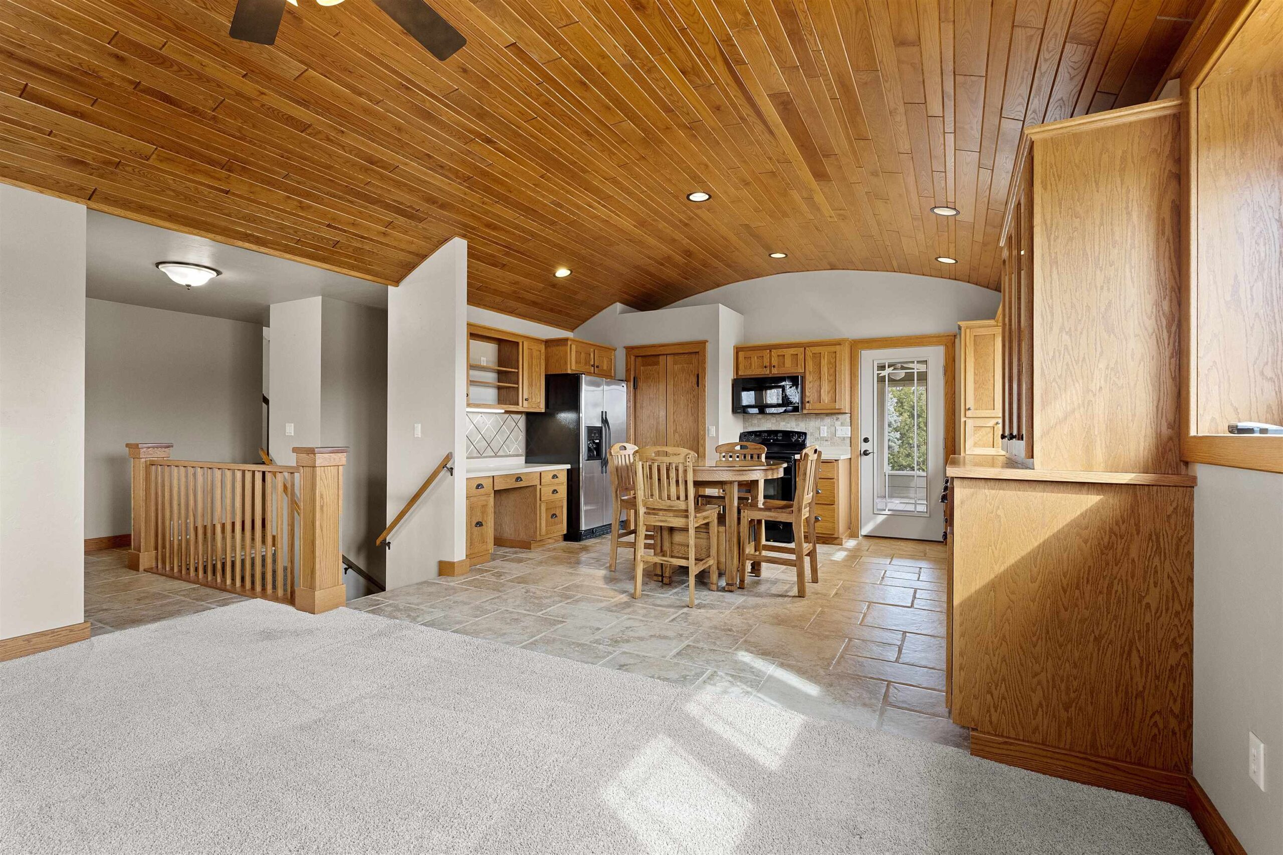 A blend of elegance and modern comfort. Stunning Craftsman style home, characterized by impeccable craftsmanship. Step into a welcoming space adorned with solid two-panel doors with mantle trim. The heart of the home is its open concept living room and kitchen area, boasting a magnificent barrel-vaulted white ash wood ceiling. This architectural masterpiece creates a warm and inviting atmosphere, perfect for both entertaining and everyday living. The first-floor primary suite, a private haven complete with a full bath and a spacious walk-in closet. Lower level is versatile space for guests .Relish the beauty of nature on the large screened in porch offering seemless transition between indoor and outdoor living. Located near Fox River trail, De Pere boat launch & parks.