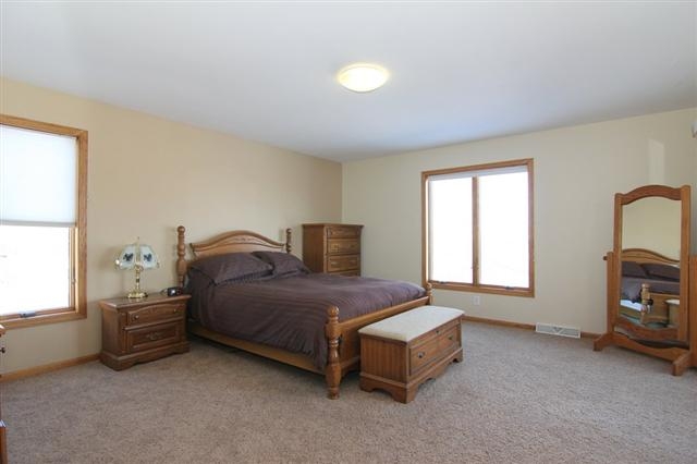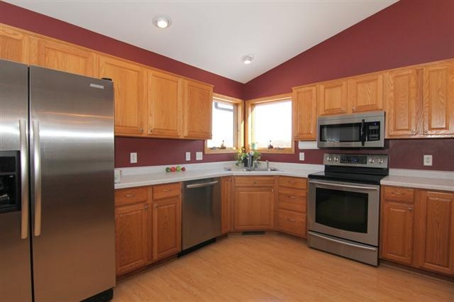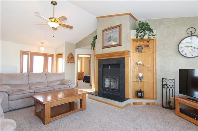 Visit this immaculate 4 bedroom home now; it's in an excellent neighborhood close to schools and parks. This home has an open floor plan, spacious bedrooms; the master suite has a full bath and large walk in closet. A large deck with beautiful green space and lake views. New appliances and carpeting. High efficient fireplace can heat the home and a 3 car garage. In addition, a huge walk out lower level rec room with a bar, fireplace and patio. Home Warranty included!