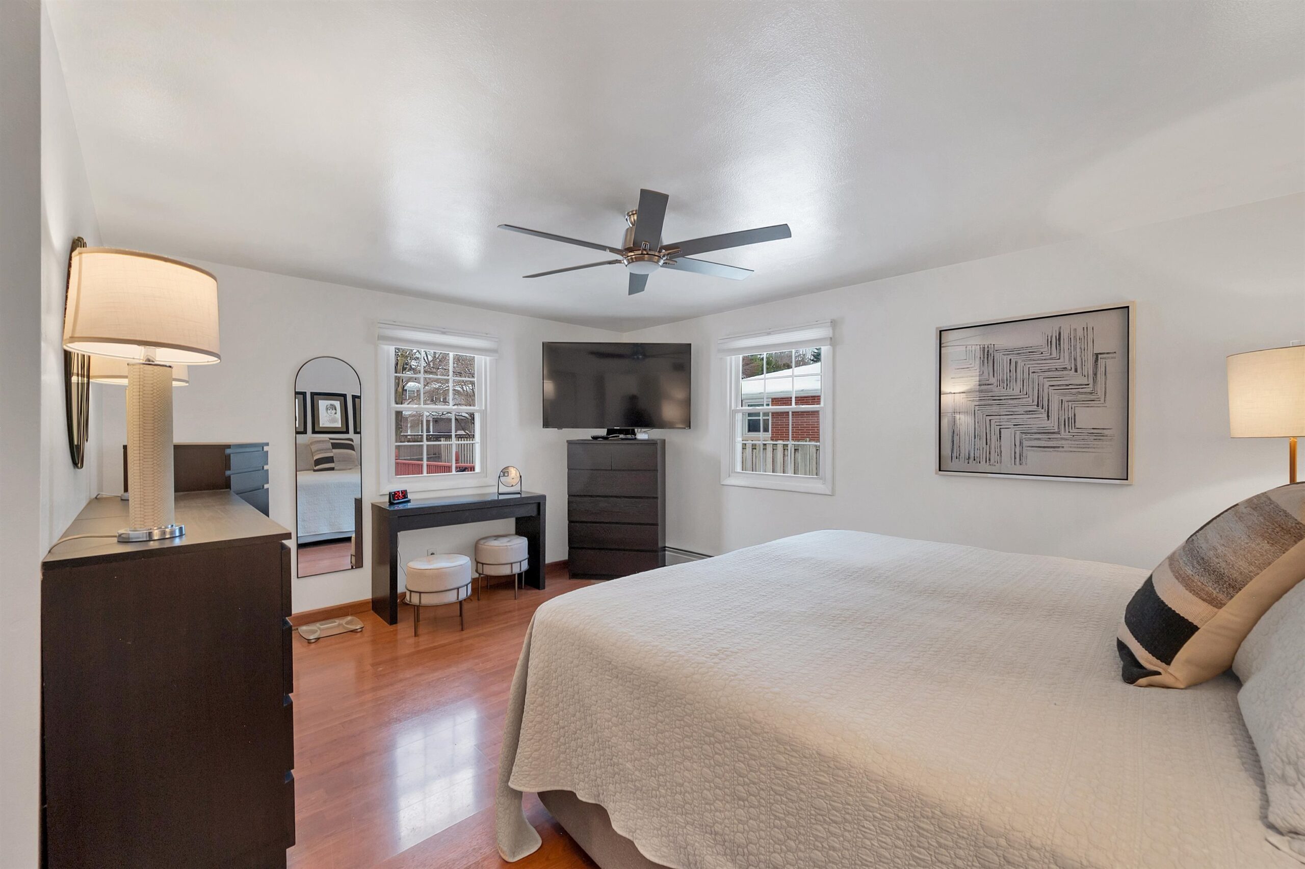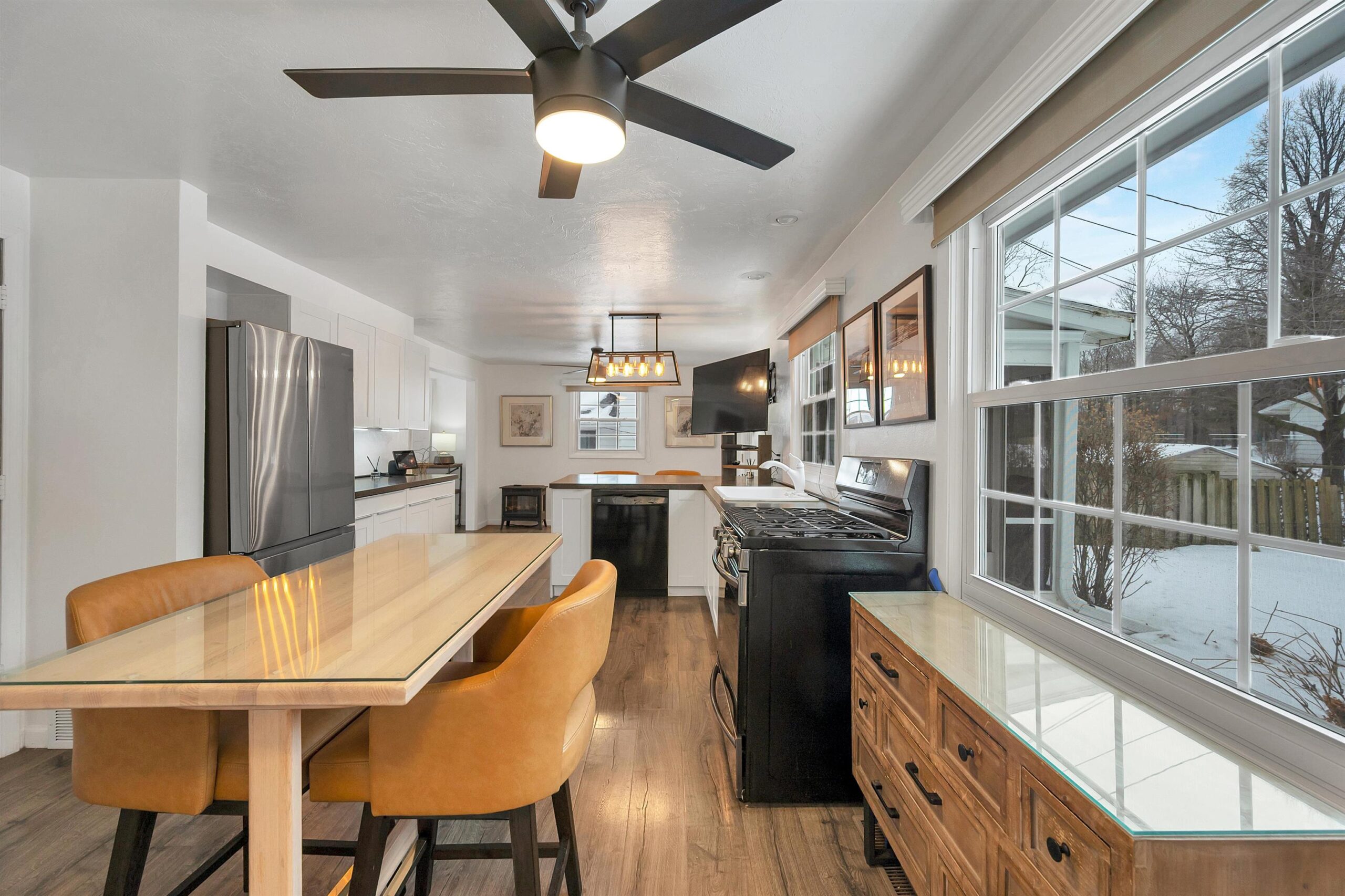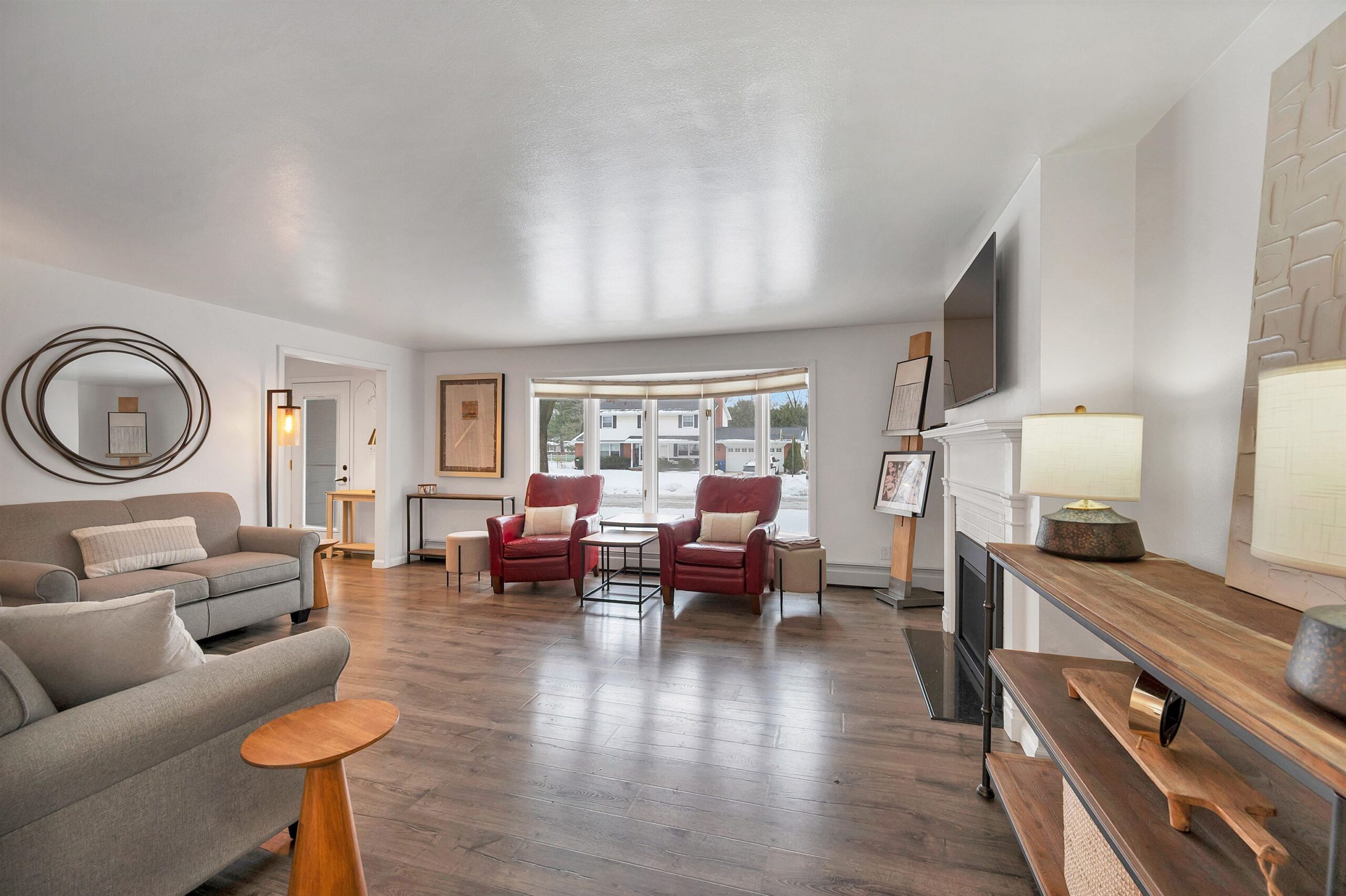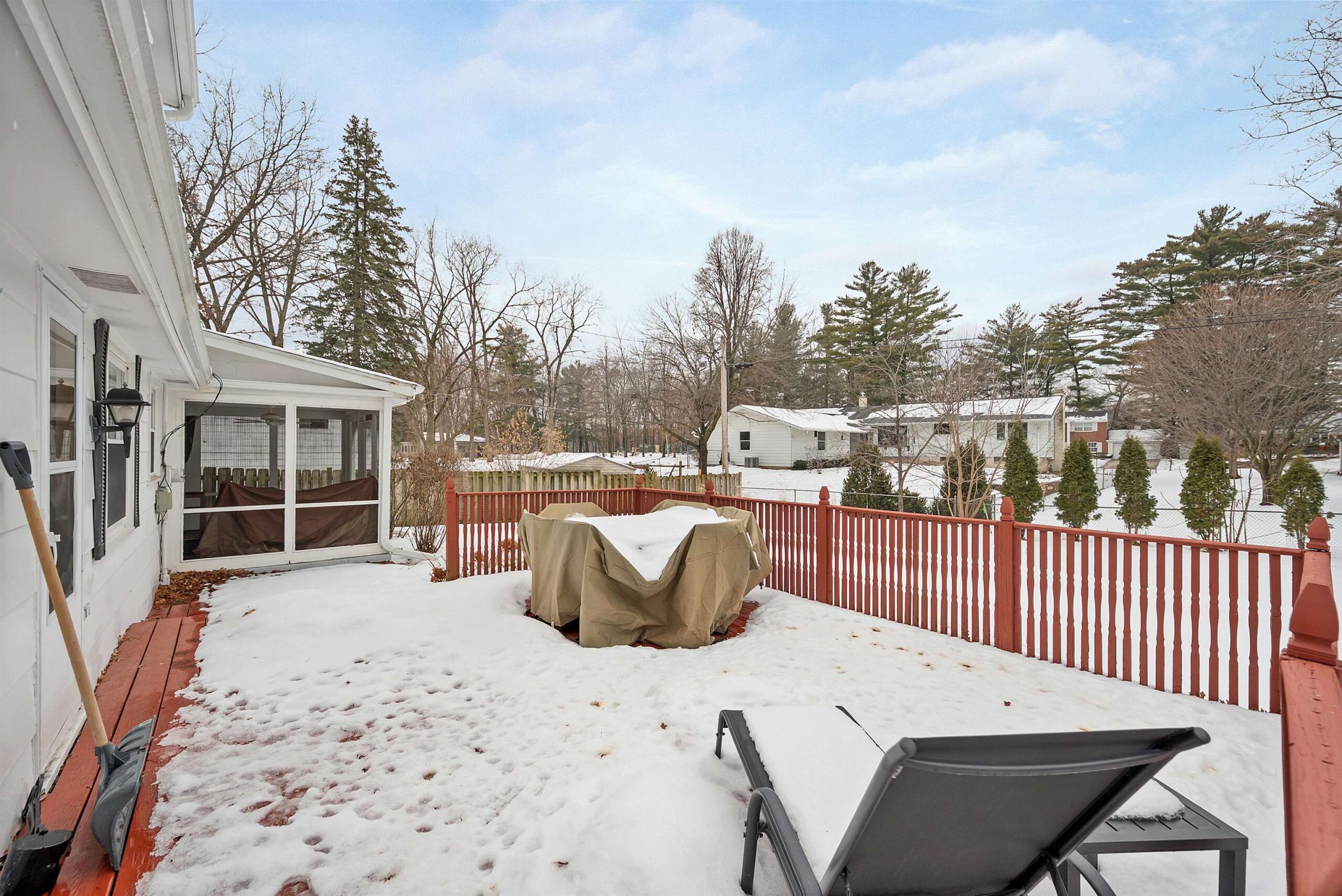 Located on a quiet cul-de-sac near John Muir Park, this beautifully crafted home features a thoughtfully designed main level with a warm and welcoming living room with gas fireplace, a screened-in porch, a well-appointed kitchen with plenty of cabinet space, and a spacious primary bedroom, large laundry/mudroom, and a full bath. The upper level offers two additional bedrooms & a full bath. The finished lower level with wood burning fp adds extra flexibility for recreation, work or hobbies. This meticulously maintained home boasts numerous updates including modern lighting, an updated gas fireplace and durable laminate flooring throughout. Step outside to a beautifully landscaped, fully fenced, backyard oasis featuring a stunning two level 20X16 deck.