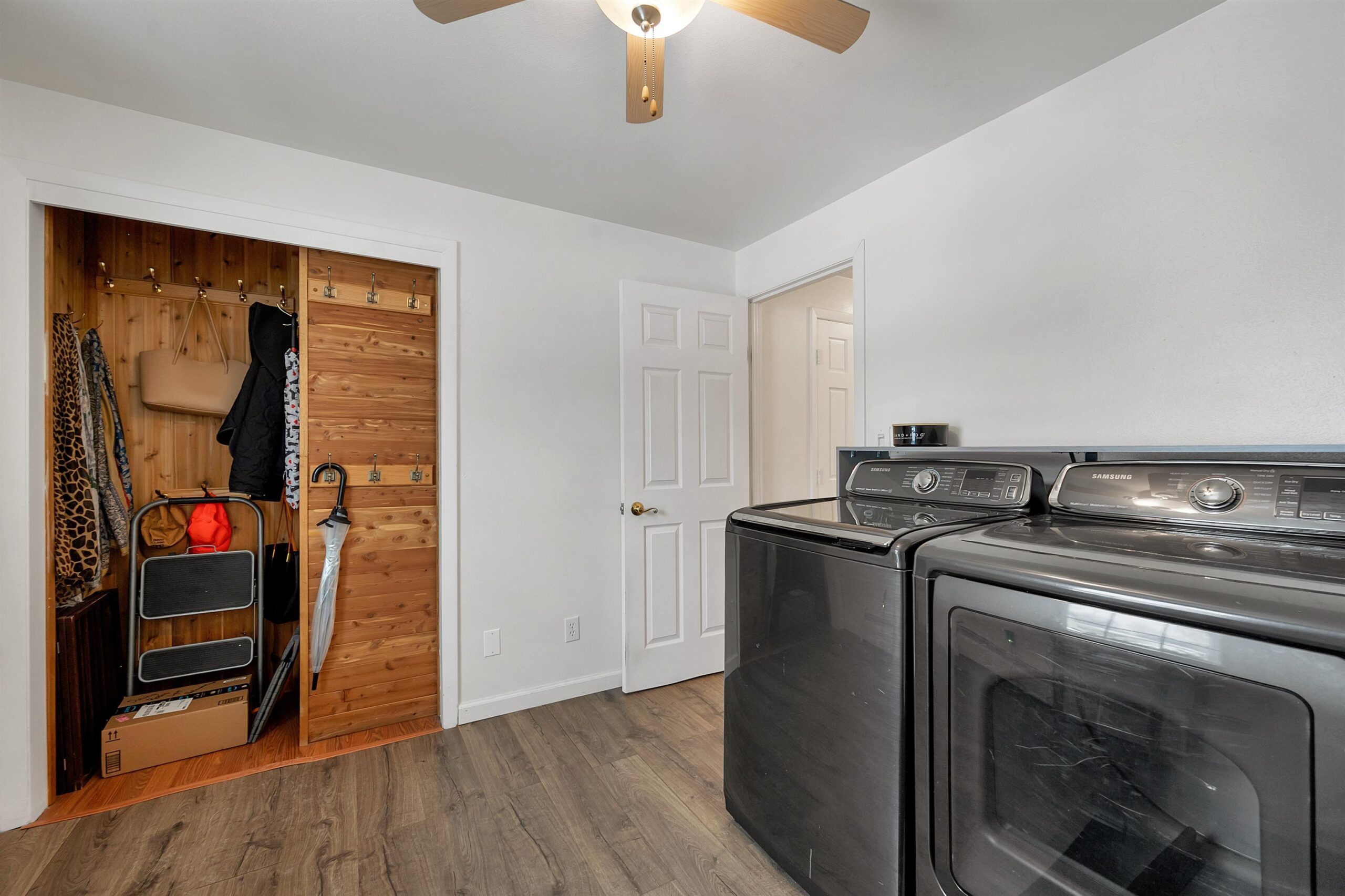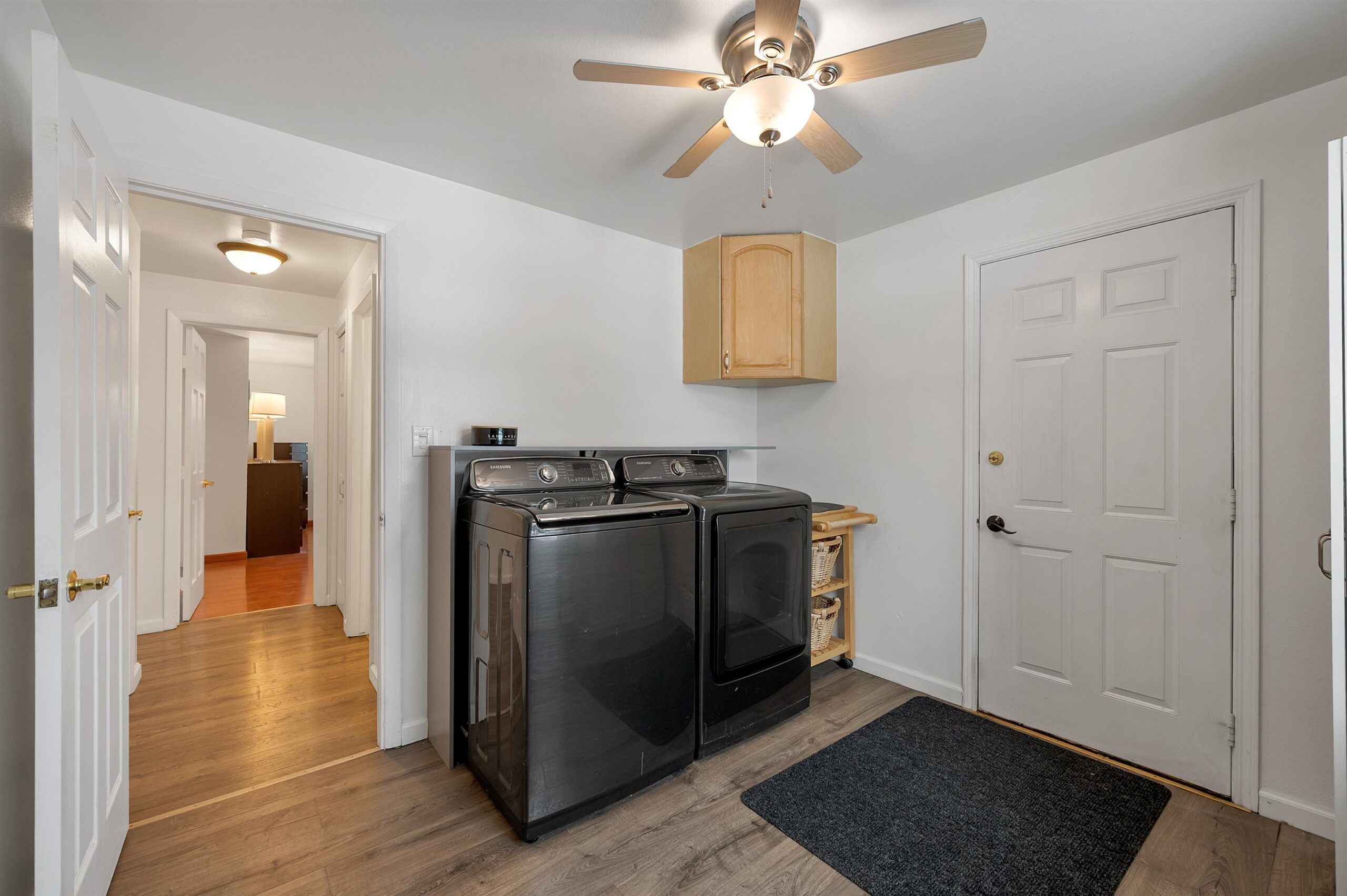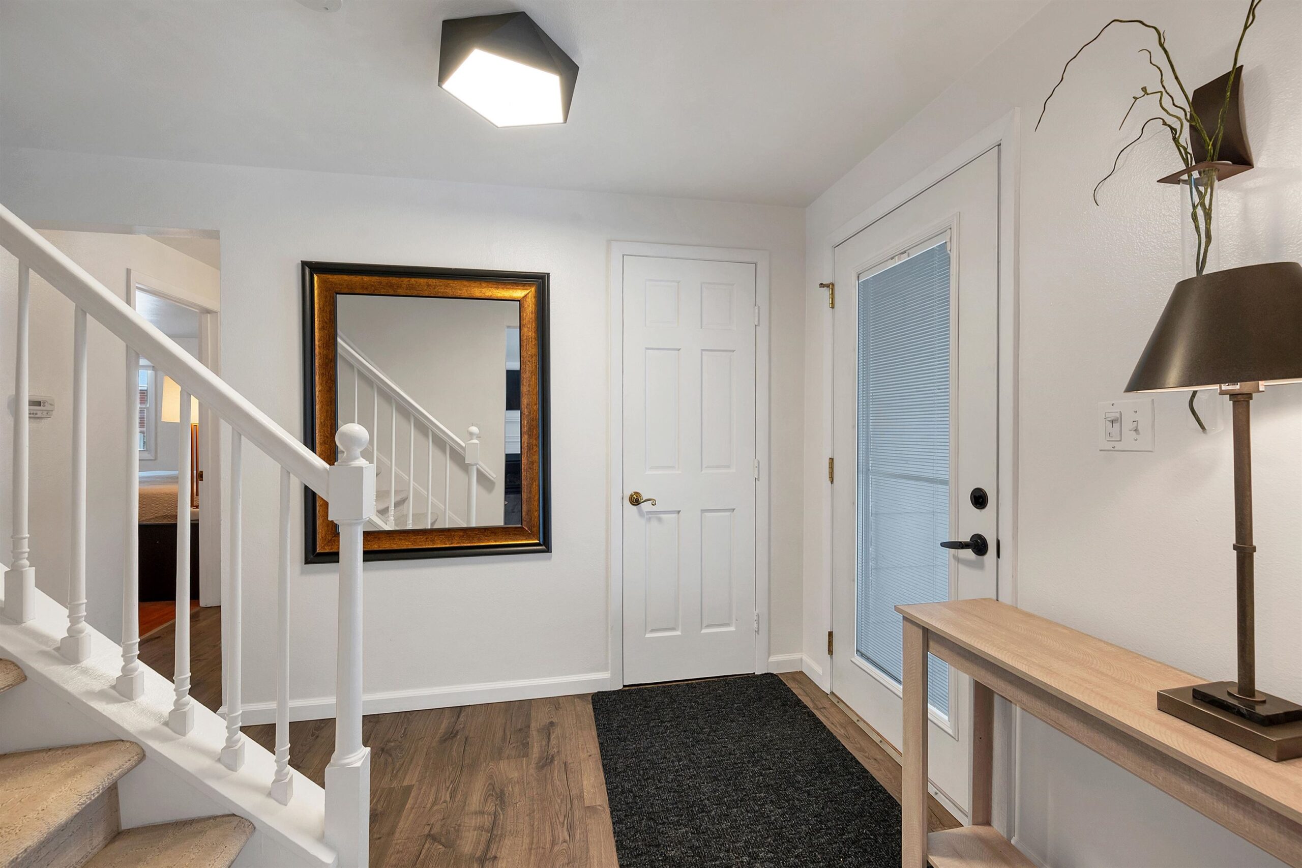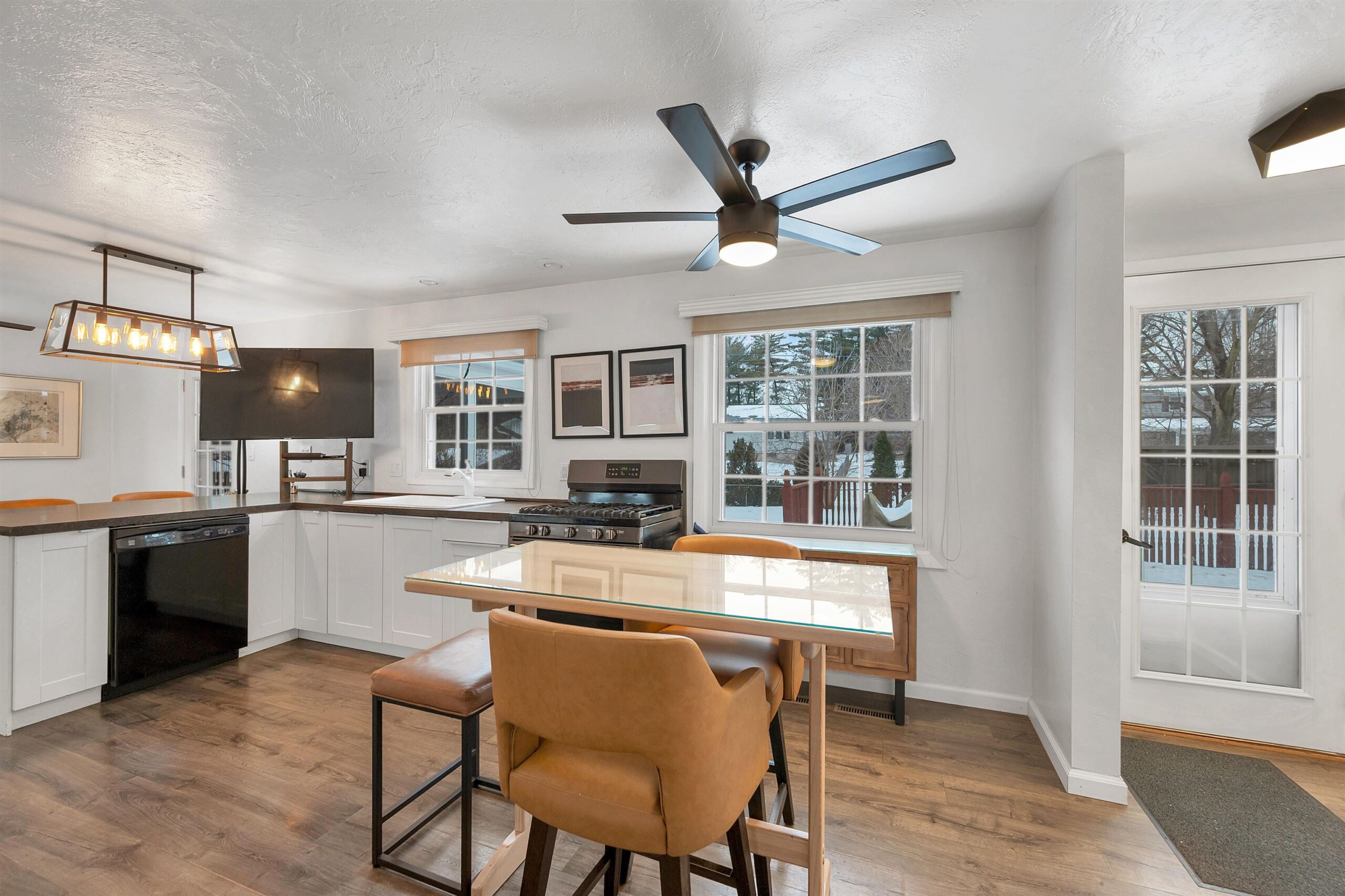 Located on a quiet cul-de-sac near John Muir Park, this beautifully crafted home features a thoughtfully designed main level with a warm and welcoming living room with gas fireplace, a screened-in porch, a well-appointed kitchen with plenty of cabinet space, and a spacious primary bedroom, large laundry/mudroom, and a full bath. The upper level offers two additional bedrooms & a full bath. The finished lower level with wood burning fp adds extra flexibility for recreation, work or hobbies. This meticulously maintained home boasts numerous updates including modern lighting, an updated gas fireplace and durable laminate flooring throughout. Step outside to a beautifully landscaped, fully fenced, backyard oasis featuring a stunning two level 20X16 deck.