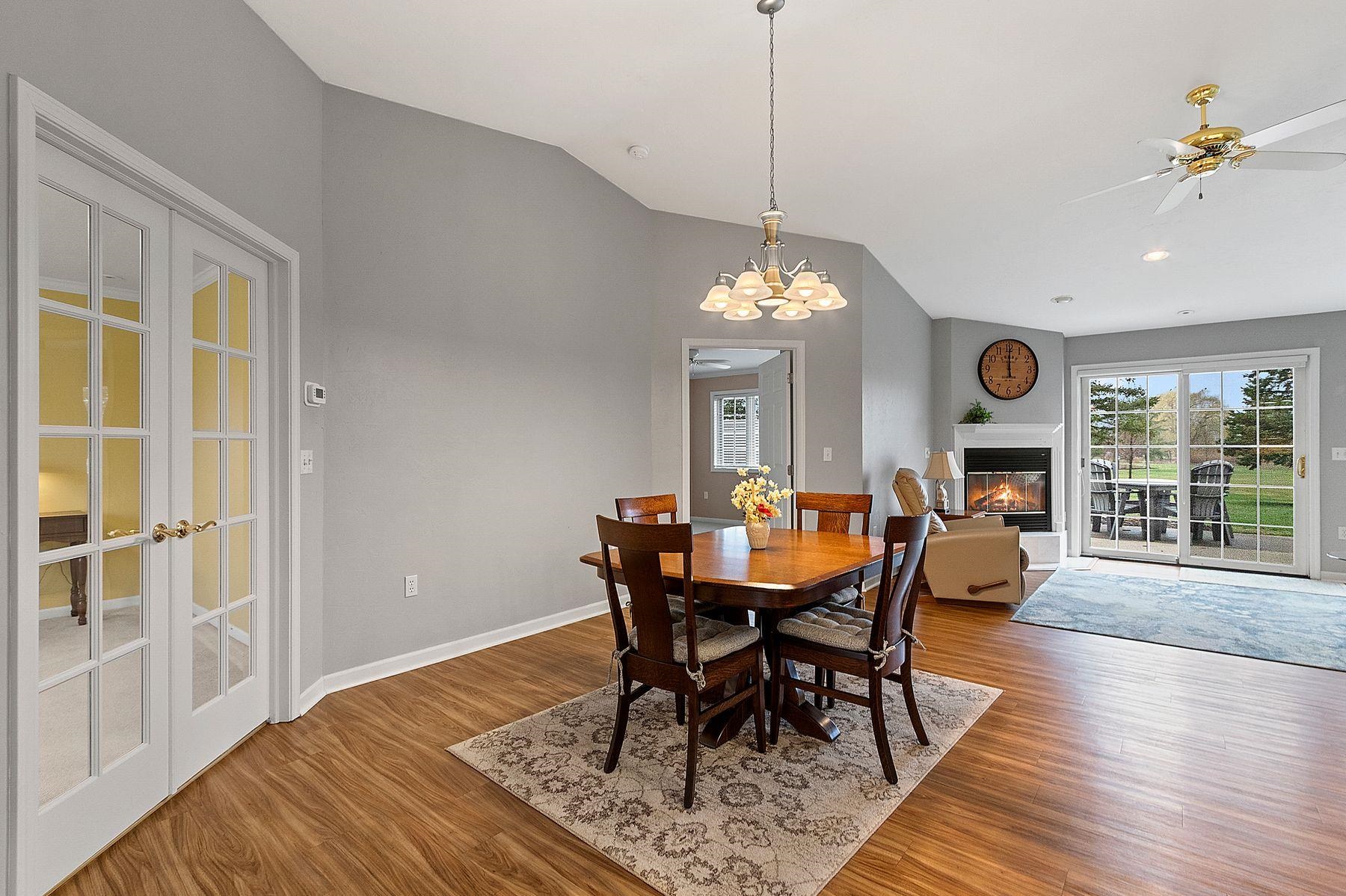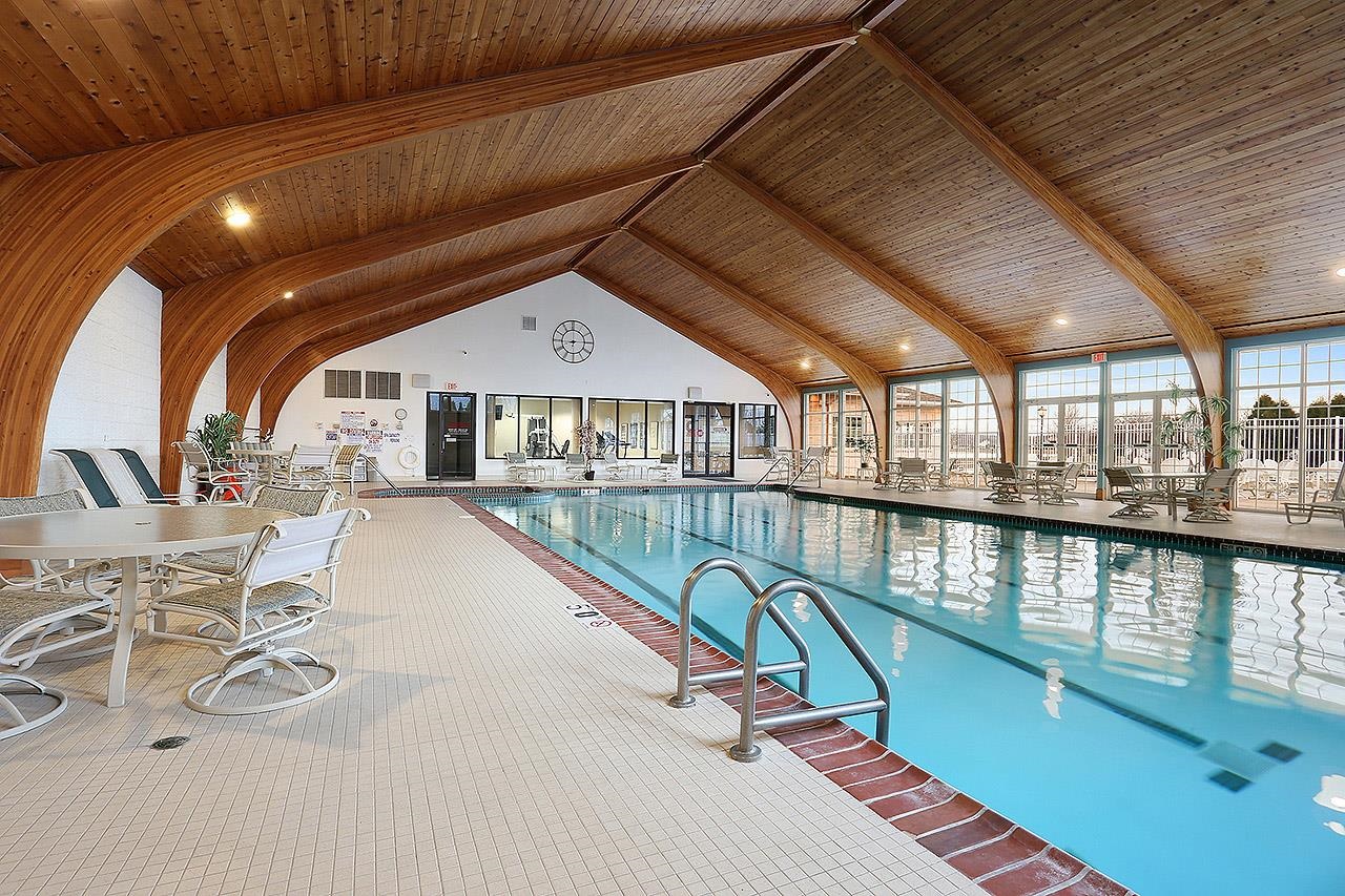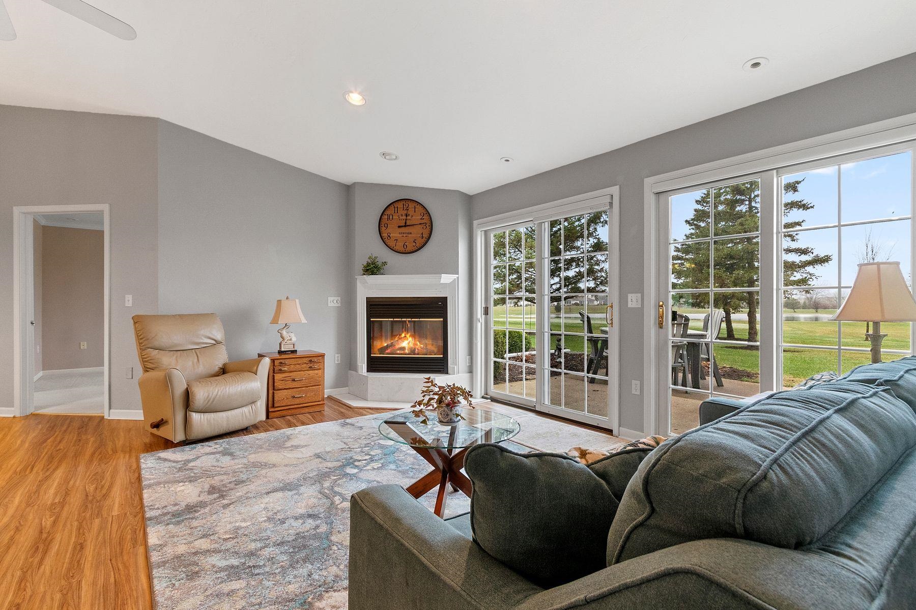 Discover the ultimate golf course lifestyle in this stunning, move-in-ready condo at River Pines. Perfectly situated overlooking Little Lost Ball Lake and the 17th hole of the private course, this spacious 1,705 sq ft home features 2 bedrooms, 2 baths, and a versatile dedicated den. Enjoy beautiful unobstructive sunsets and often see deer and other wildlife! Living here grants you access to an incredible suite of amenities: 18 holes of private golf on this credited golf course, pickleball, tennis and basketball courts, an indoor pool, a whirlpool spa, and a fitness center. The community also offers a community room with a full kitchen, fish-stocked lakes, and adjacent walking trails. Enjoy luxury and leisure in one perfect location! New furnace, A/C and walk in shower!