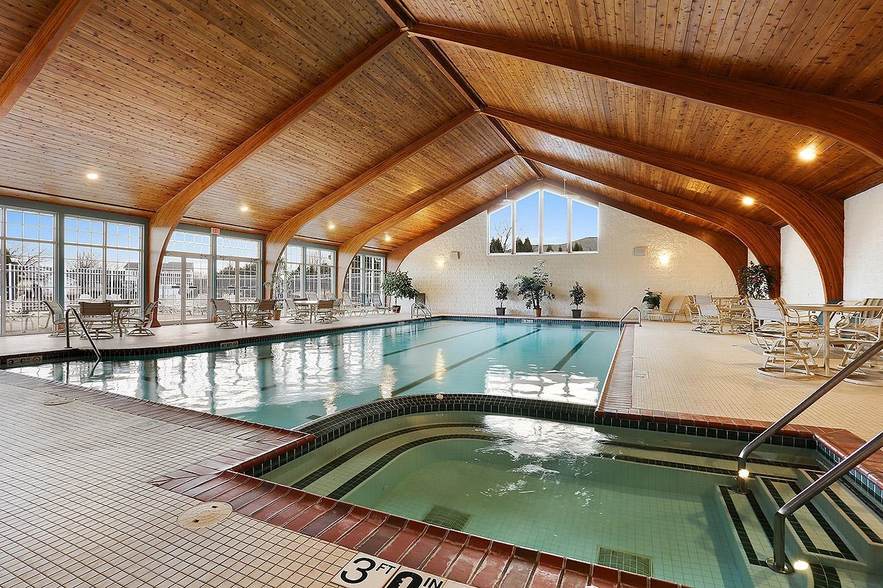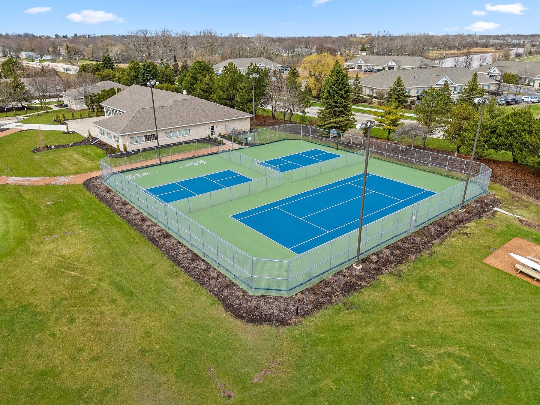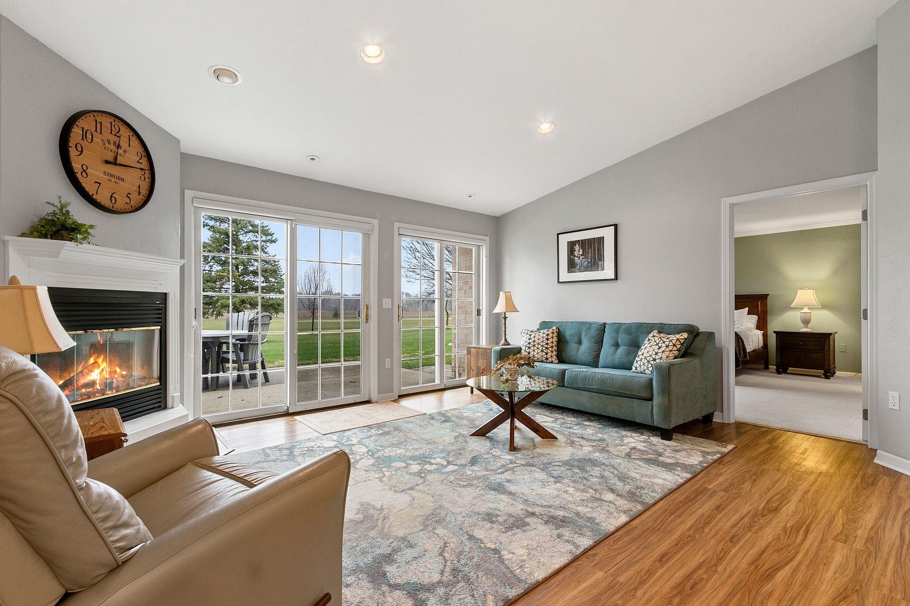 Discover the ultimate golf course lifestyle in this stunning, move-in-ready condo at River Pines. Perfectly situated overlooking Little Lost Ball Lake and the 17th hole of the private course, this spacious 1,705 sq ft home features 2 bedrooms, 2 baths, and a versatile dedicated den. Enjoy beautiful unobstructive sunsets and often see deer and other wildlife! Living here grants you access to an incredible suite of amenities: 18 holes of private golf on this credited golf course, pickleball, tennis and basketball courts, an indoor pool, a whirlpool spa, and a fitness center. The community also offers a community room with a full kitchen, fish-stocked lakes, and adjacent walking trails. Enjoy luxury and leisure in one perfect location! New furnace, A/C and walk in shower!