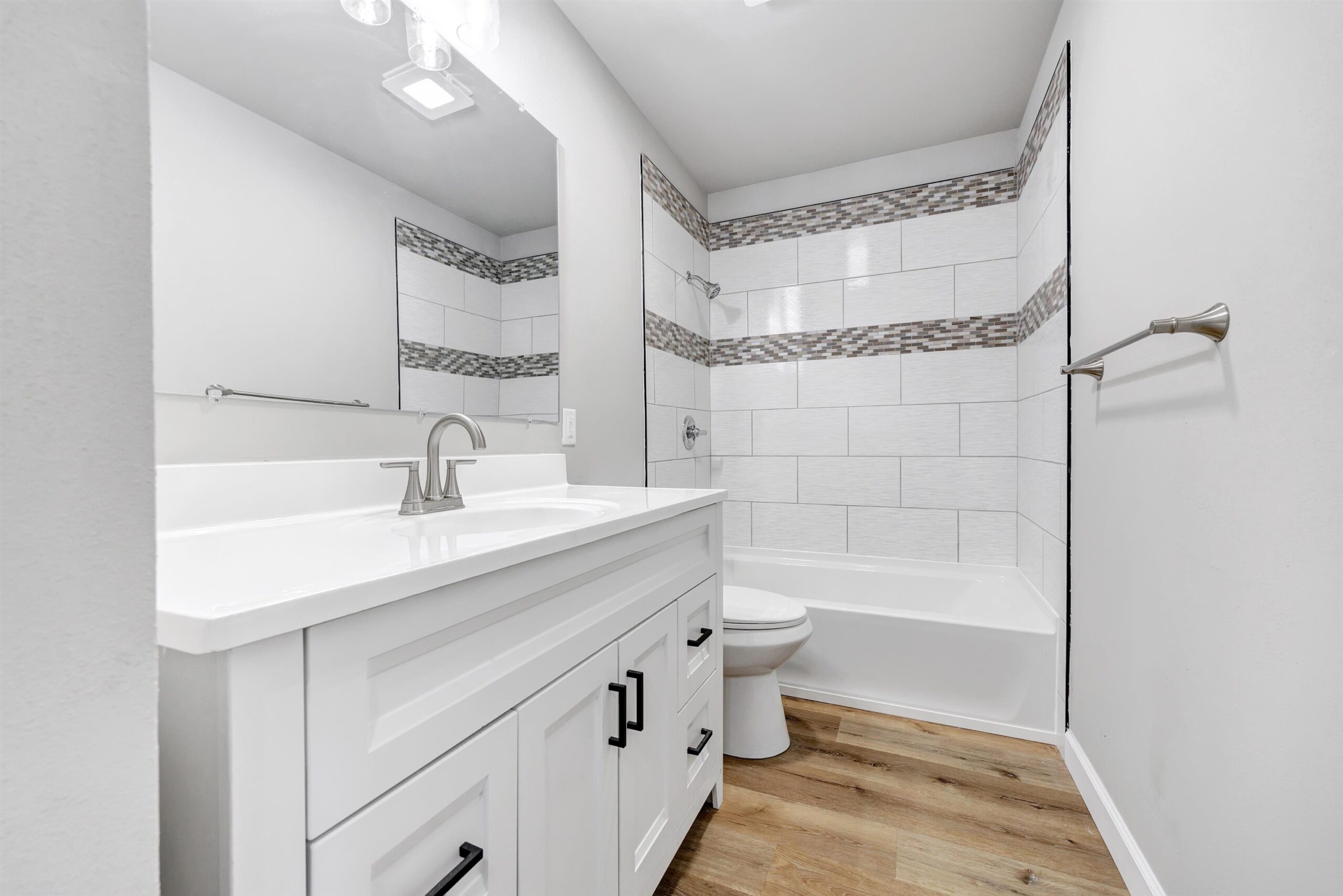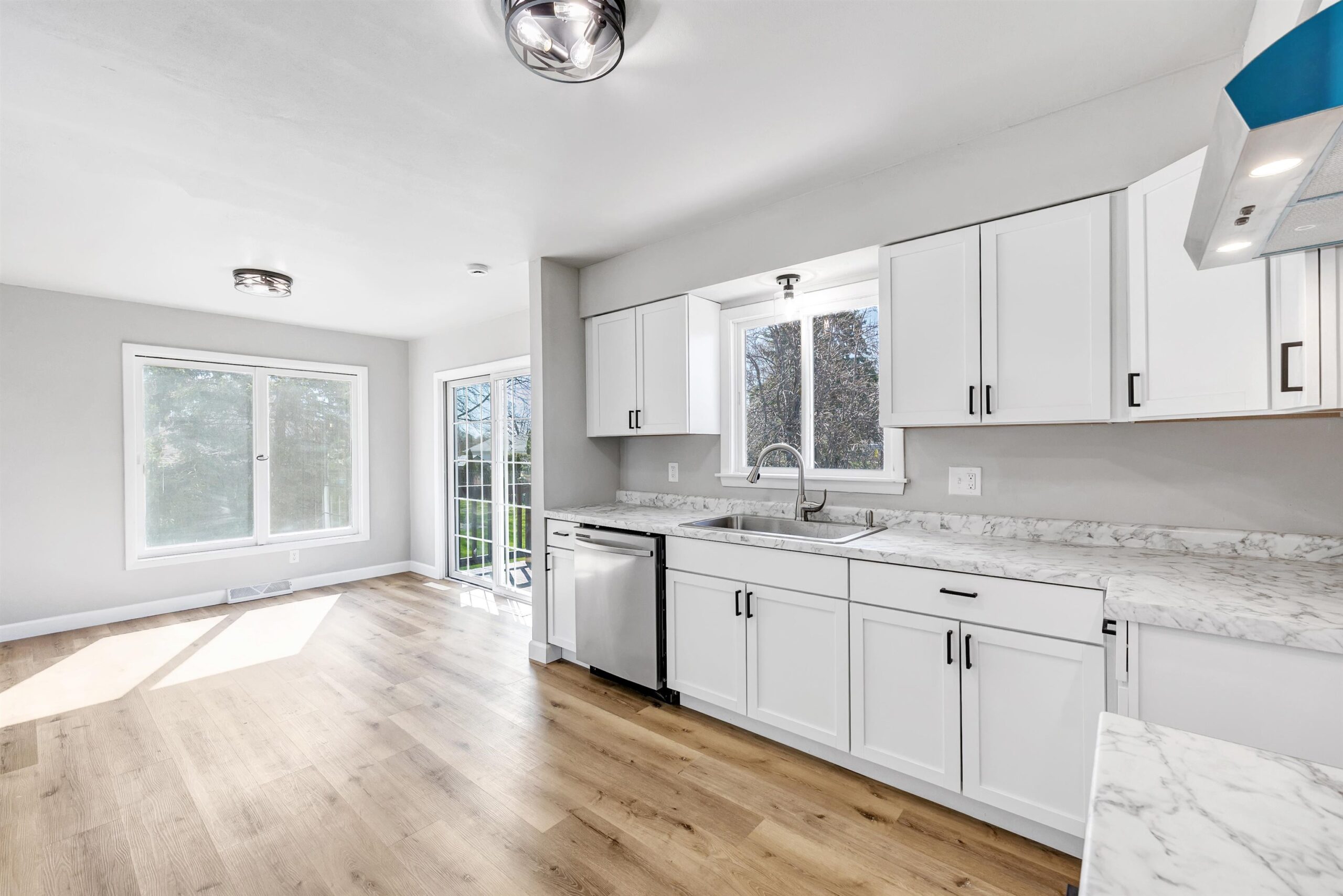 Welcome home to this beautifully remodeled 4-bed, 2-bath property in Oshkosh! This move-in-ready home features fresh updates throughout, including brand new luxury vinyl plank flooring, plush carpet, modern light fixtures, and fresh paint that gives the entire space a bright, inviting feel. The fully updated kitchen offers a clean, modern design perfect for everyday living and entertaining, while the renovated bathroom boasts a stylish tile shower for a touch of luxury. A patio door leads you to a deck overlooking a peaceful backyard—ideal for relaxing or hosting. With four spacious bedrooms, there’s plenty of room to spread out, and the attached 1.5-stall garage adds convenience and extra storage. This home combines comfort, style, and functionality! Some photos are virtually staged.