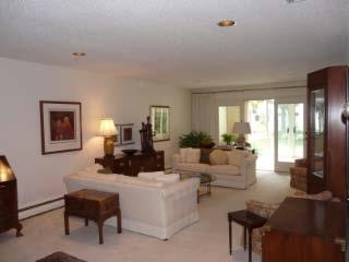 Desirable 1st floor end unit. 1967 sq ft (includes 2 heated sunrooms). Close to swimming pool and with easy access to parking lot. Convenient for guests and unloading items. Neutral colors throughout. Newer stainless steel appliances in kitchen with wood laminate floor and french doors to sunroom. Under cabinet lighting also included. Sizeable storage area with generous built-in shelving. 2 heated parking spaces. Condo fee includes $20 discount for auto pay. Heat, hot water & water also included.