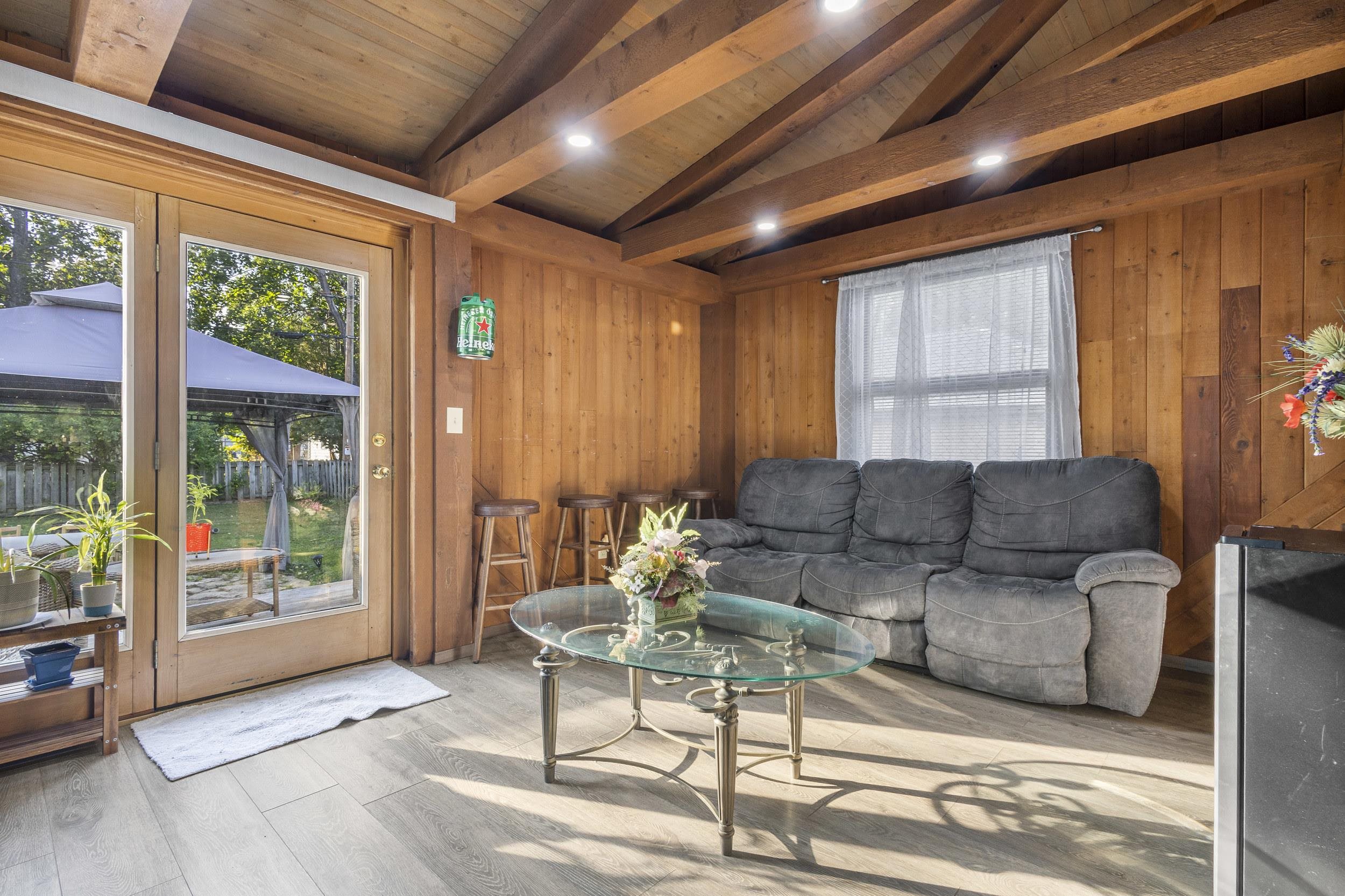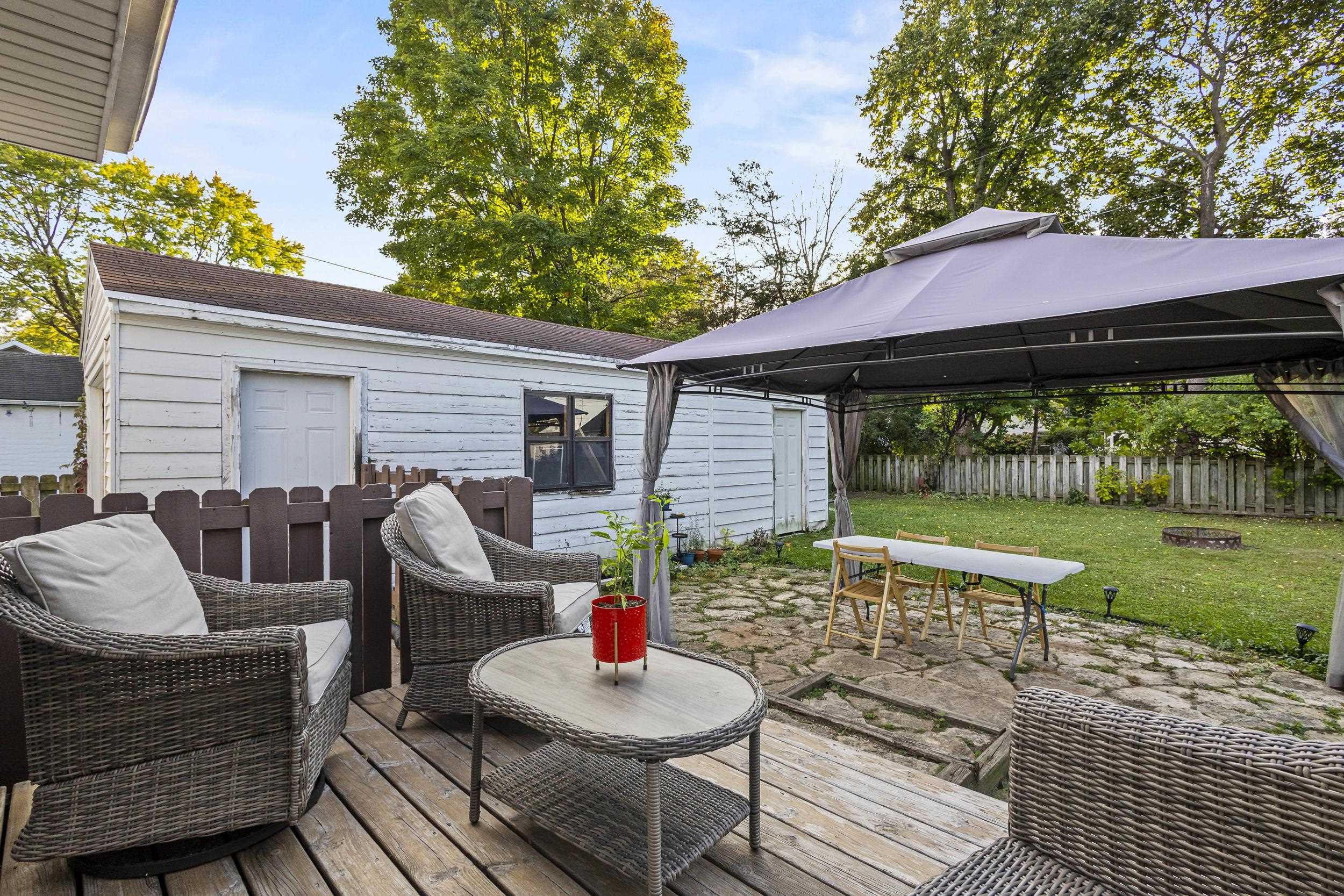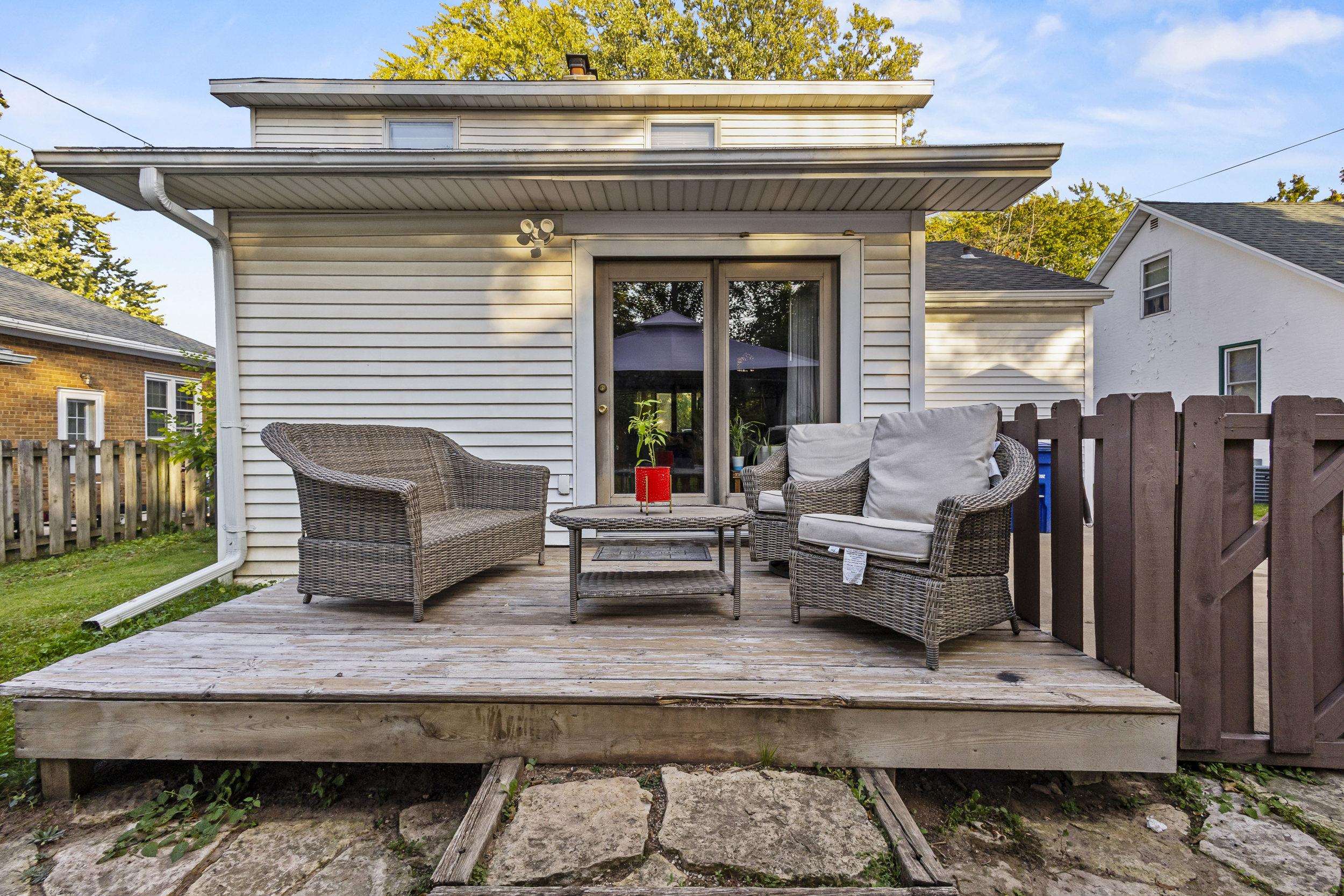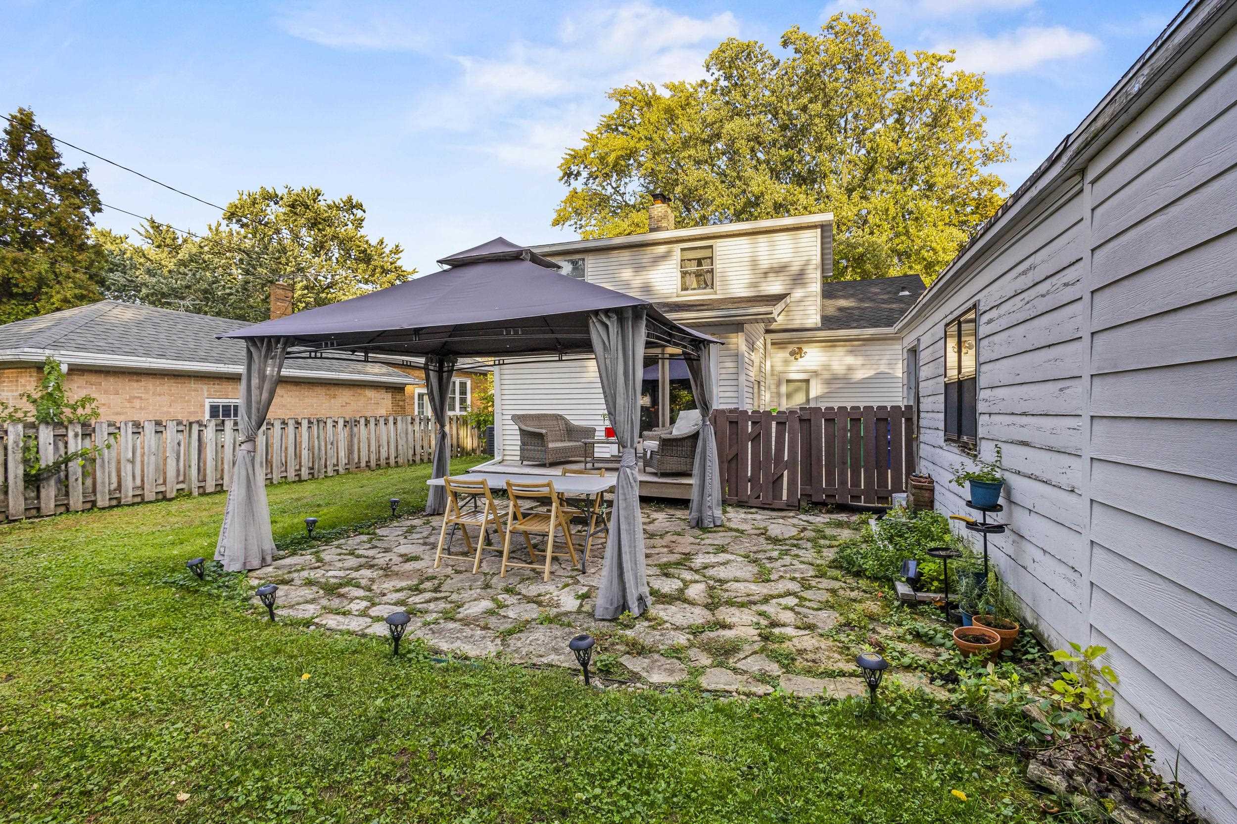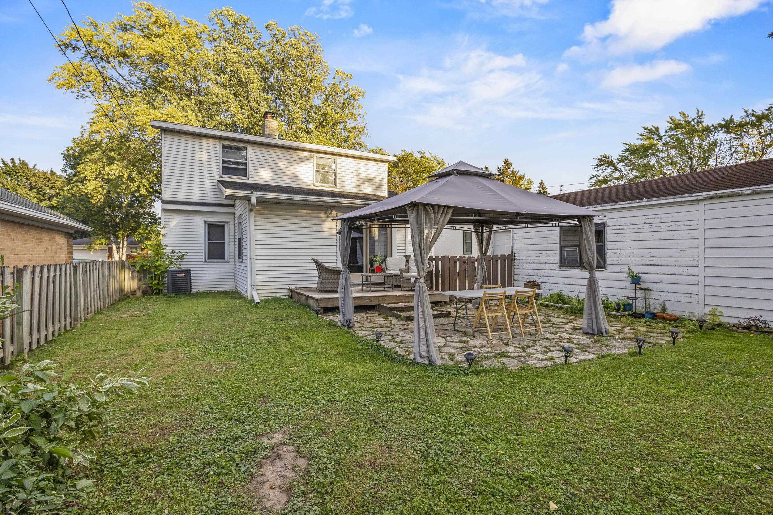 Charming home just steps from parks, schools, and dining. Living room features a bay window and a wood burning fireplace with a handsome stone surround. Kitchen includes appliances, ample cabinetry, and a mosaic tile accent. All three bedrooms are located on the upper level. The main floor offers a flexible office or den accessed through an arched doorway that connects to the updated bathroom with a tiled shower surround. A four season room with plank walls built for a hot tub opens to a deck, flagstone patio, and fenced yard. Extra deep 12 by 30 detached garage provides plenty of storage or workspace. Schedule your showing today in the heart of Green Bay!