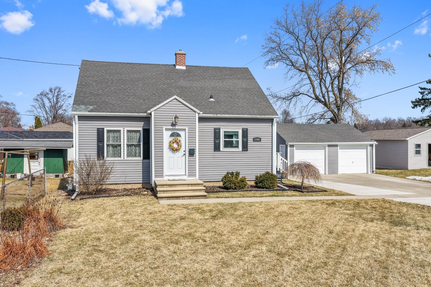 Charming 3BR/1BA Cape Cod features a modern open-concept living space, classic arch doorway, kitchen w/ stainless appliances, floating shelves & cabinet pantry. Nicely updated bathroom w/ tile floor & linen storage. 2 bedrooms complete the main floor. Upper level offers flexible office or lounge space, a large primary bedroom, and cavernous walk-in closet. Lower level w/ included washer+dryer, partially finished rec-room, and clean, dry storage space. Side door exits to deck & adjacent patio. 2-stall detached garage. 2-blocks to Colburn Park & Pool, close to schools. Well-kept home with great curb appeal!