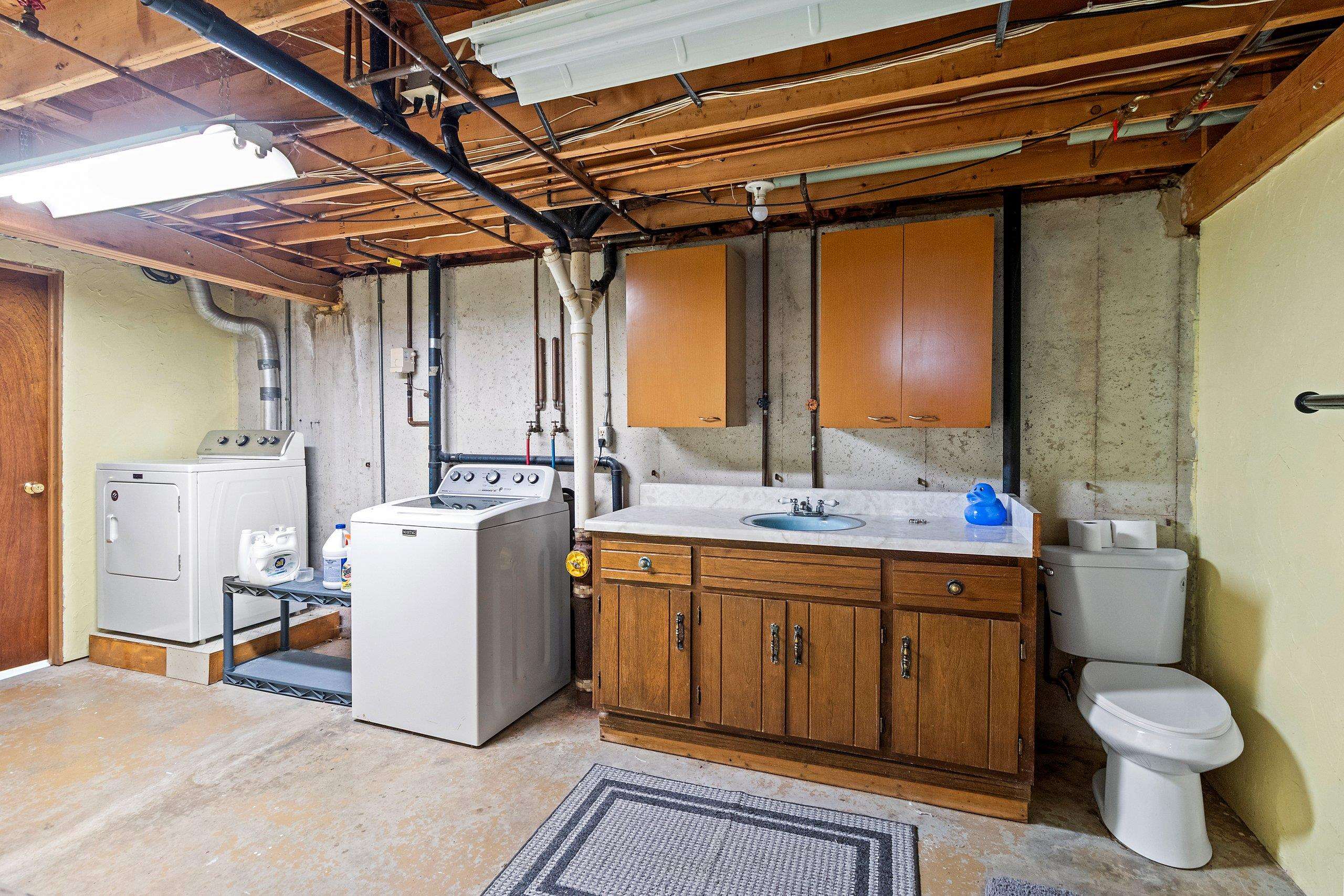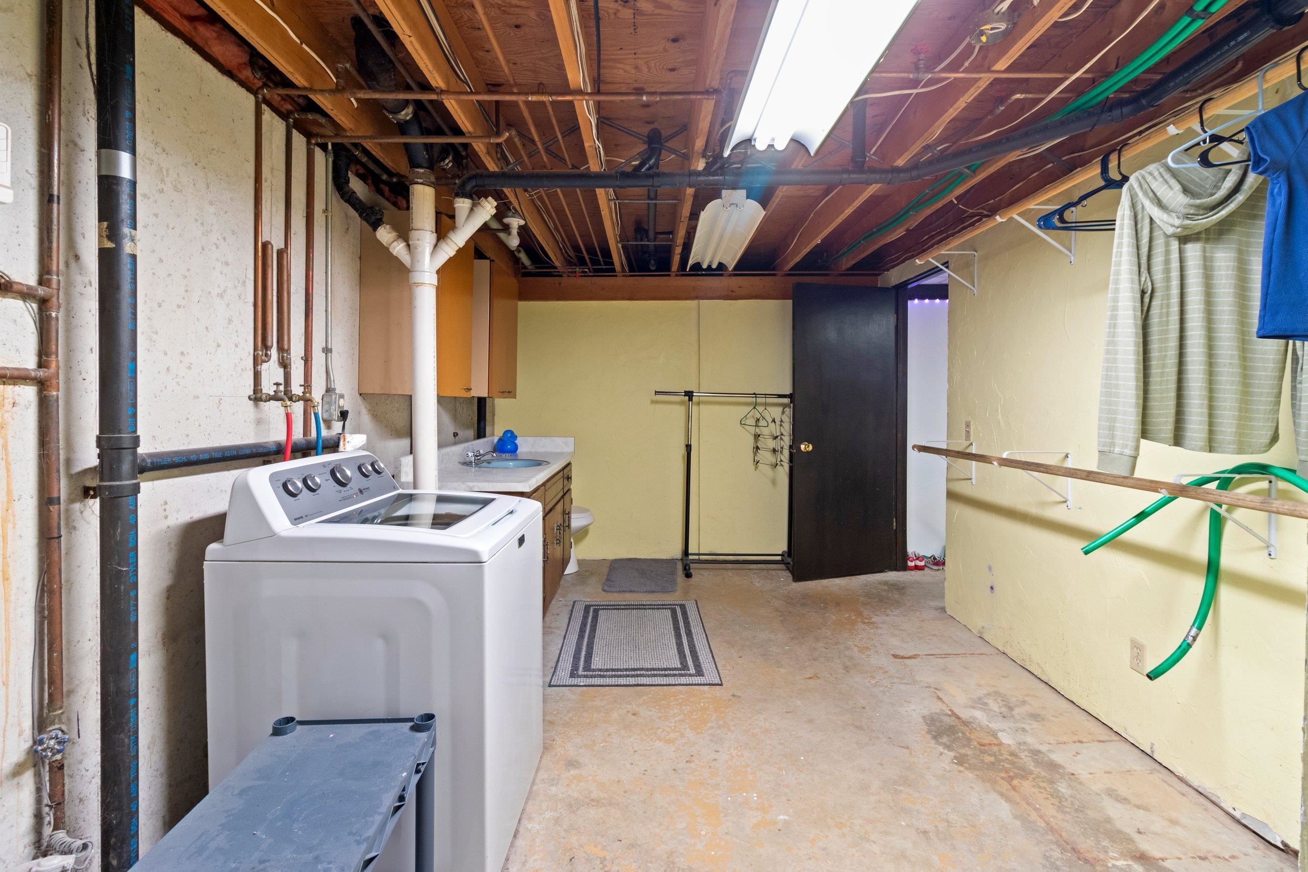 Stove, refrigerator, dishwasher, washer, dryer, microwave, freezer in basement, window treatments