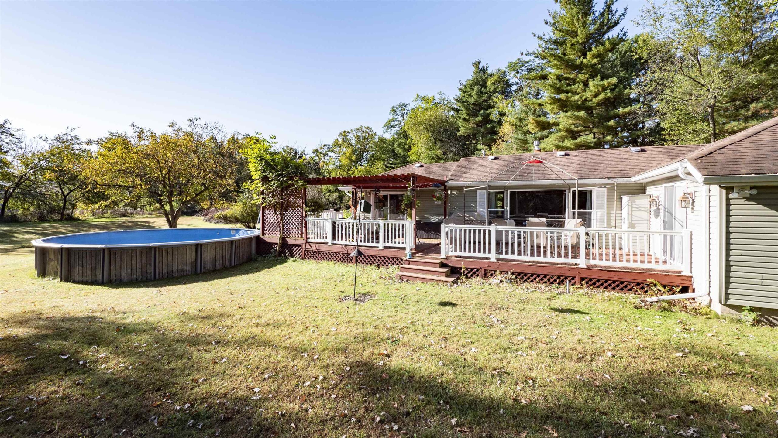 Set back off the road, with the Waupaca River and Waupaca Country Club bordering this nicely landscaped home on 3+ acres, you will fall in love. The open concept, large bedrooms, gas fireplace, loads of natural lighting, and the extending living space out on the huge deck are just some of the key features this home offers. Enjoy the scenic views from the large back deck or take a stroll to nearby parks, shopping and dining. Convenient location to schools, hospital and highway access.