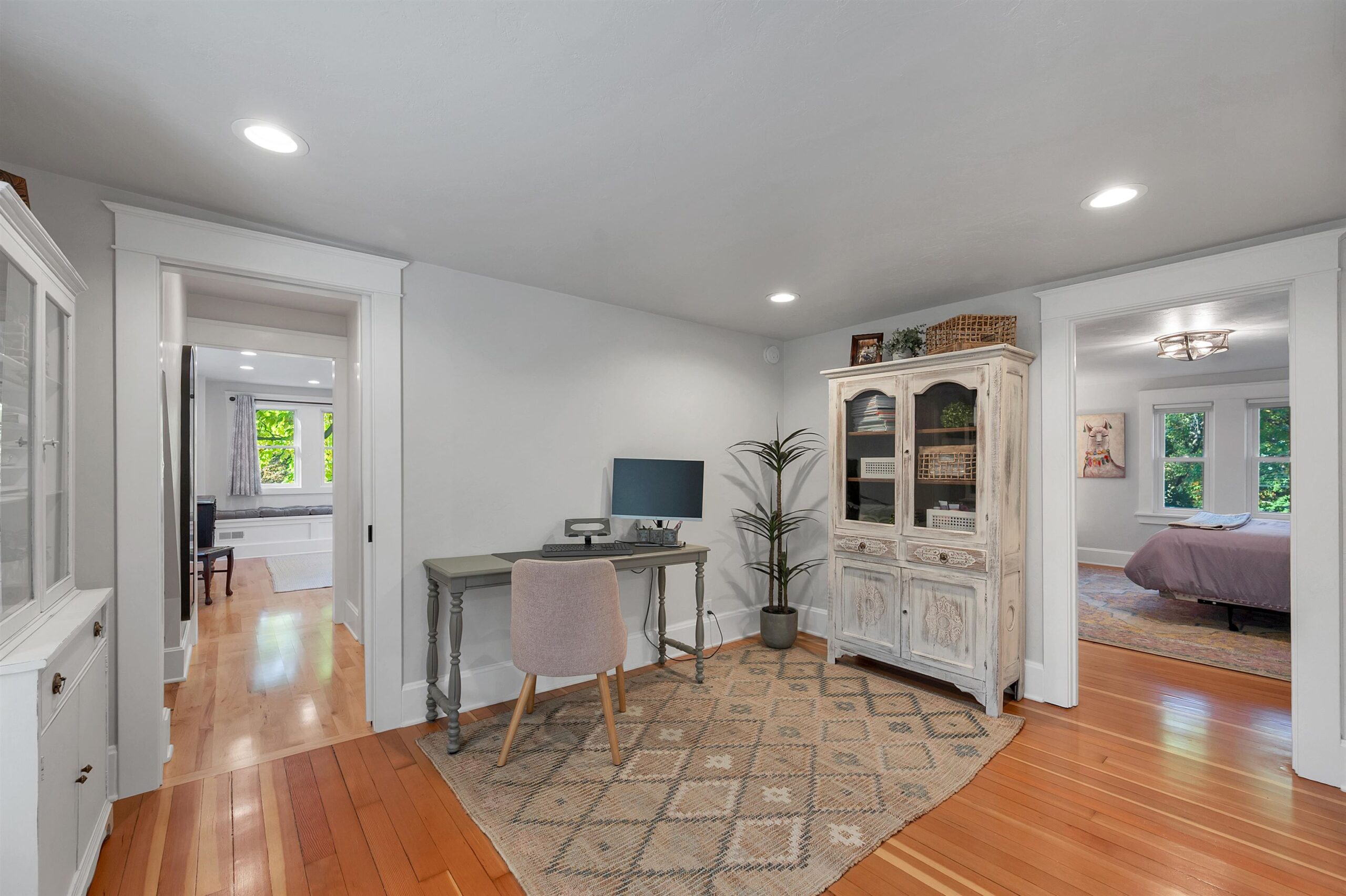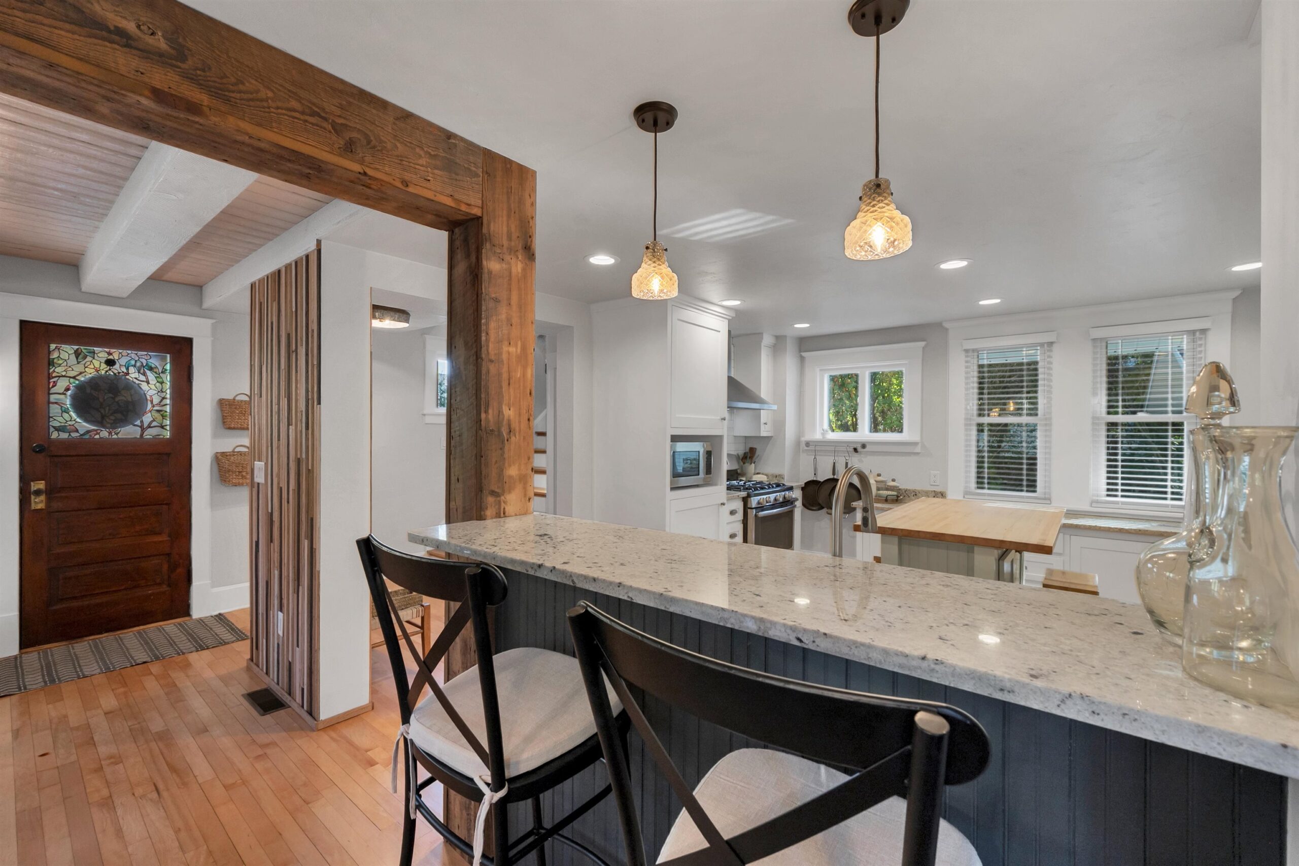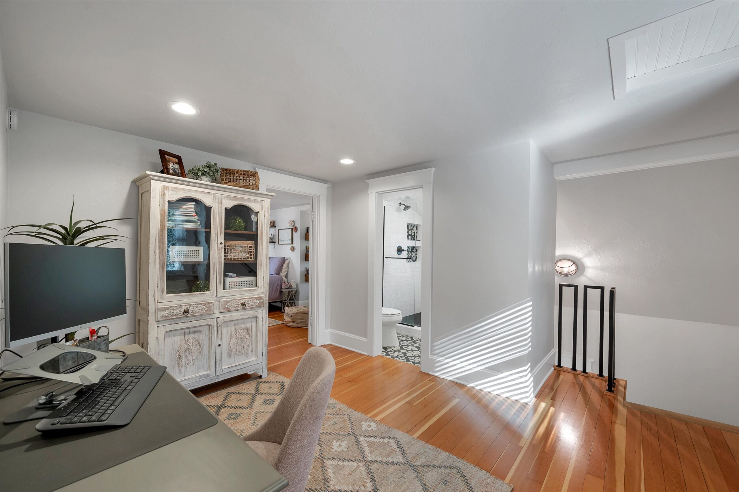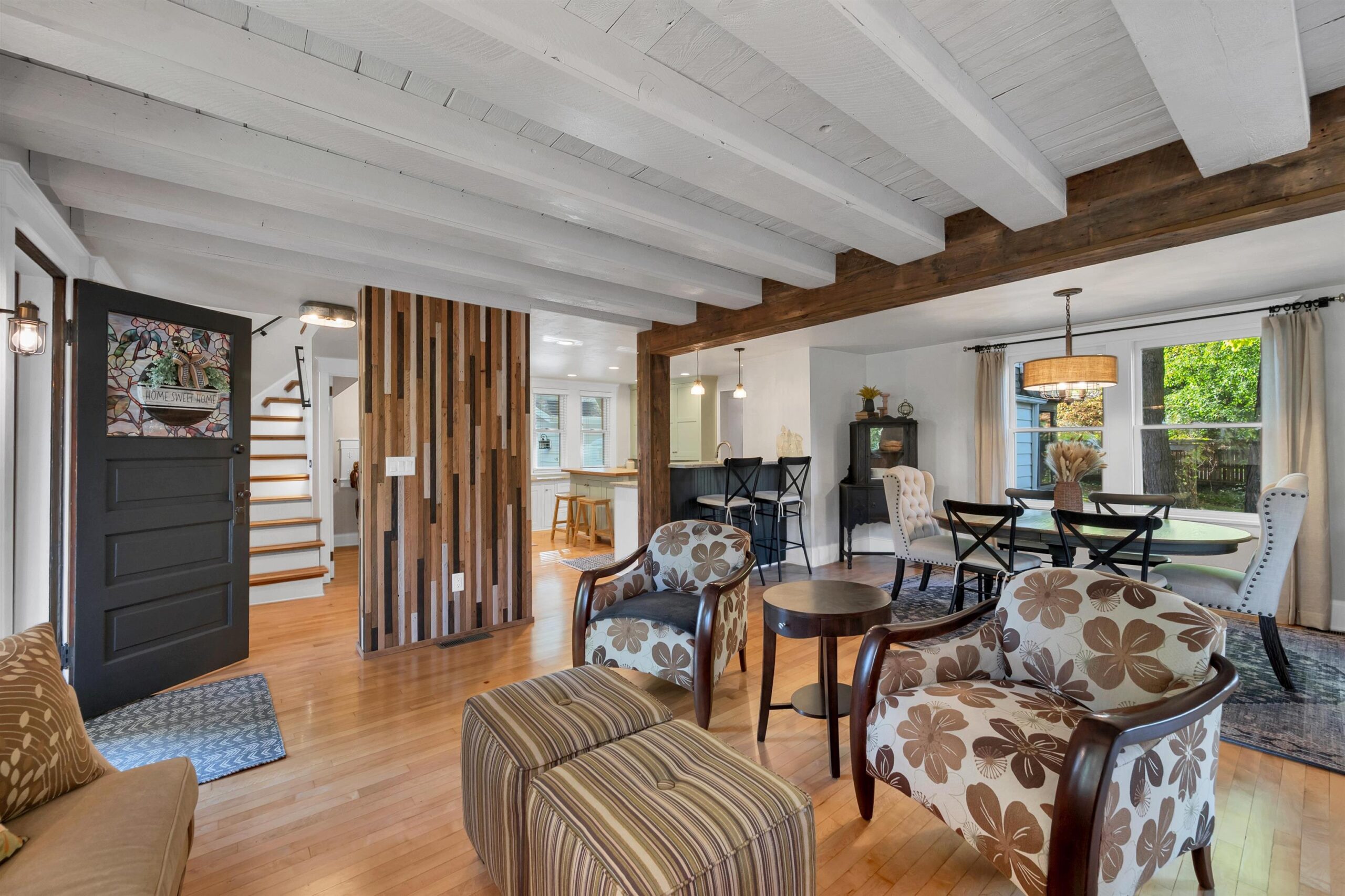 Charming two-story home in the sought-after Old Allouez neighborhood. The kitchen offers ample counter space, a deep sink, an island, and new cabinets installed in 2018. Hardwood floors were added to both the main and upper levels in 2019. Upstairs, the spacious primary bedroom features a walk-in closet. The full bathroom was renovated in 2019 and includes a large walk-in shower. The cozy living room features a wood-burning fireplace. A bright four-season room off the dining area adds extra living space. The screened-in porch overlooks a large backyard oasis that has lots of foliage. Lighting fixtures were updated throughout the home in 2019. The laundry area includes a utility sink, shelving, and a dividing wall. A new furnace and water heater were installed in 2021.