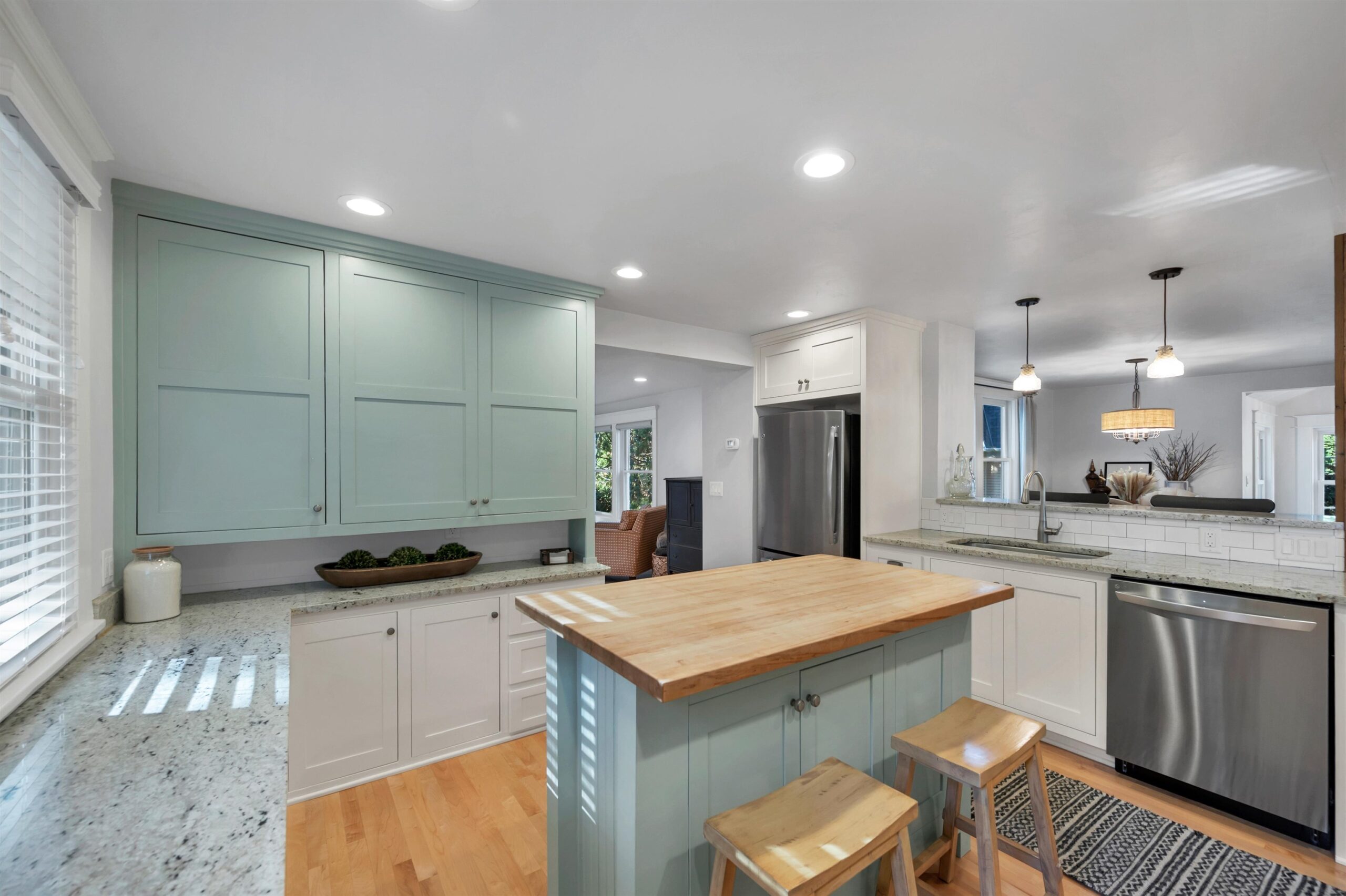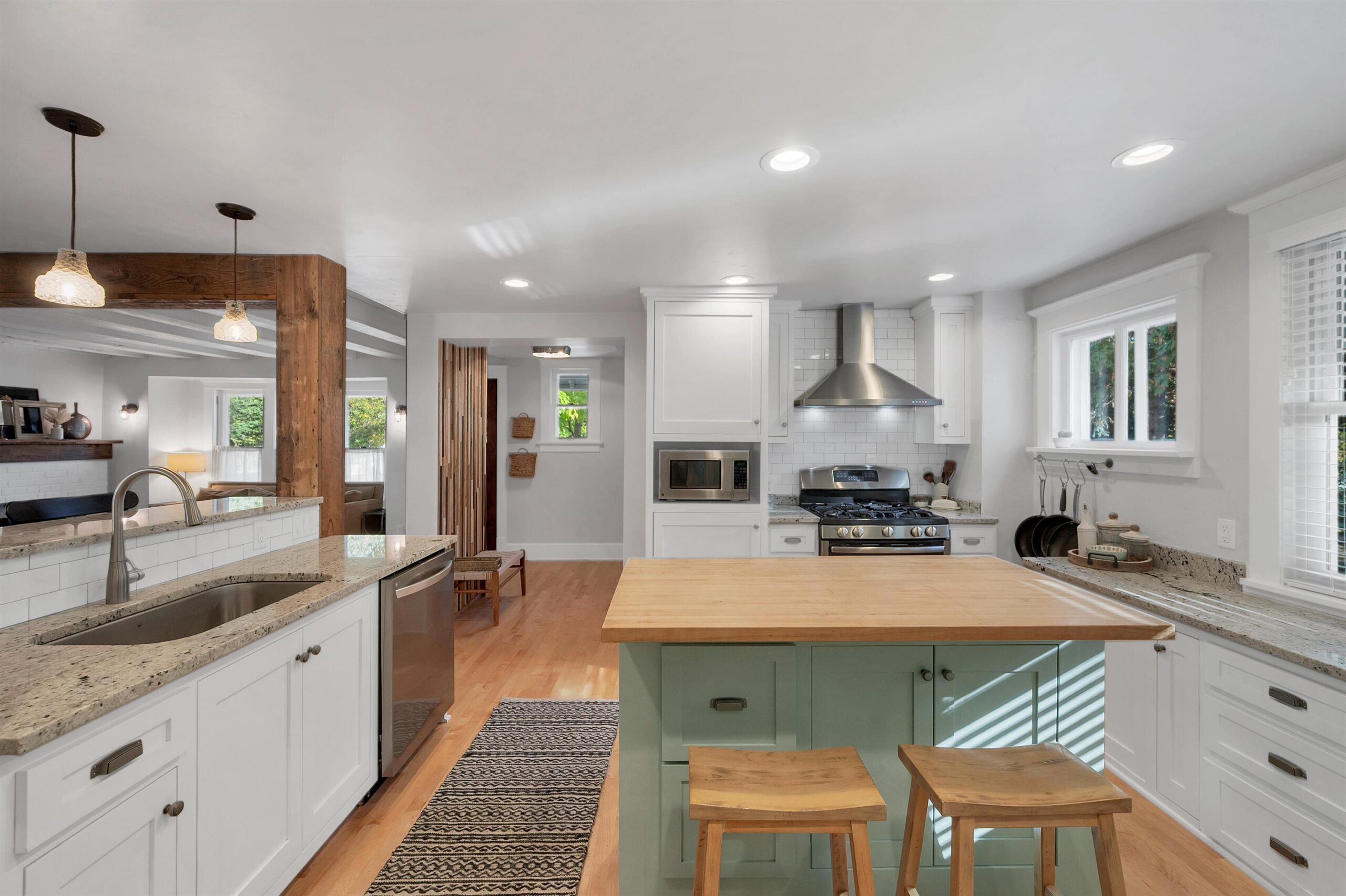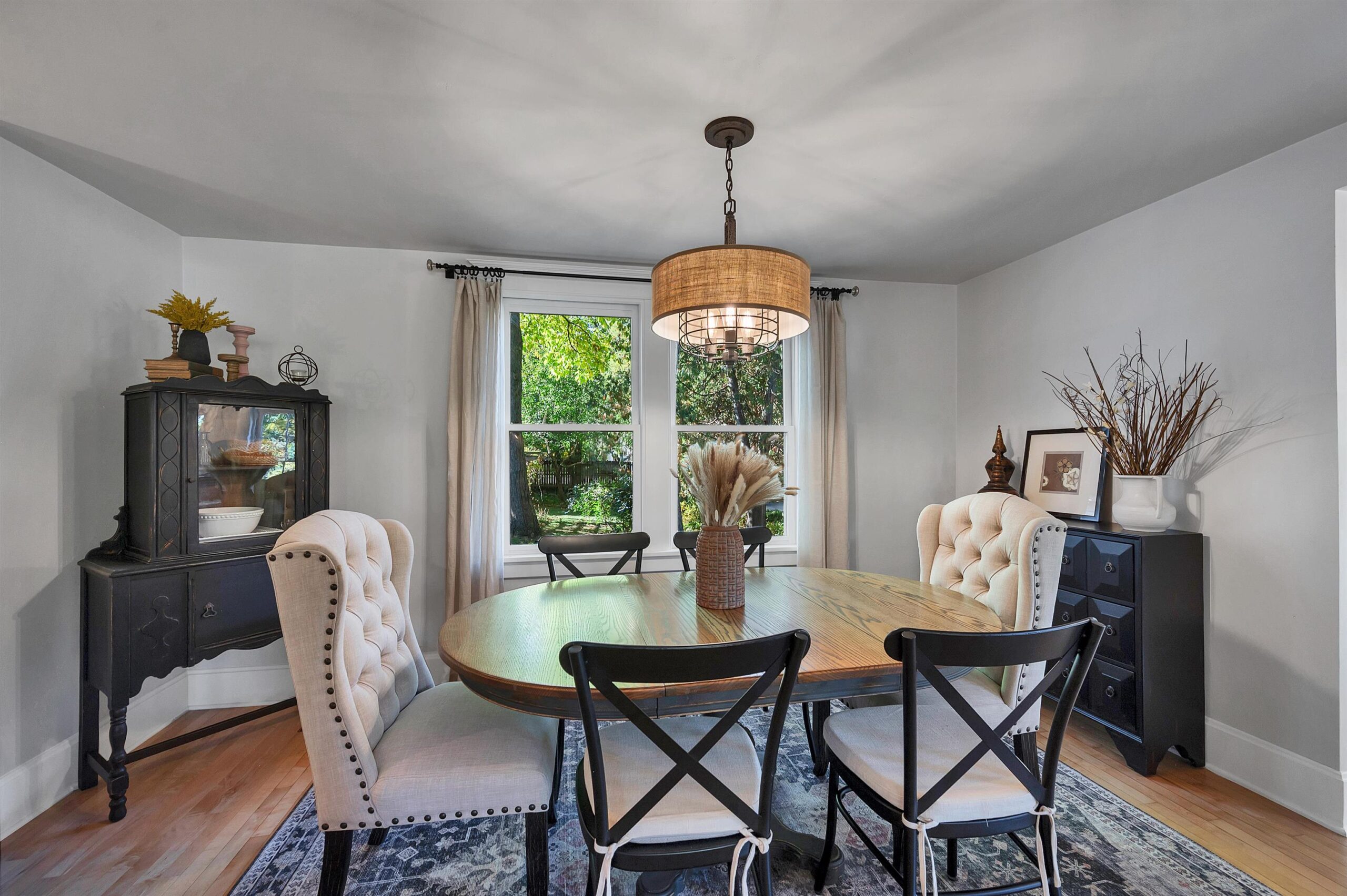 Refrigerator, oven/range, dishwasher, microwave, washer, dryer, window treatments.