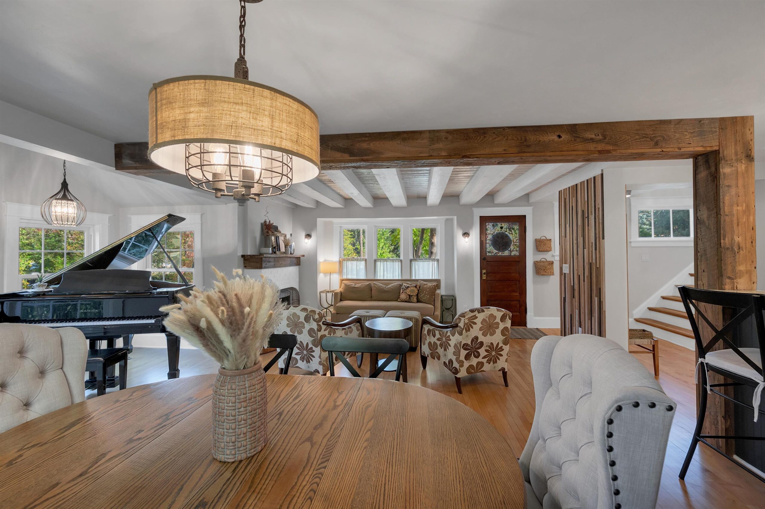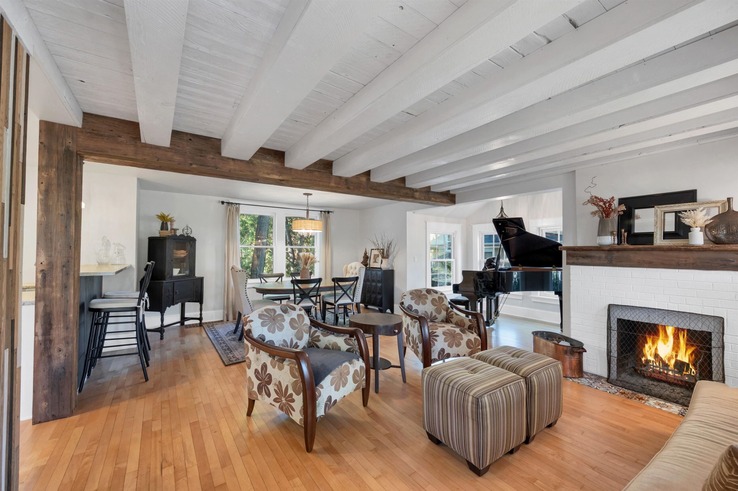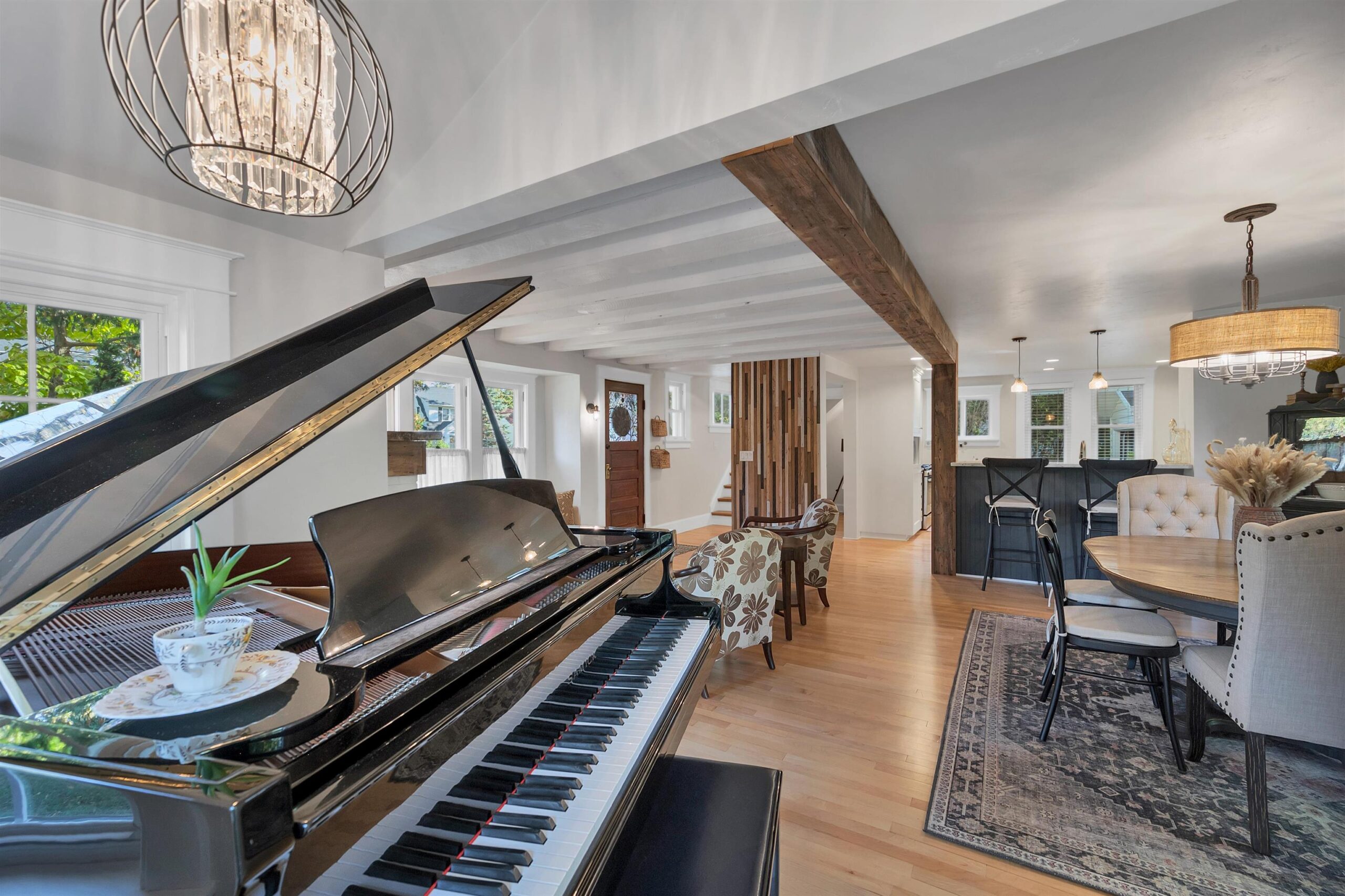 Refrigerator, oven/range, dishwasher, microwave, washer, dryer, window treatments.