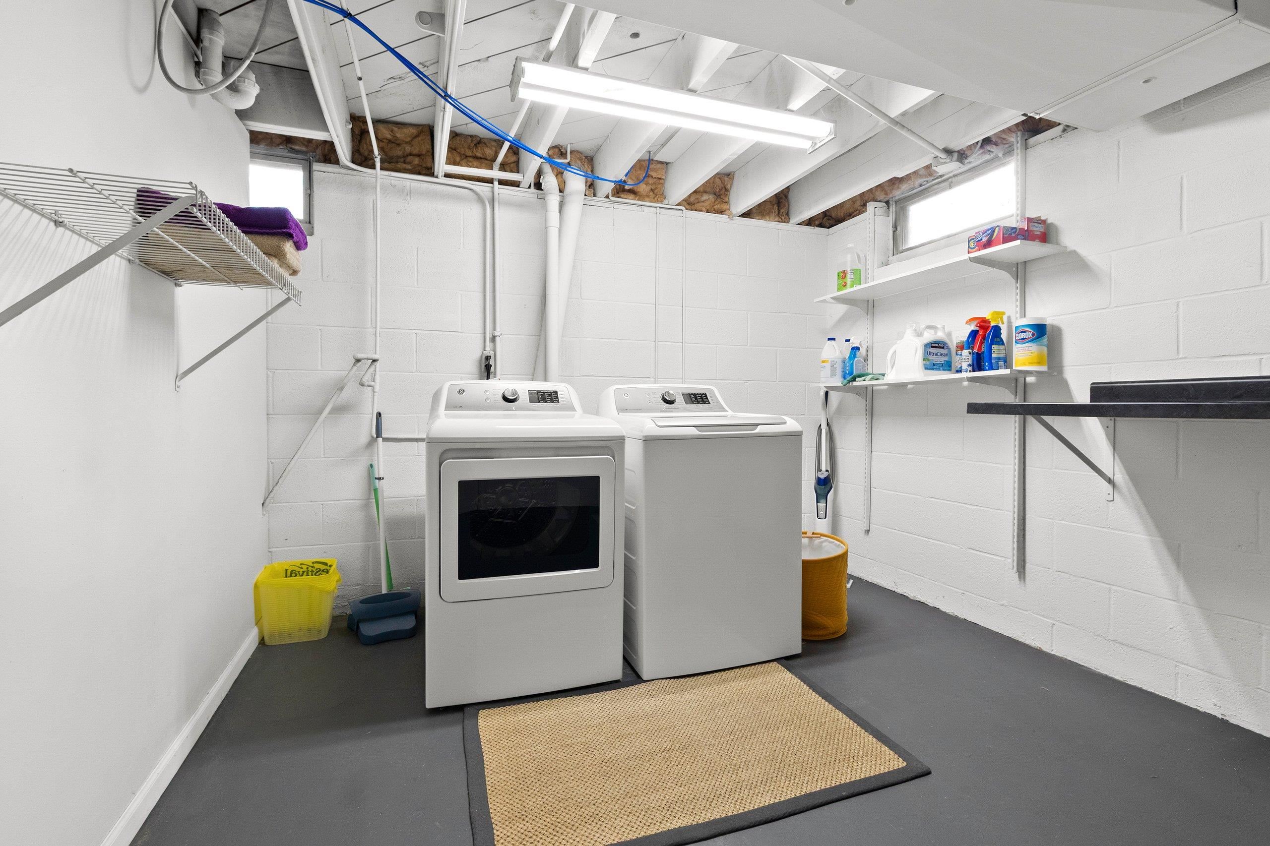 Refrigerator, Dishwasher, Stove/Oven, Washer & Dryer, Chest Freezer in Basement, Patio Furniture, Curtain Rods