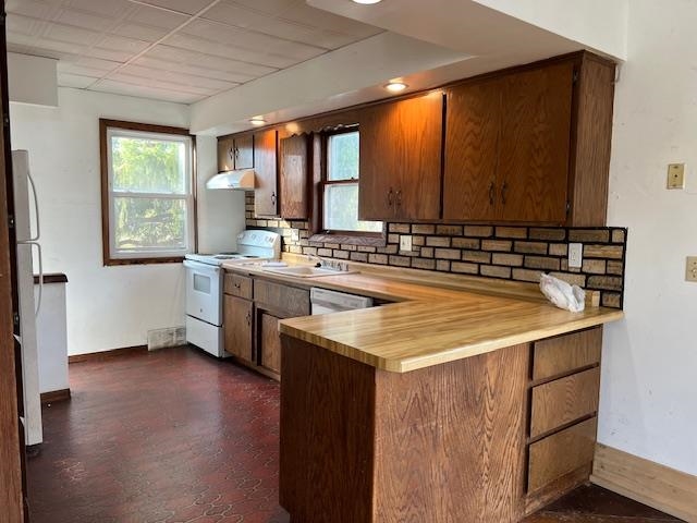 Washer, range, refrigerator, water softener, snowblower.