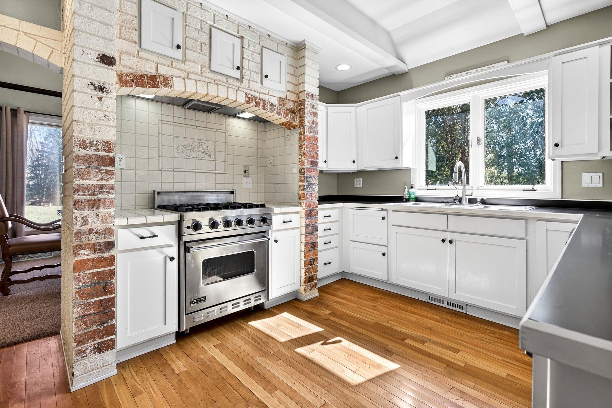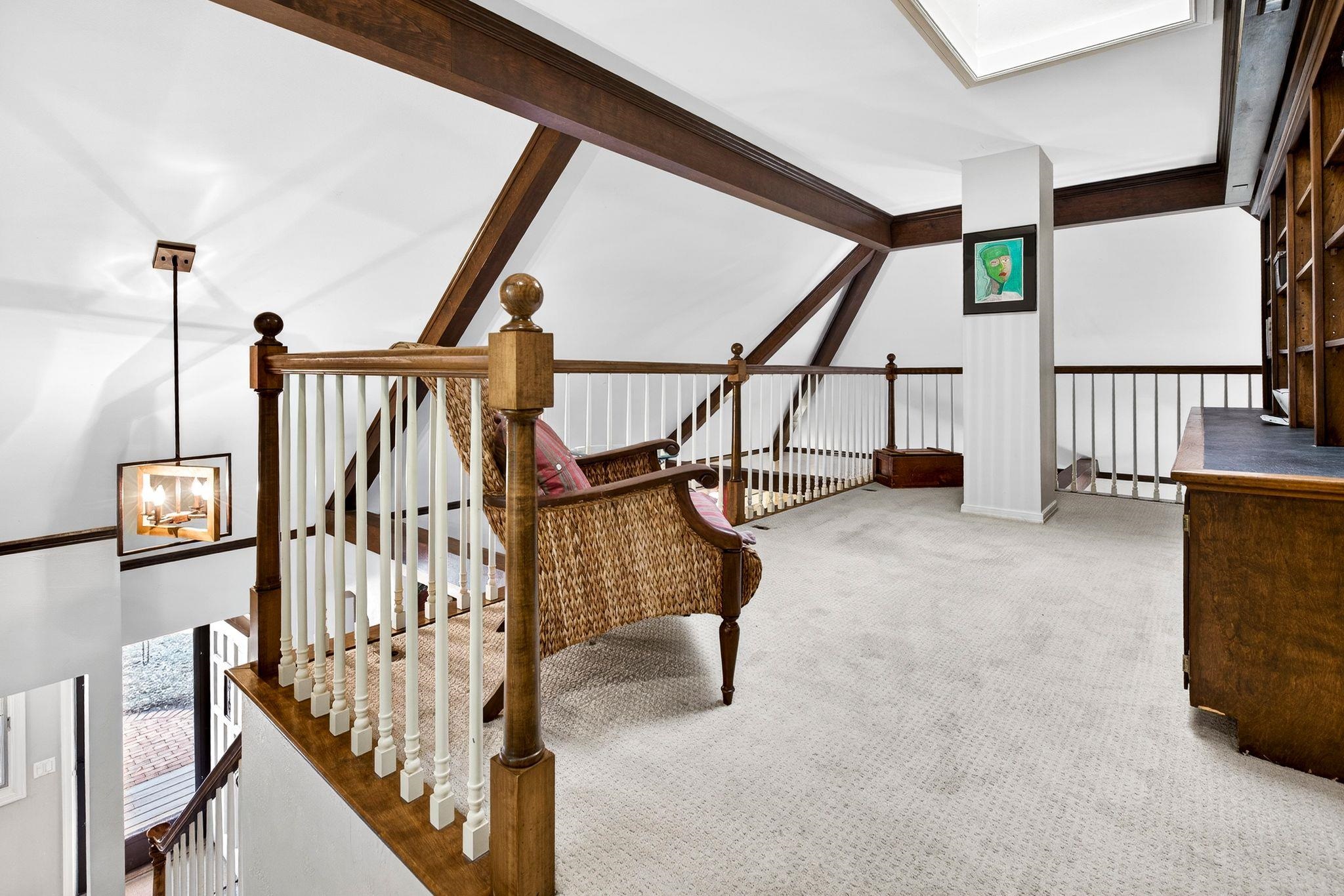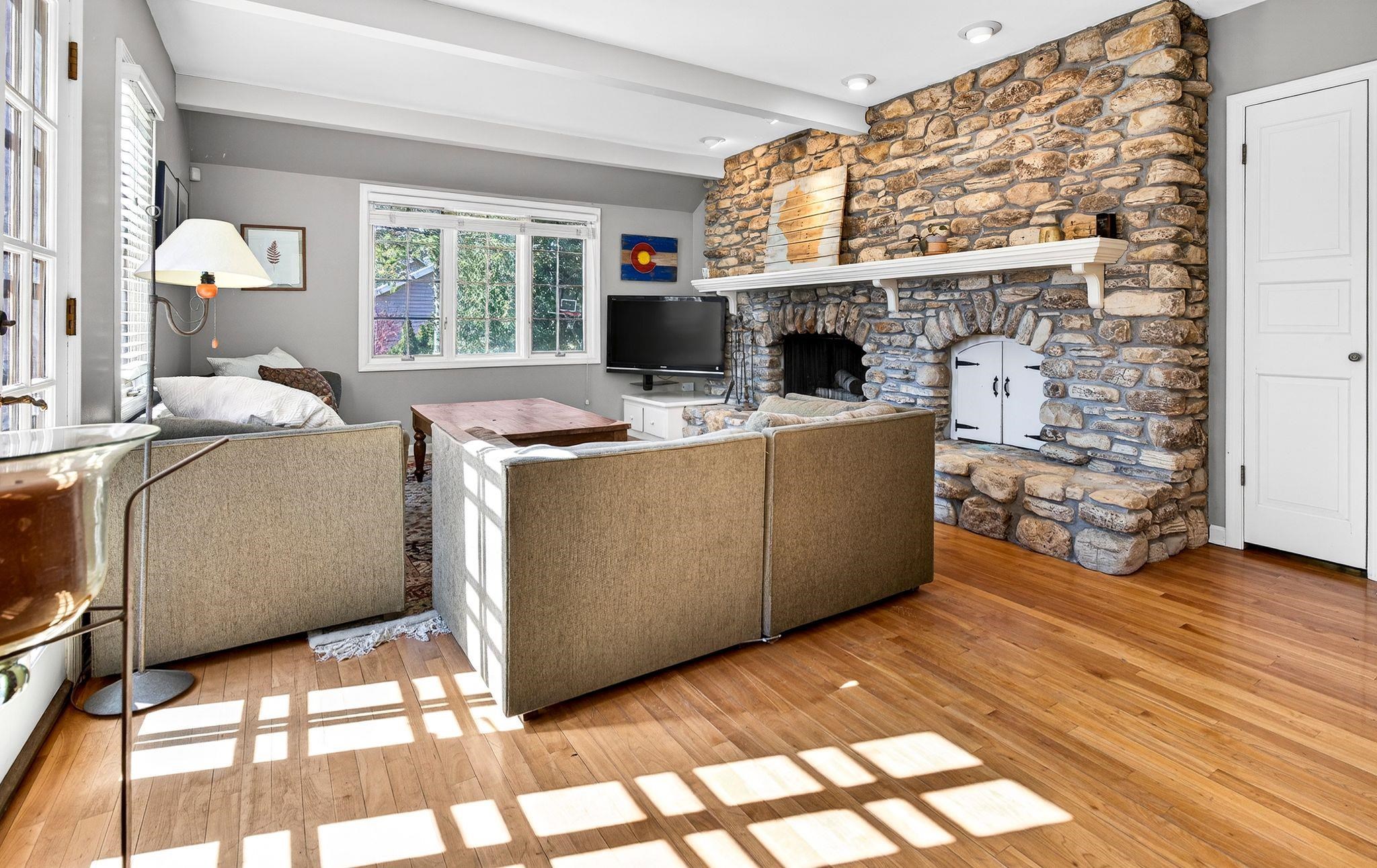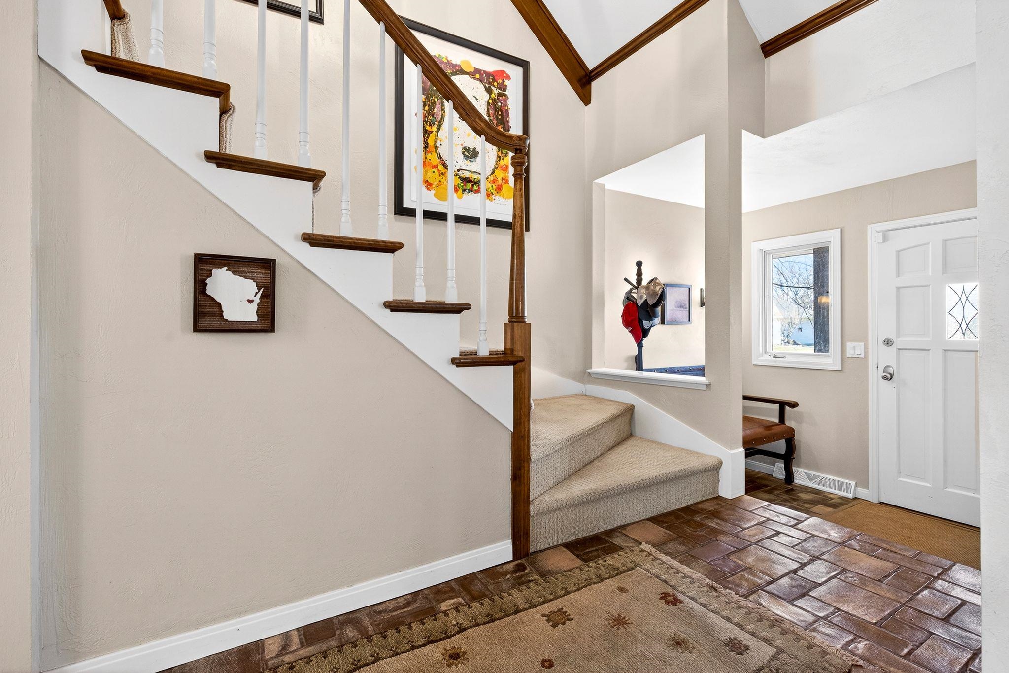 Charming English Tudor on .5 acre in town of Neenah....just outside city limits. Close to Lake Winnebago, shopping and highway, this location is divine with mature trees, large lot and character galore. Custom designed home with a striking interior. Tiled entrance opens to a vaulted living room ceiling of 26ft with wood beams highlighting its soaring ceiling and gas fireplace. Sunken family room with fieldstone wood fireplace. French doors to sunroom (not included in square footage). Brick enclosed stove gives old world details while layout open to family room gives modern flair. Upper library balcony adds extra cozy area for reading/homework. So many unique features in this home. Lower level with access to outside and plenty of room to increase square footage. Come enjoy this treasure!