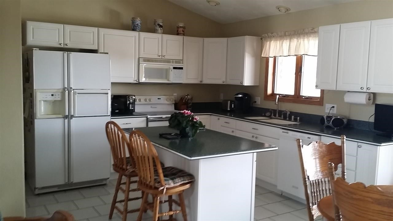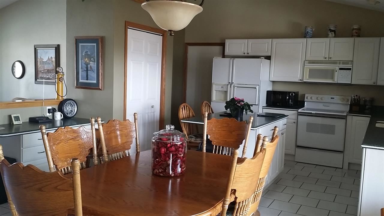Lovely ranch home on nearly an acre outside of town. Kitchen w/full appliance package, pantry, island, solid surface counters w/cathedral ceilings open to dinette area. Living room also has cathedral ceilings & french doors leading to deck that overlooks deep backyard. Bright master bedroom suite also has doors leading out to another deck that allows backyard views. Thin coat plaster walls, whole house fan, water filtration system. 28x36 garage w/office area that compliments house's exterior.