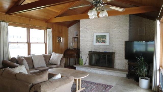 A Rare find at this price! TWO 2 car garages come with this 3 bedroom ranch on a double lot. First floor family room addition with vaulted ceilings and one of the 3 fireplaces in this home. 3 Season Porch or HUGE patio to relax on. Nicely maintained yard. 3rd bedroom is being used as a sitting room now and has passageway to garage. Lower level Rec Room and office too.1 year Home Warranty is included.