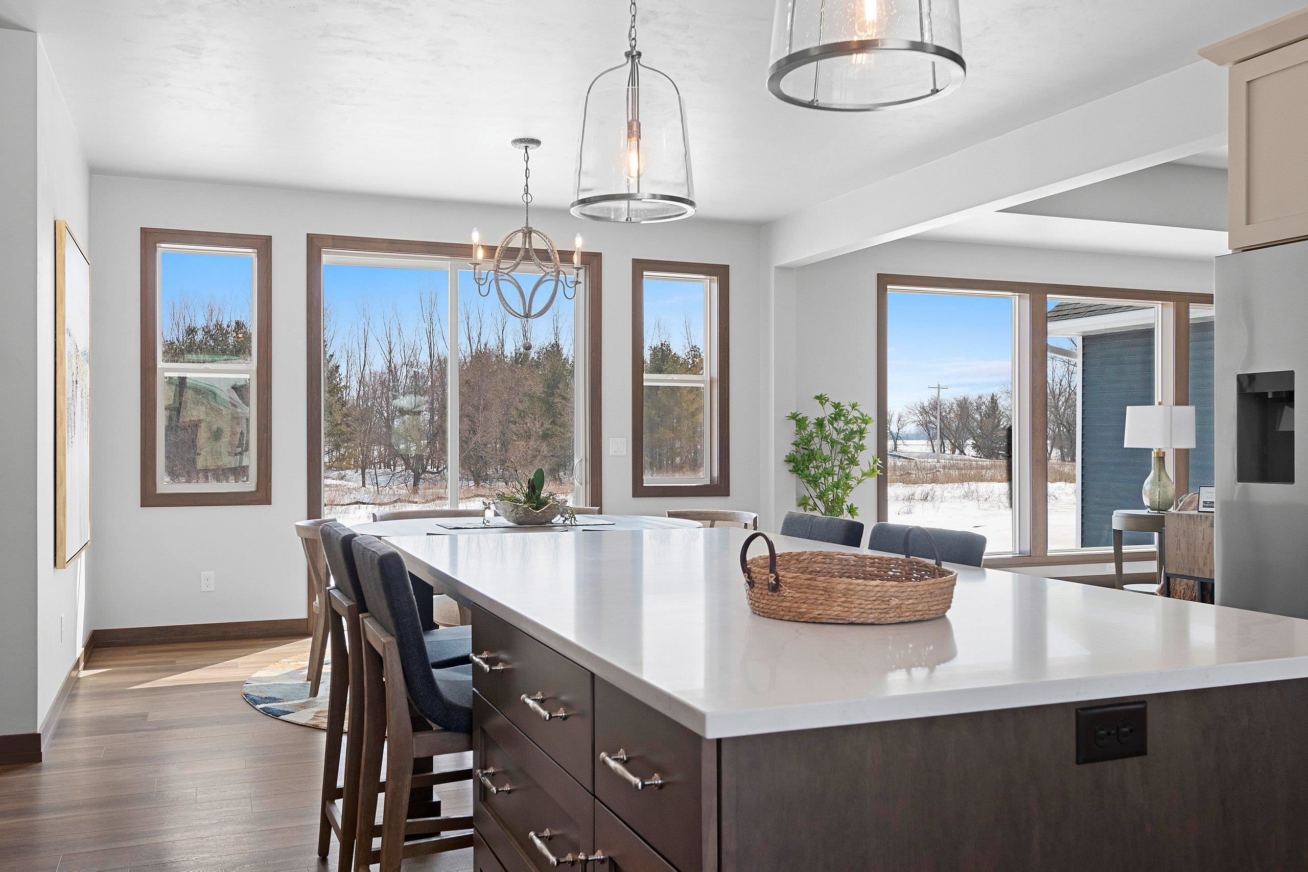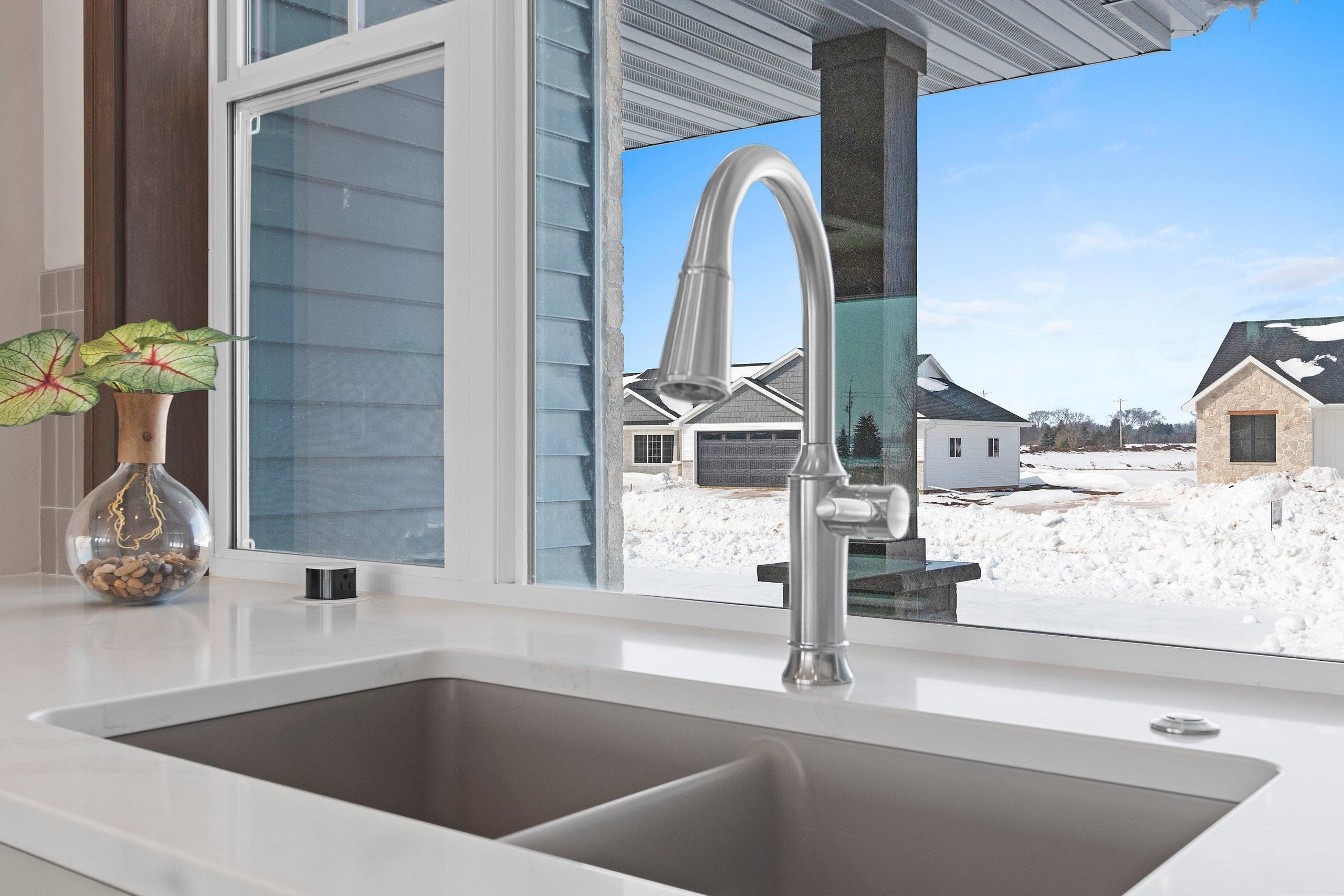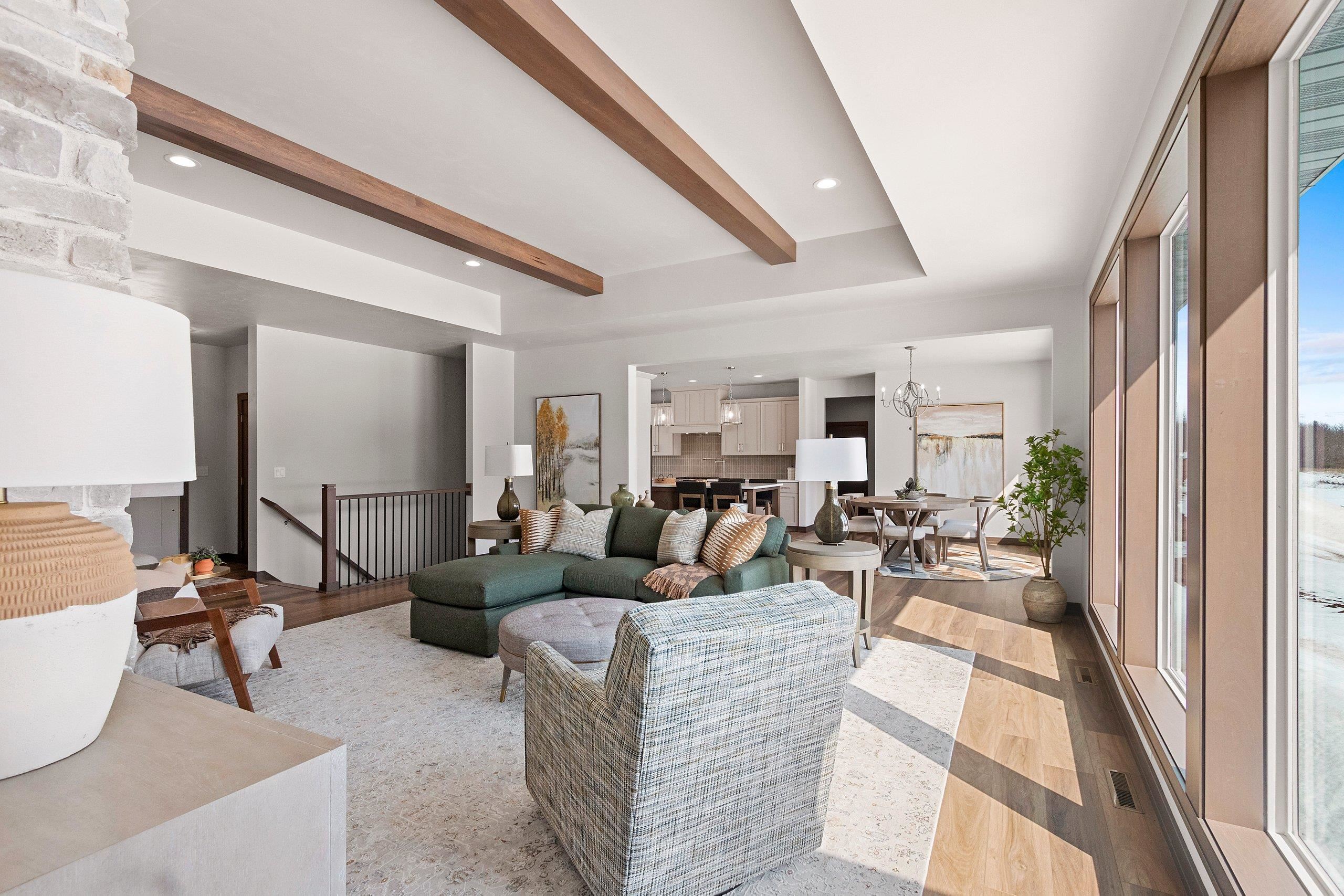 West De Pere living with room to spread out, this 2026 Spring Showcase sits on 1.5 acres and offers a thoughtfully designed space. A covered porch opens to a bright foyer and spacious living room anchored by a gas stone fireplace and tray ceiling. The kitchen delivers both style and function with high-end appliances, abundant cabinetry, an 8' island, and a 10x5 walk-in pantry, flowing easily to the dinette. The primary suite features a tray ceiling, double vanity, zero-entry tiled shower, and a 15x6 walk-in closet. Mudroom, laundry, and half bath add convenience. Heated 3.5-stall garage with extra depth, basement access, and rear door. The backyard opens wide with a 16x12 patio and plenty of space to relax, gather, or play. Lower level offers egress and room to grow.